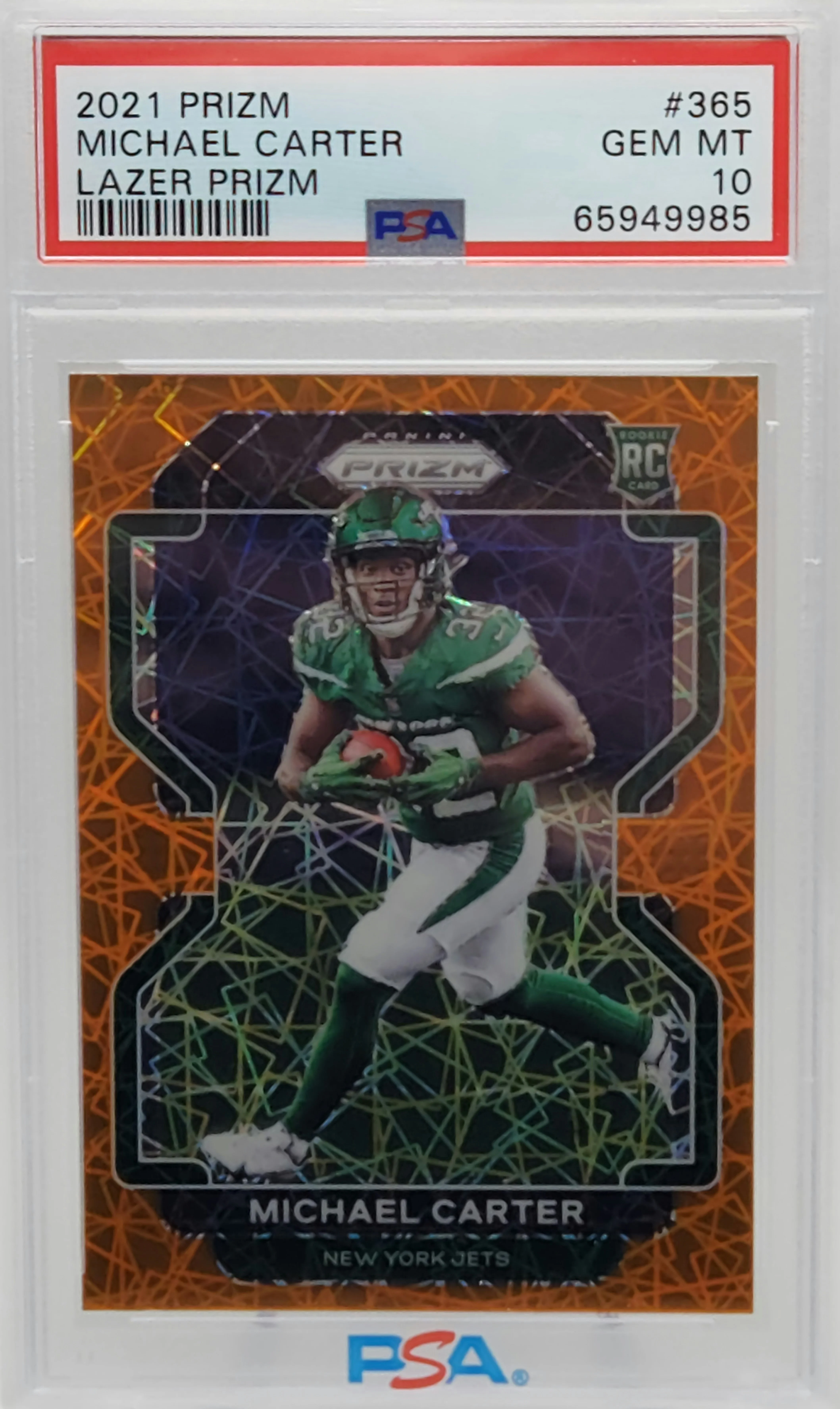 Michael Carter New York Jets 2021 Panini Prizm Lazer Rookie Card #365 PSA 10