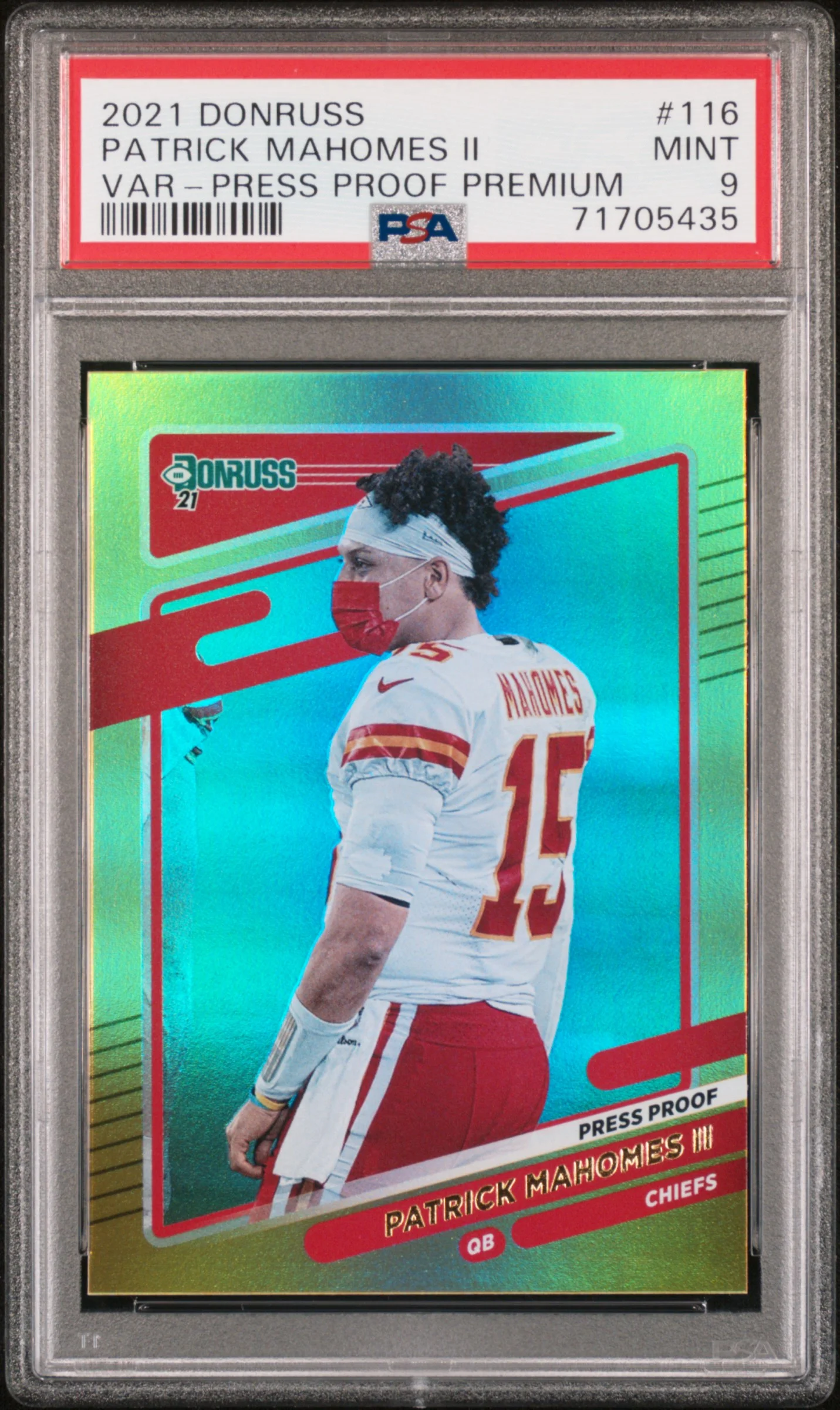 Patrick Mahomes 2021 Donruss Variation Press Proof Premium Card #116 PSA 9 Mint