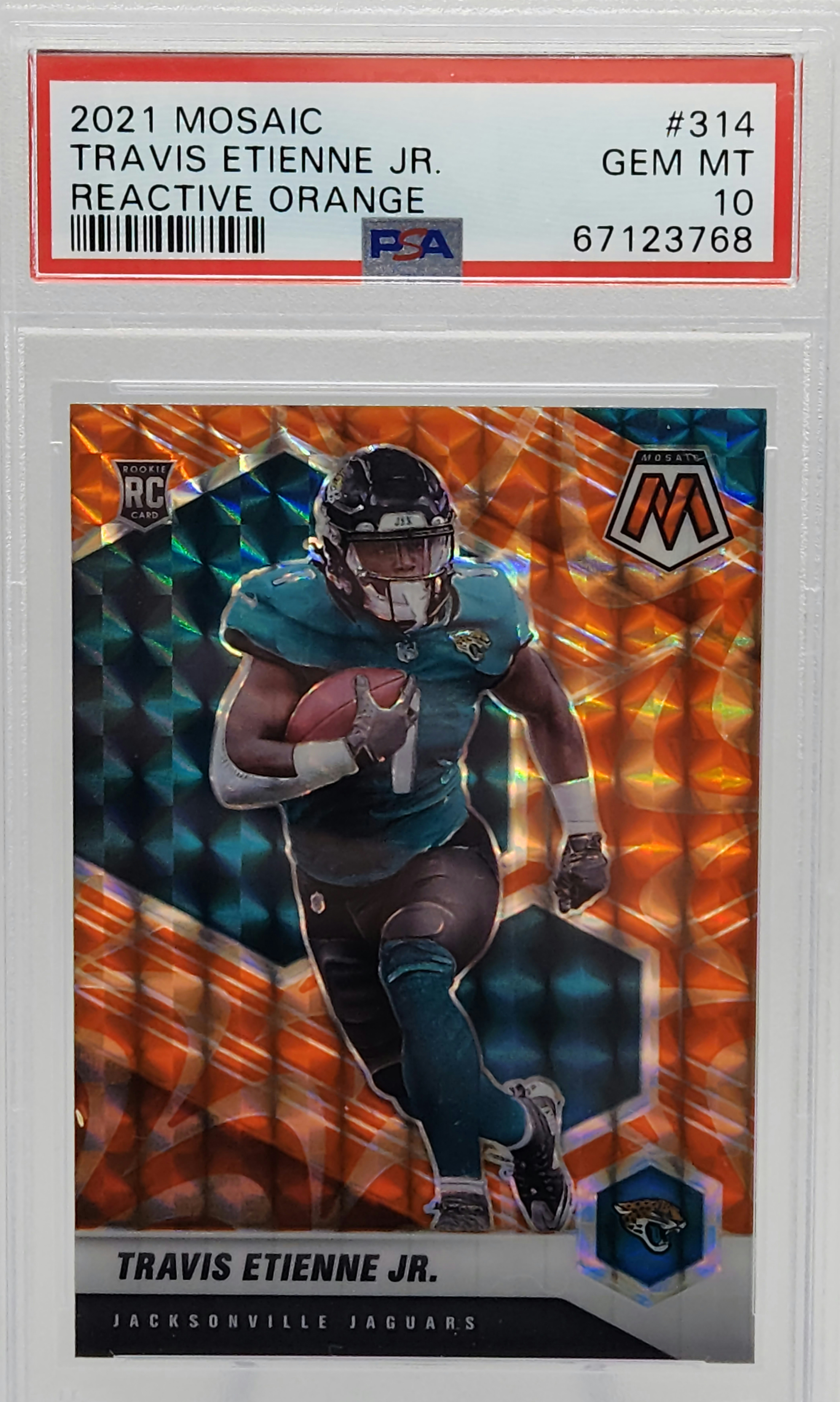 Travis Etienne Jaguars 2021 Mosaic Reactive Orange Prizm Rookie Card #314 PSA 10