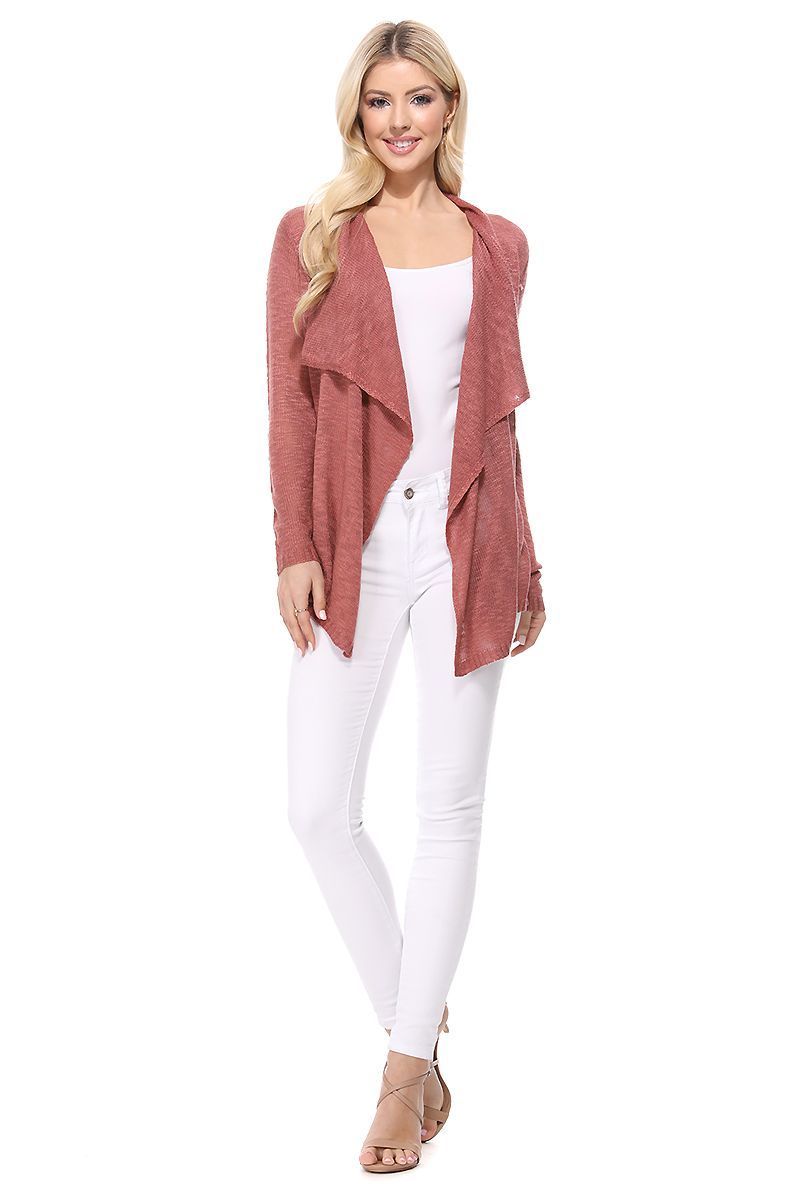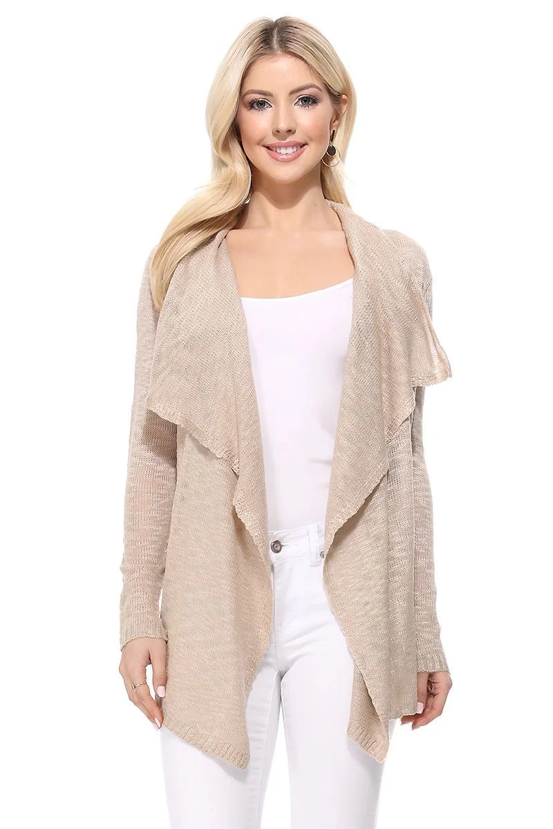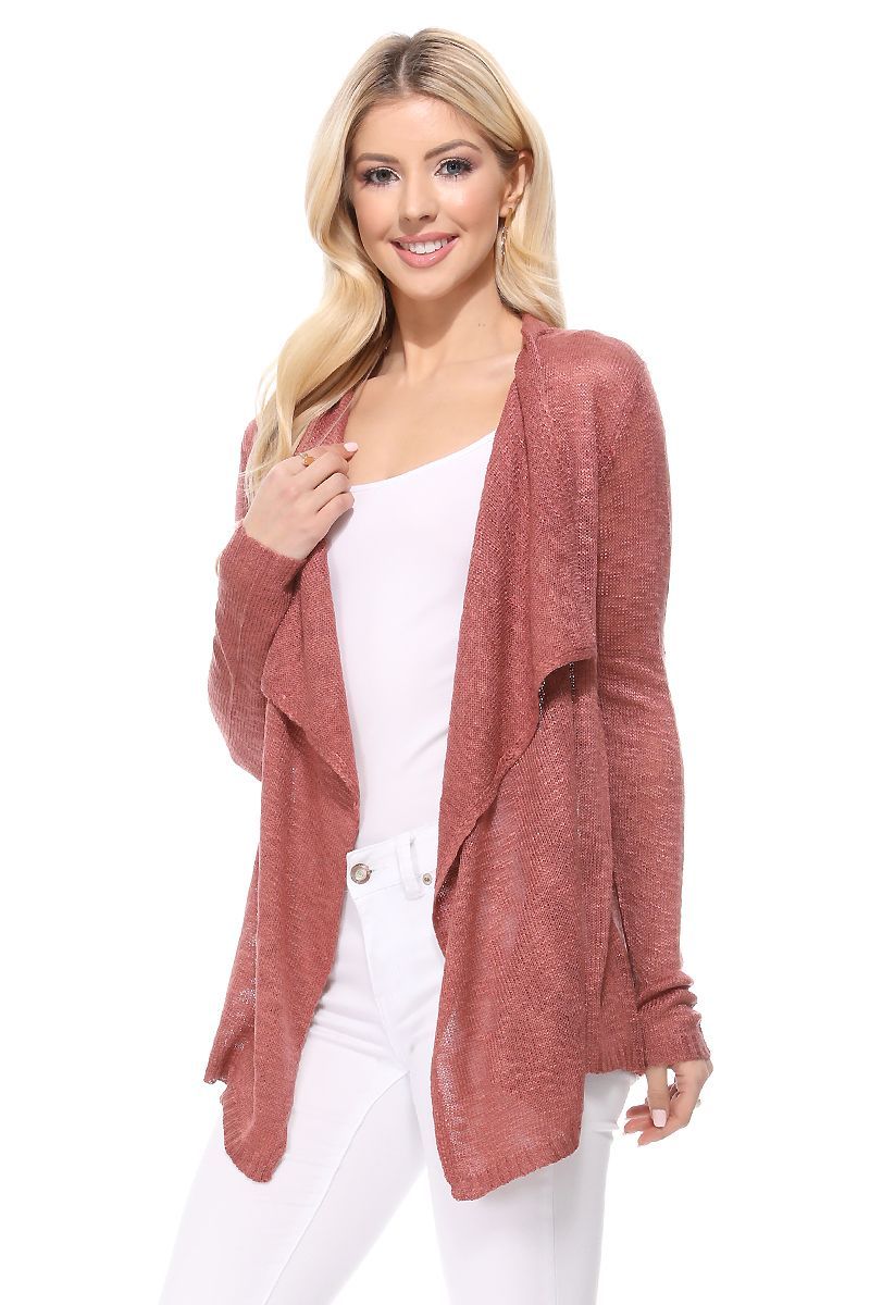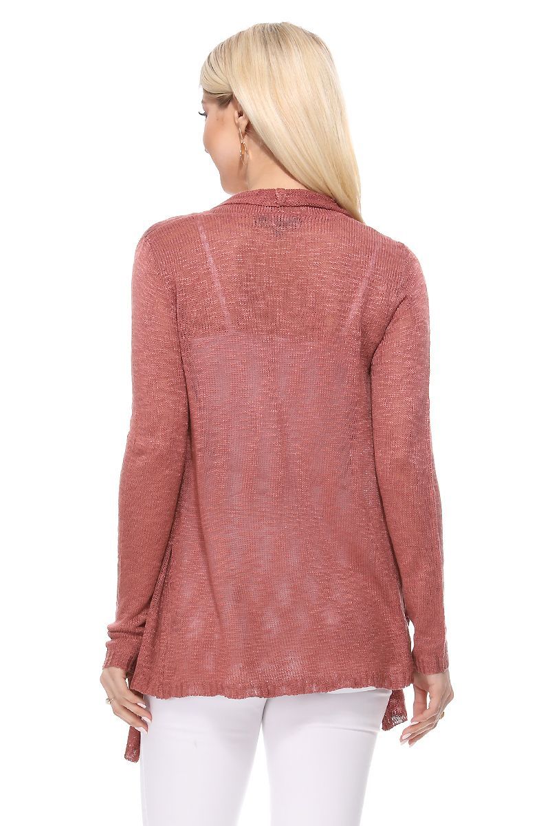 YEMAK Women's Long Sleeve Soft Sheer Slub Open Front Casual Cardigan Sweater MK8080-MSR-S