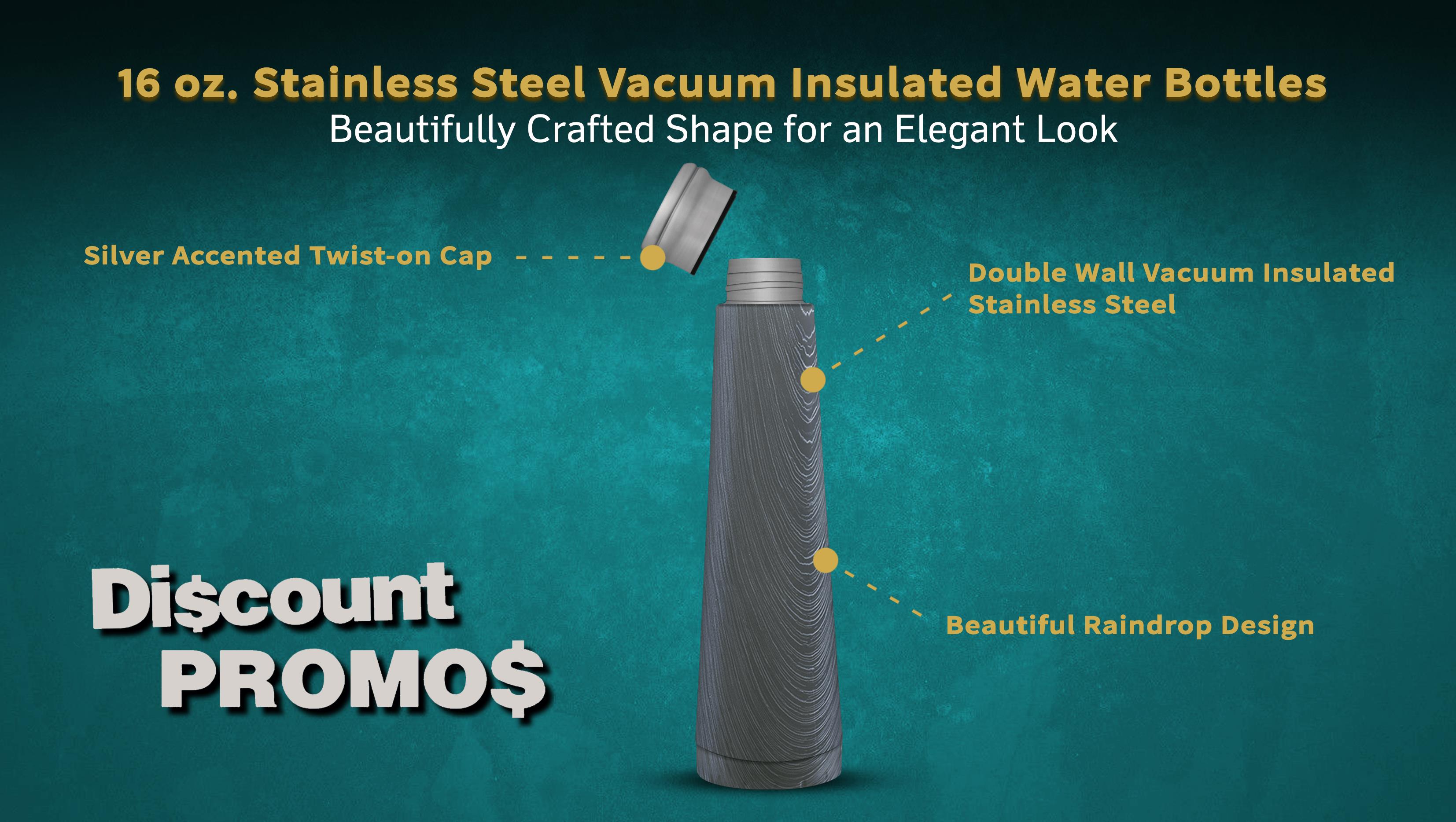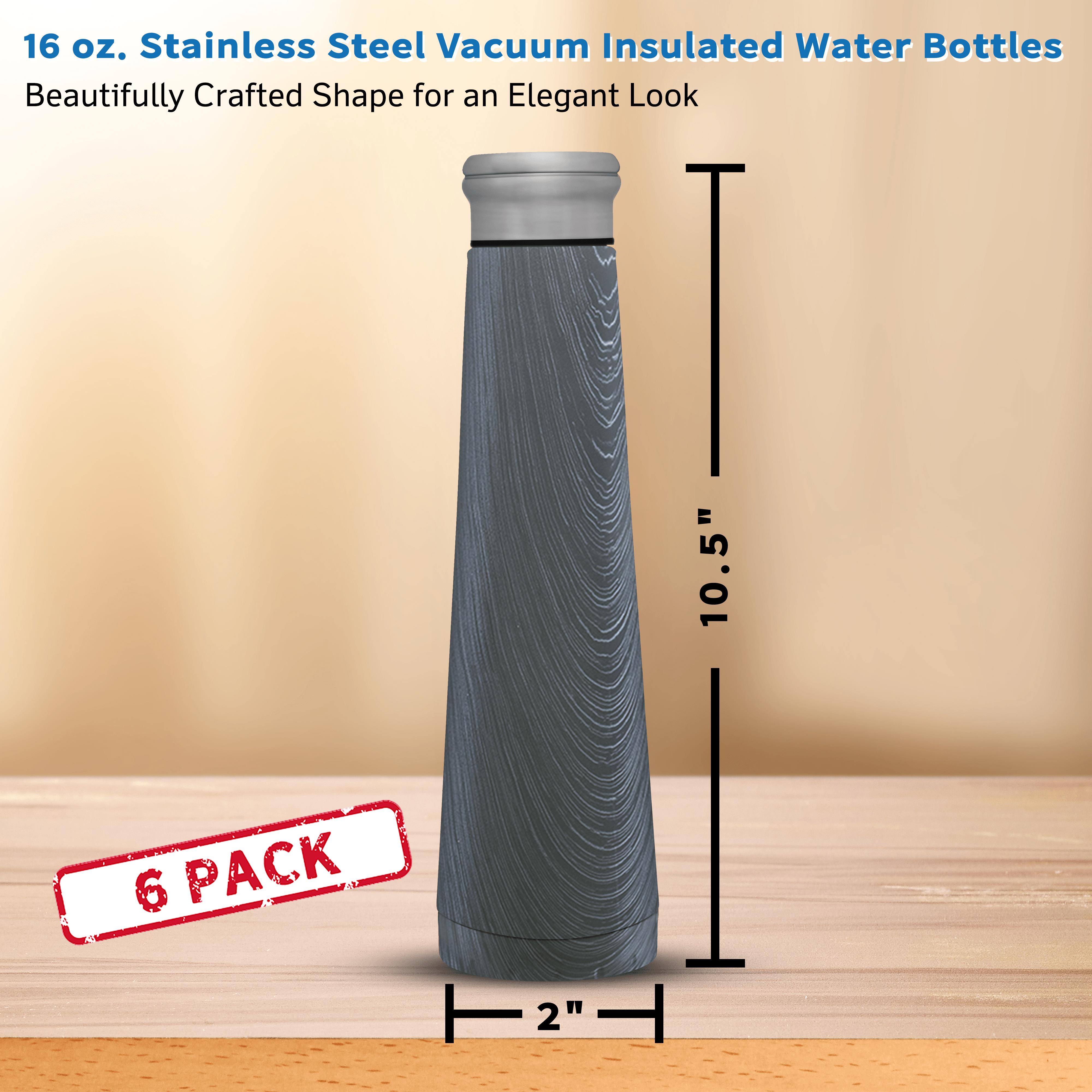 6 Vacuum Insulated Water Bottles Set, 16 oz. - Double Wall, BPA Free - Rustic Grey
