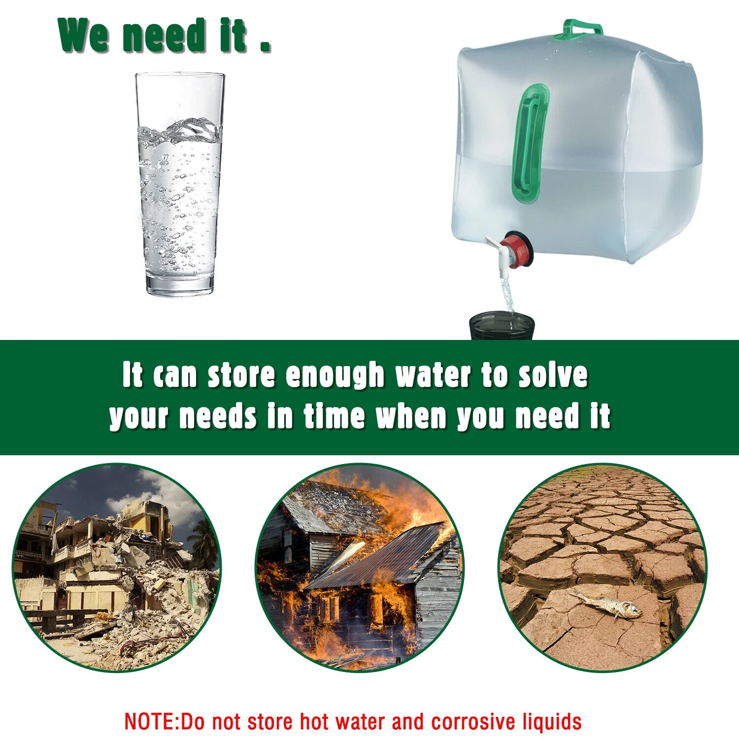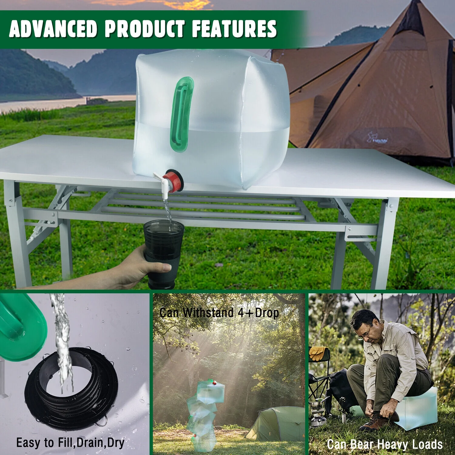 Portable Collapsible Water Container Storage Carrier Jug W/Spigot 2.6-5.2Gallon