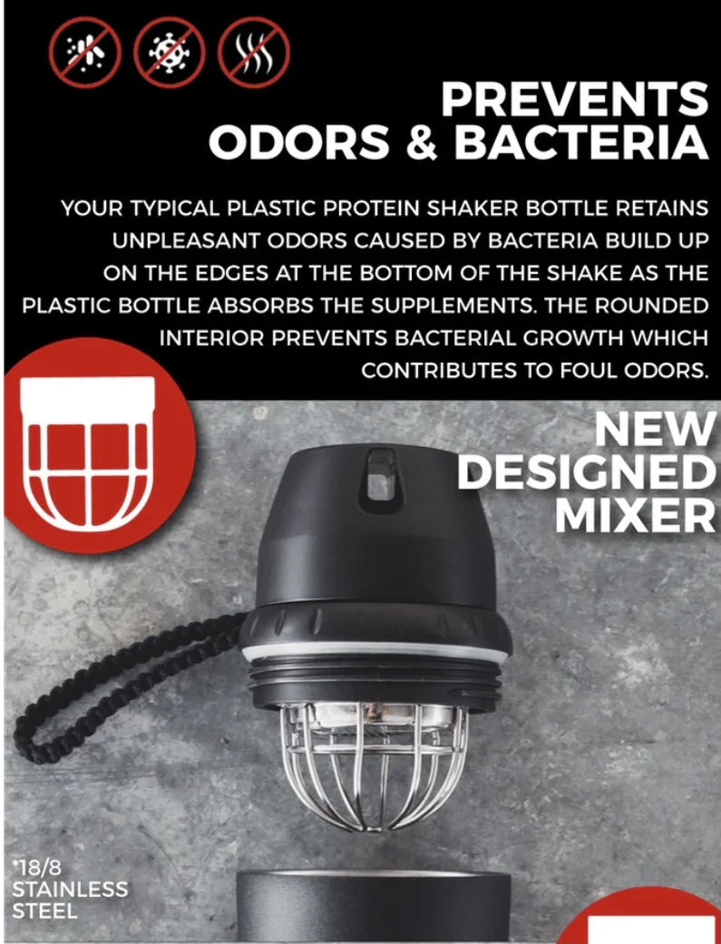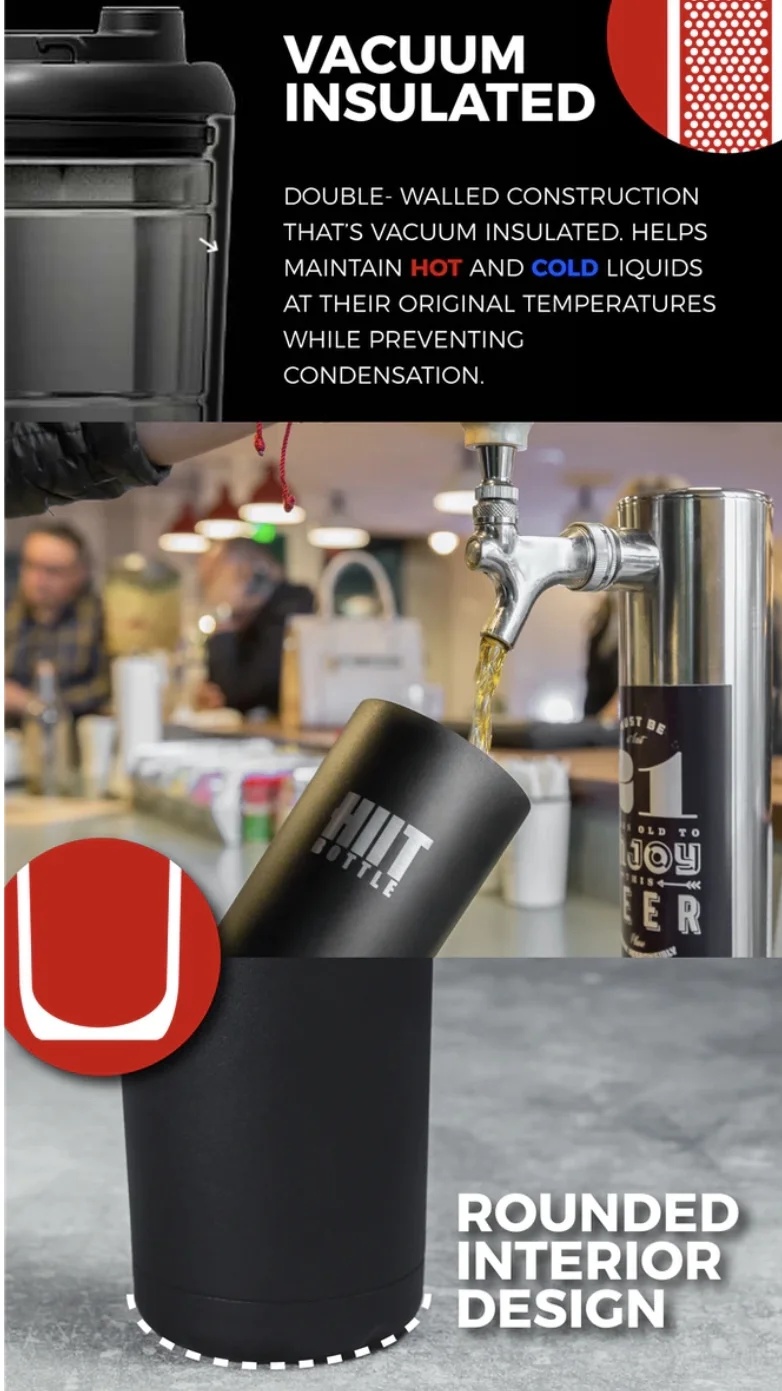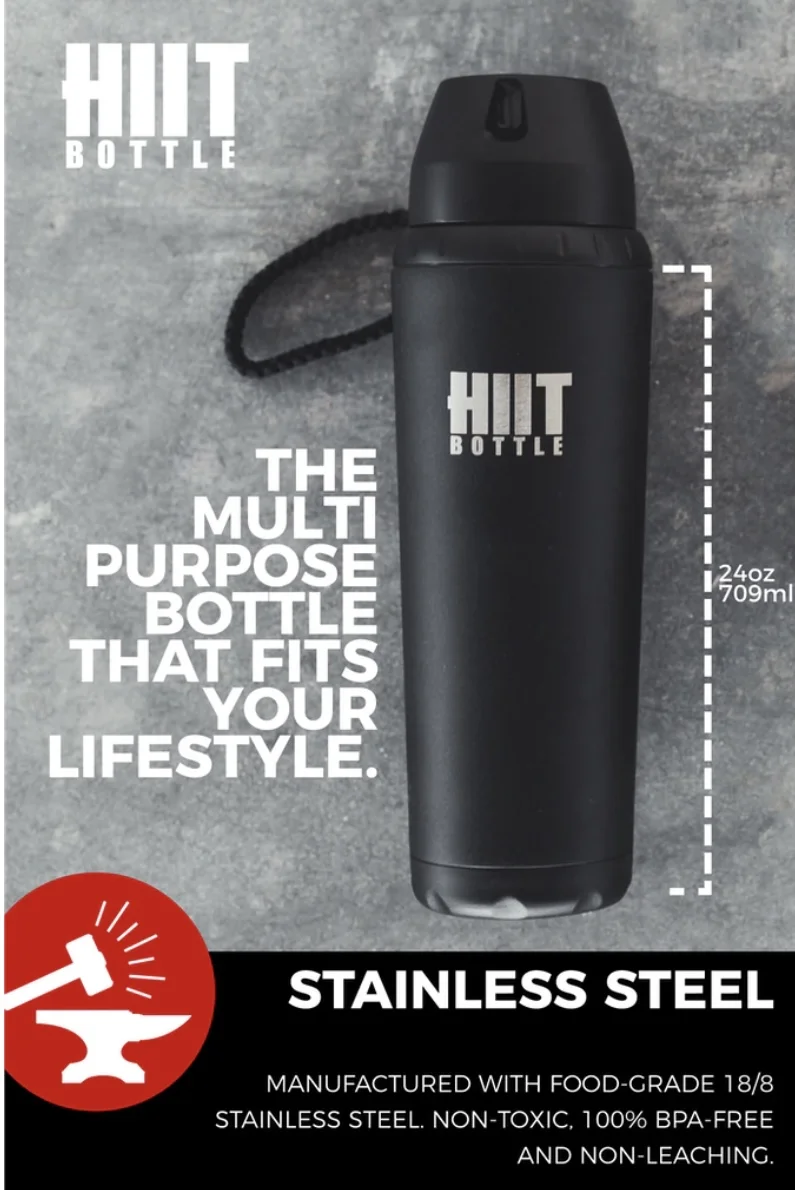 HIIT Bottle (WHITE. Stainless Steel Insulated Water Bottle with and Mixer (24 oz. BPA Free)