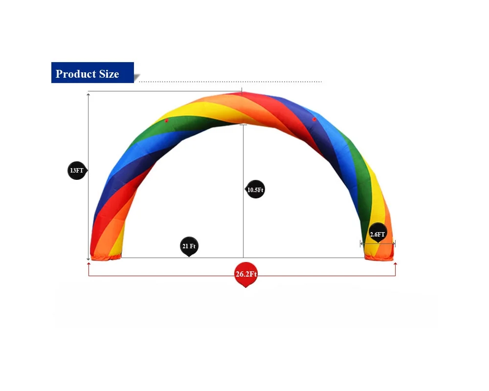 Techtongda 26ft Inflatable Rainbow Advertising Arch with Free 44yd Fixed Rope