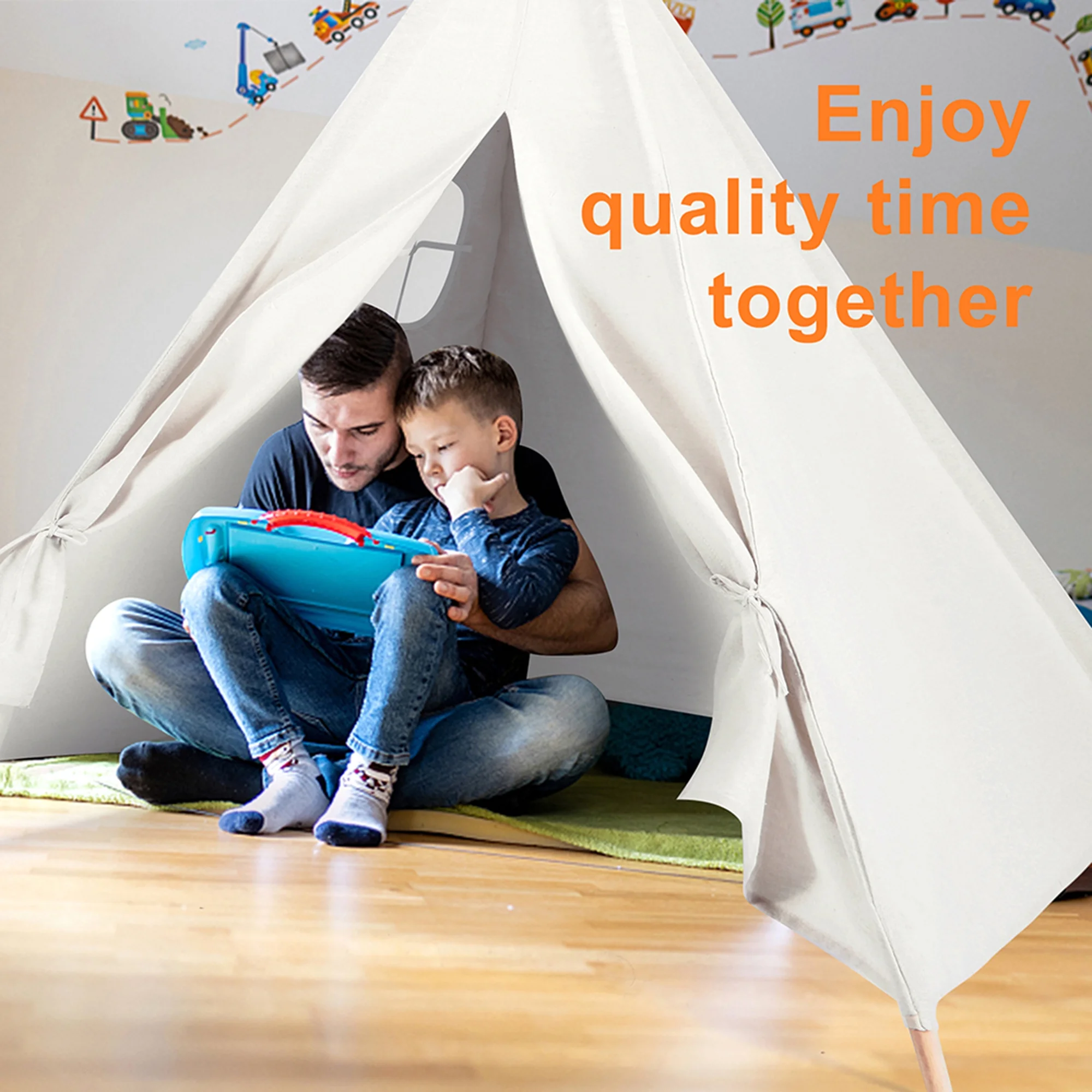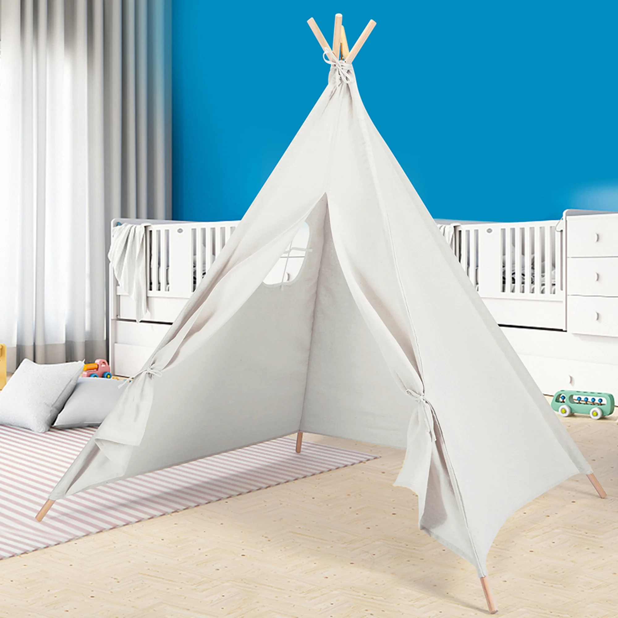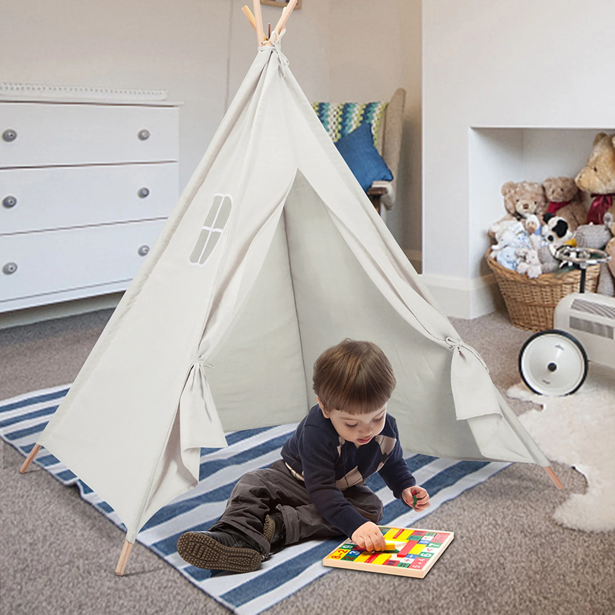 Teepee Tent for Kids Cotton Canvas Play Tent with Window Indoor Outdoor for Kids