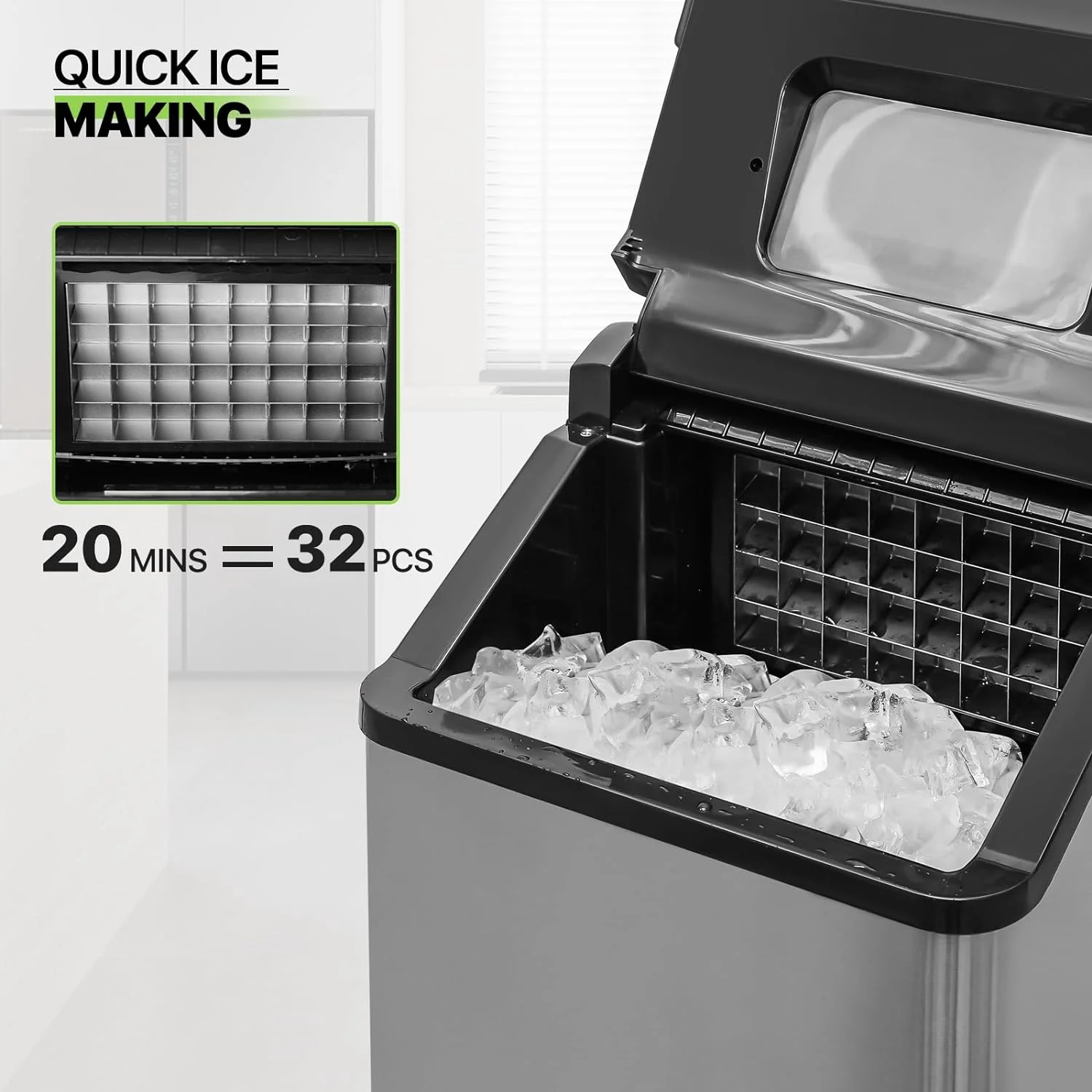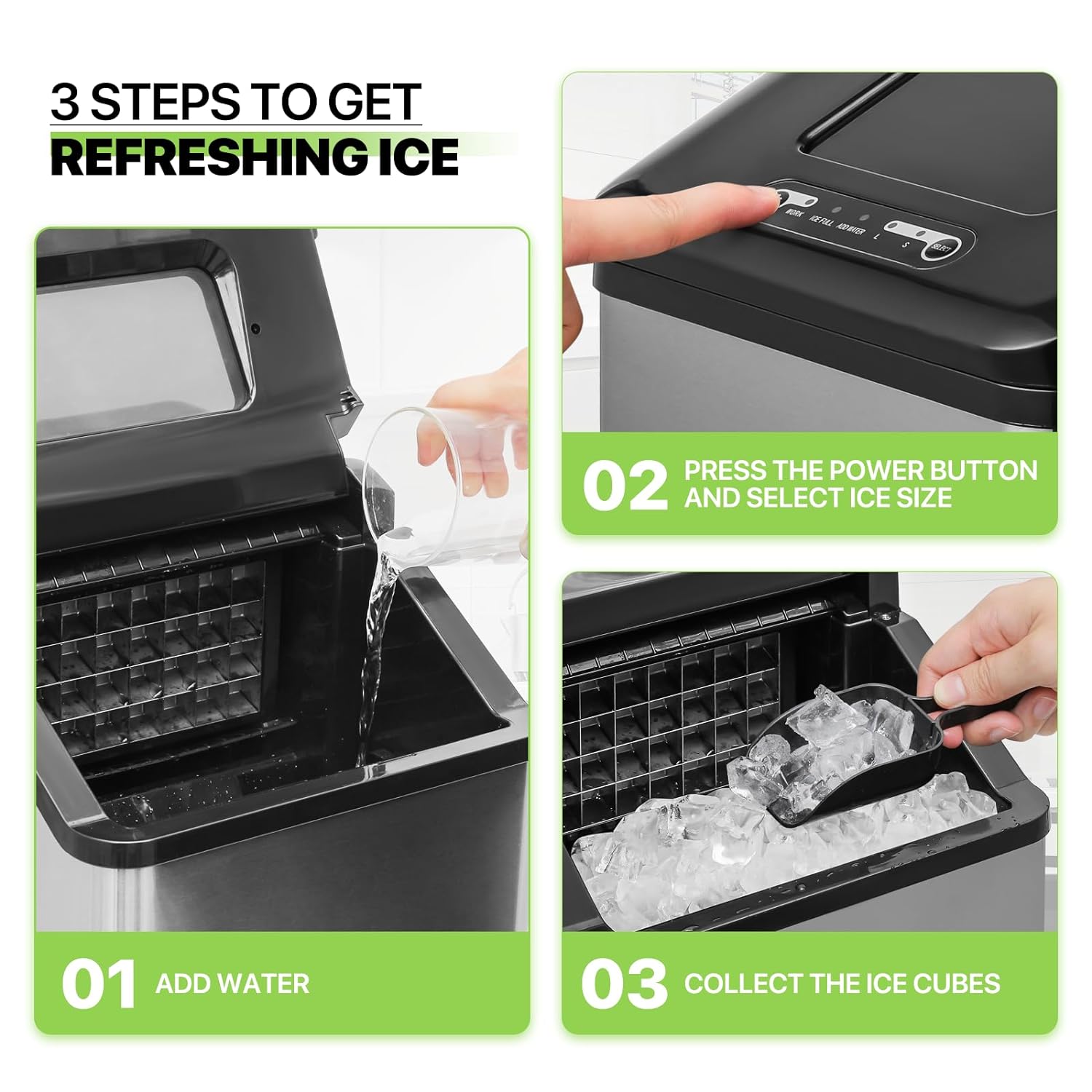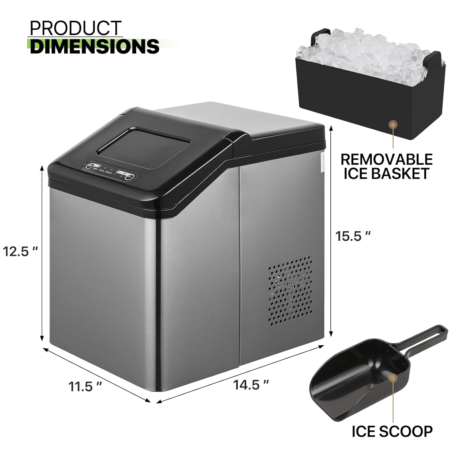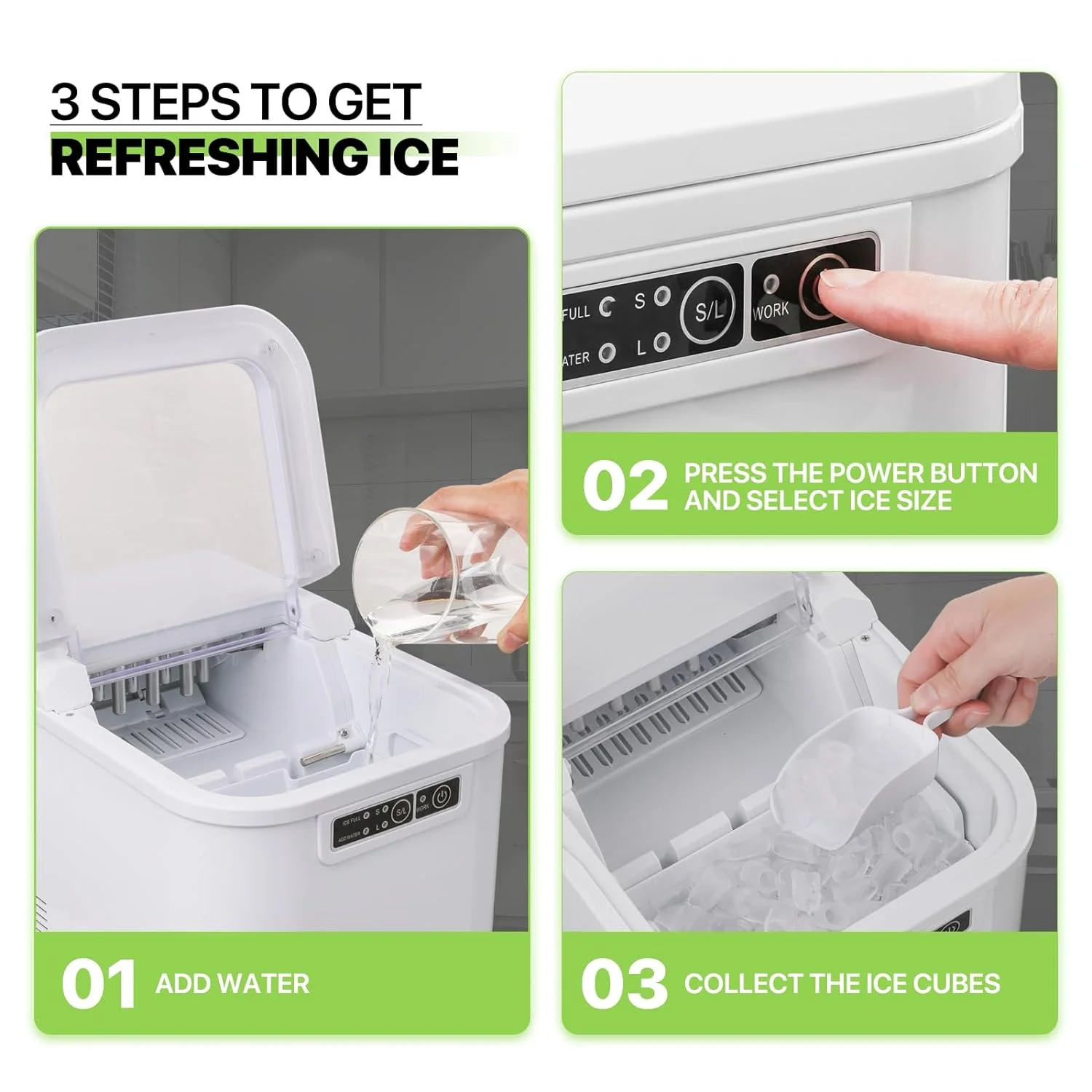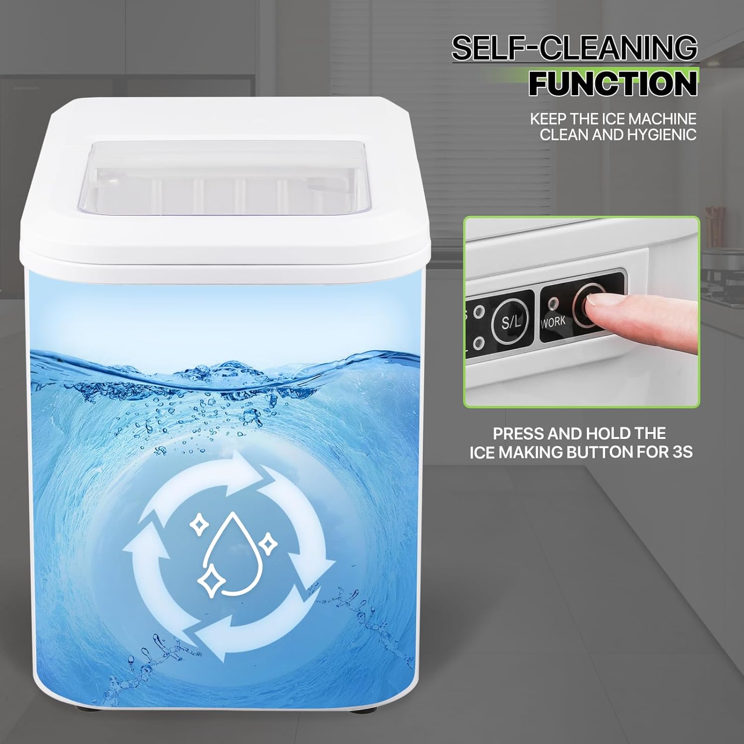 Thermostar TSICEBNHSC26AQ 26-Pound Automatic Self-Cleaning Portable Countertop Ice Maker Machine, Aqua