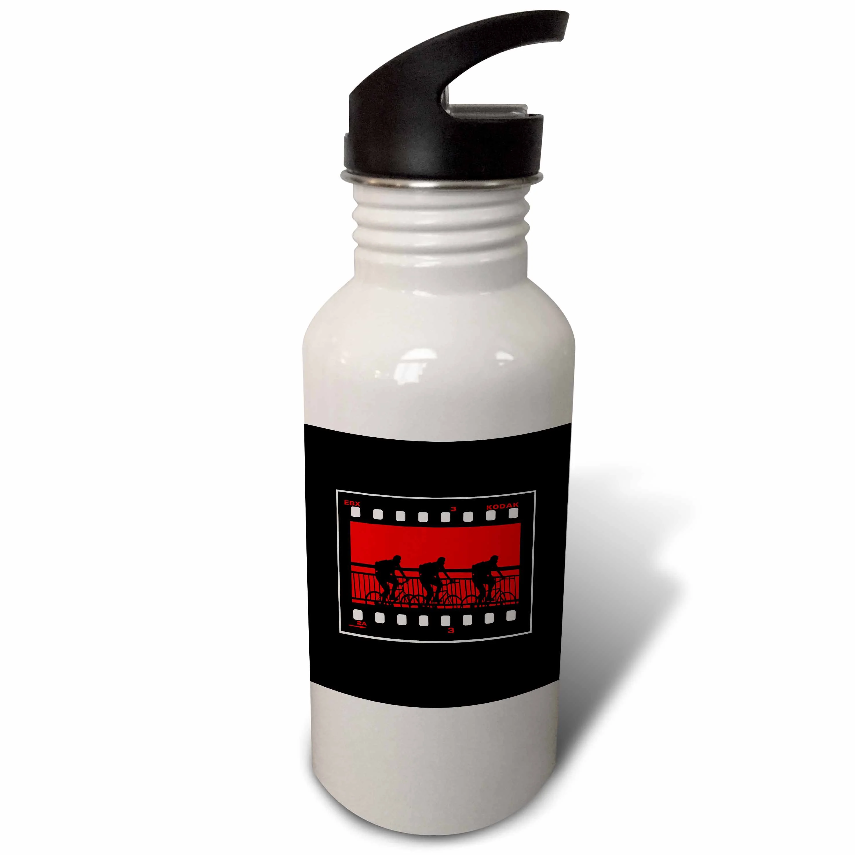3dRose Film strip of bicycle riders against a red background, Sports Water Bottle, 21oz