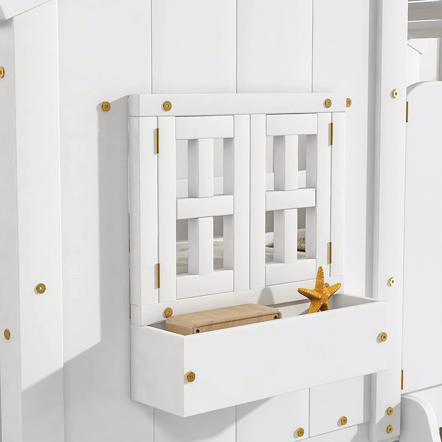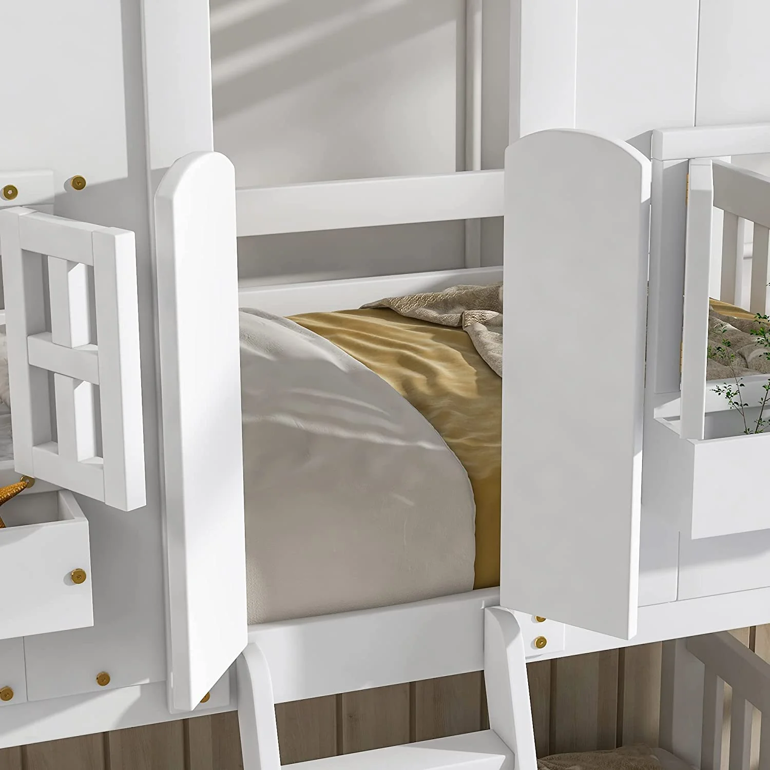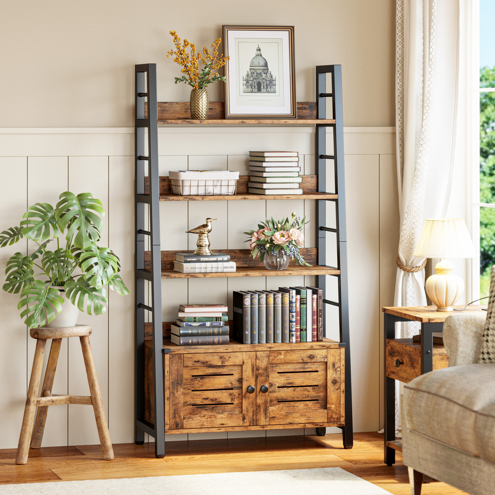 IRONCK Bookshelf, 3-Tier Ladder Shelf with Louvered Doors, for Living Room Home Office