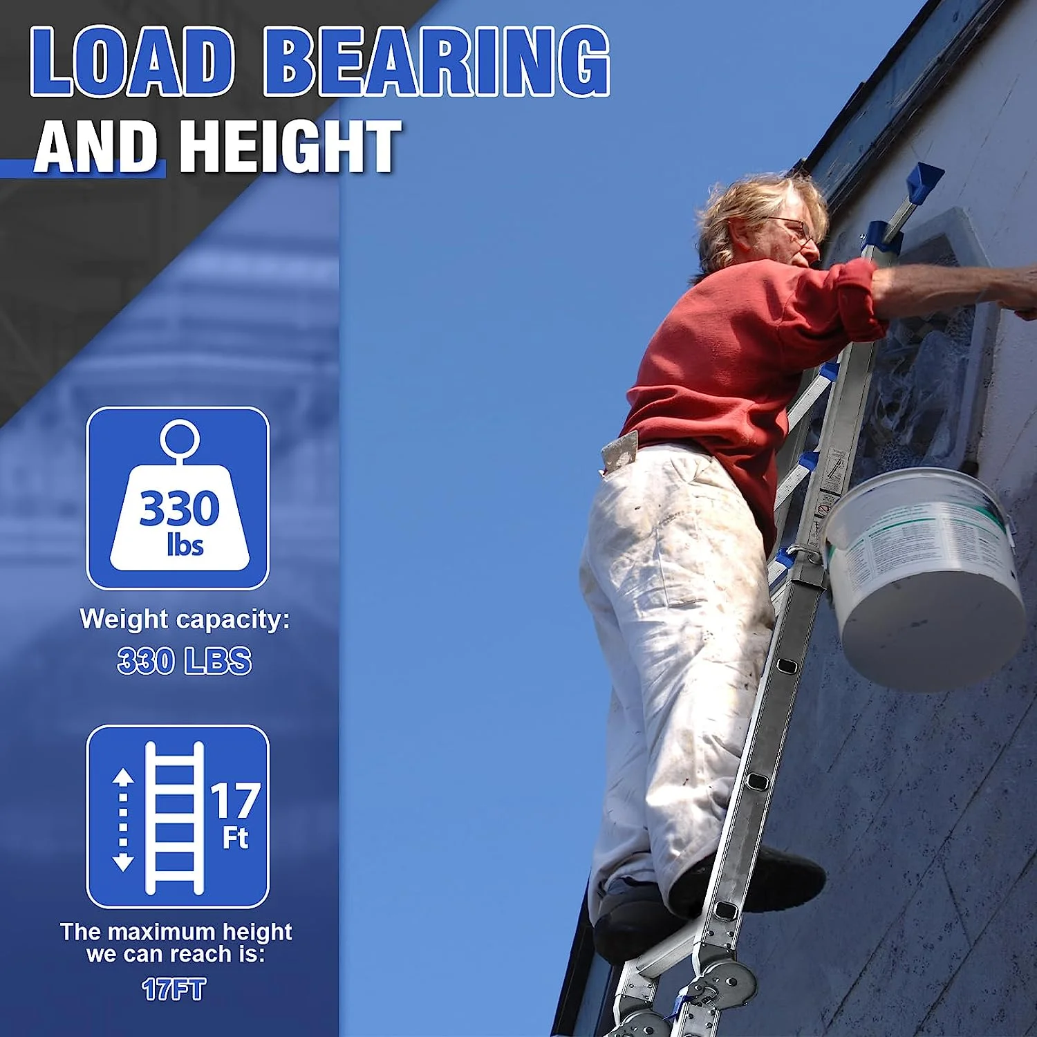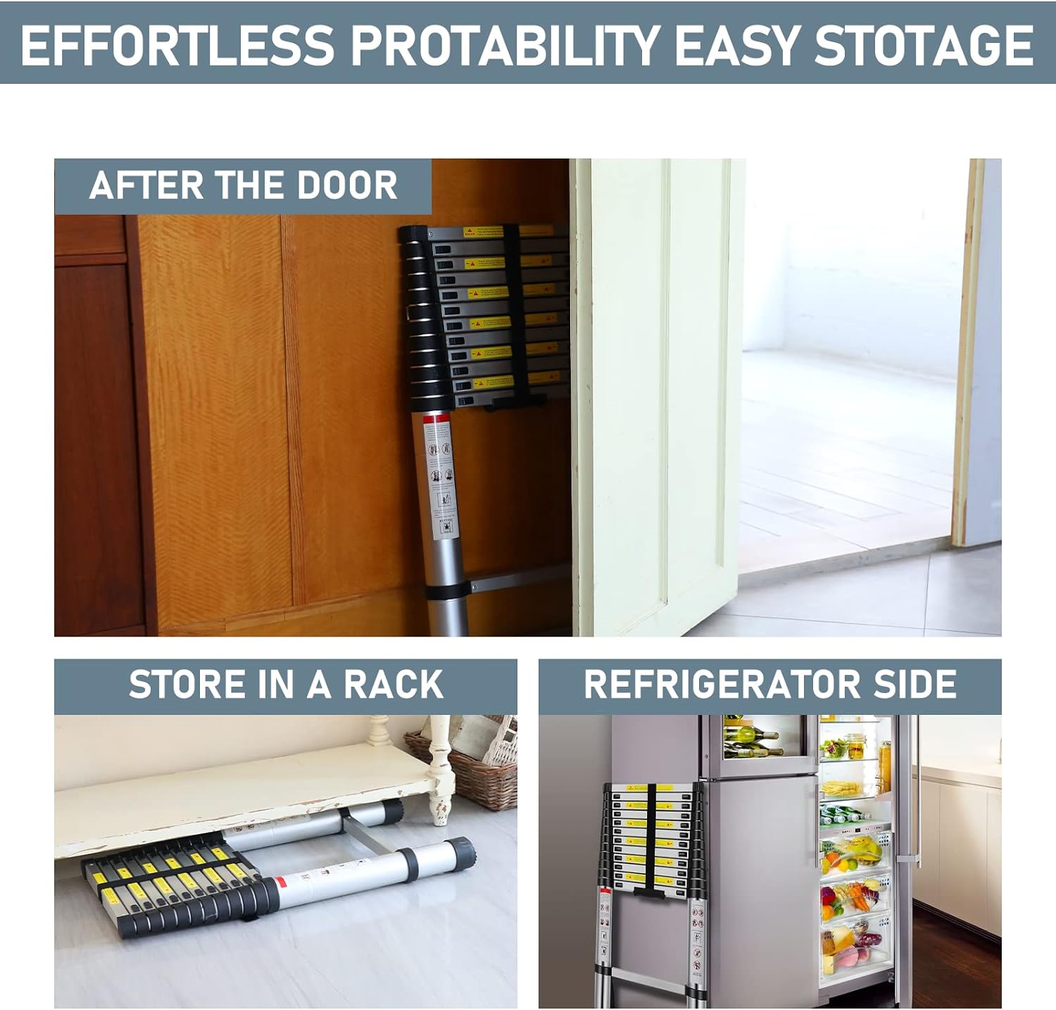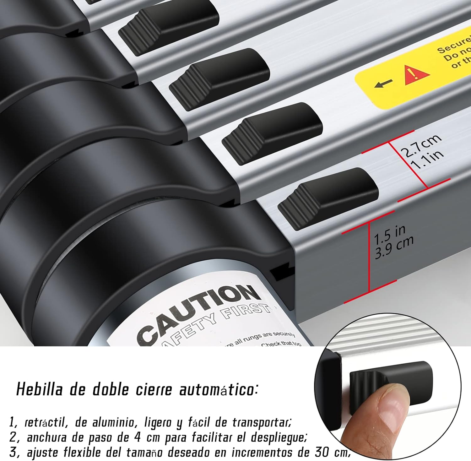 OUWI® 3.2M Portable Aluminium Telescopic Ladder, Foldable and Extendable Extension EN131, Maximum Load 150 kg