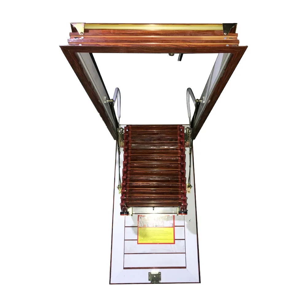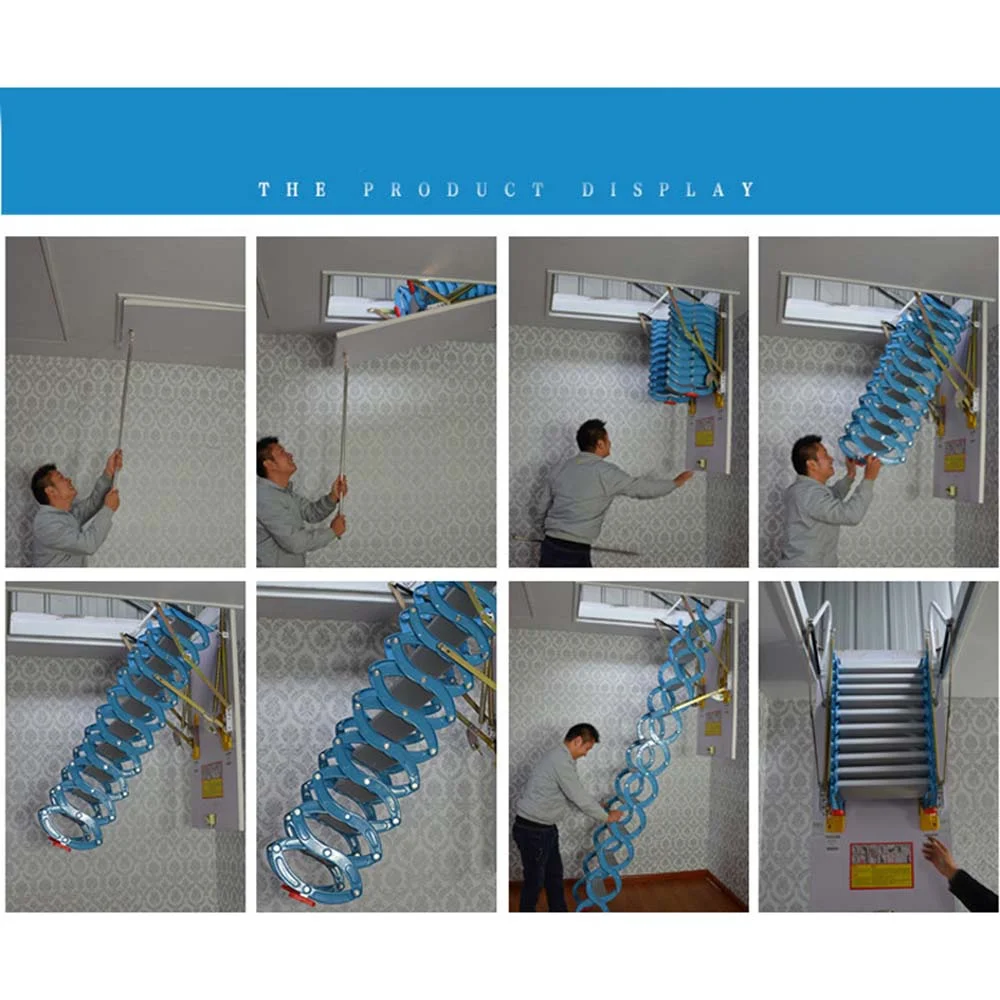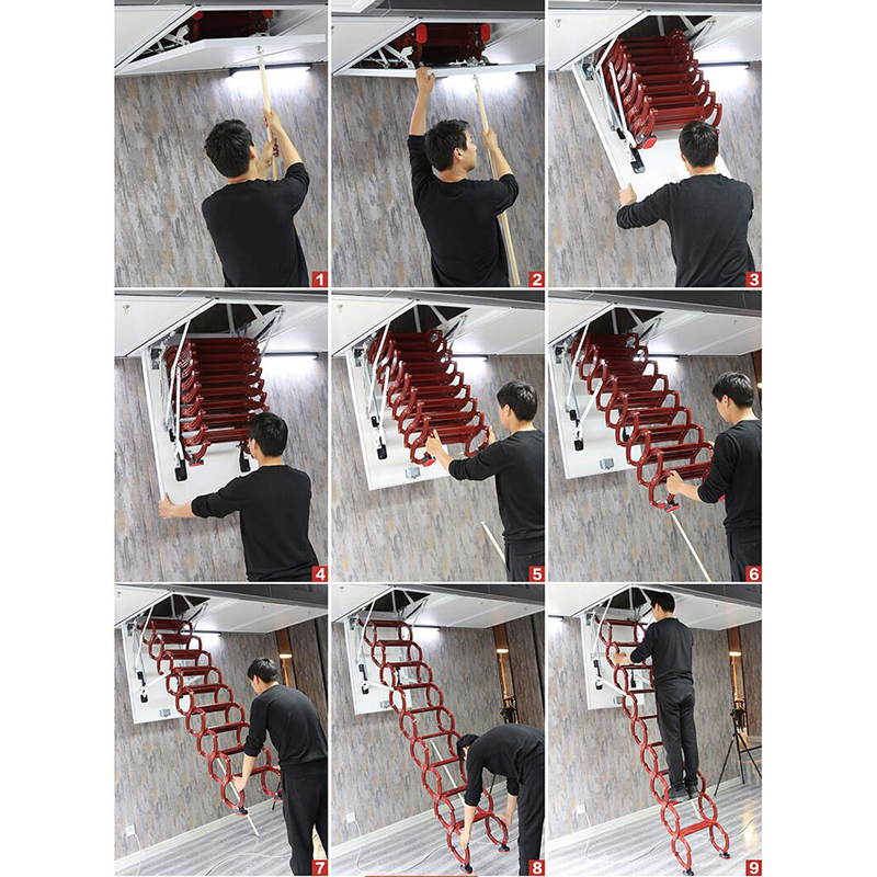 EQCOTWEA Attic Ceiling Retractable Folding Ladder Stairs 31.5*35.4in Portable Extension Staircase Red