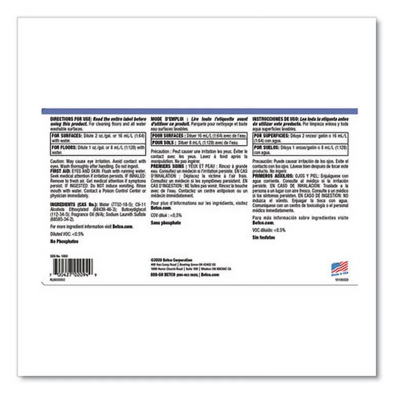 Betco Spectaculoso Multipurpose Cleaner, Lavender Scent, 1 Gal Bottle, 4/Carton