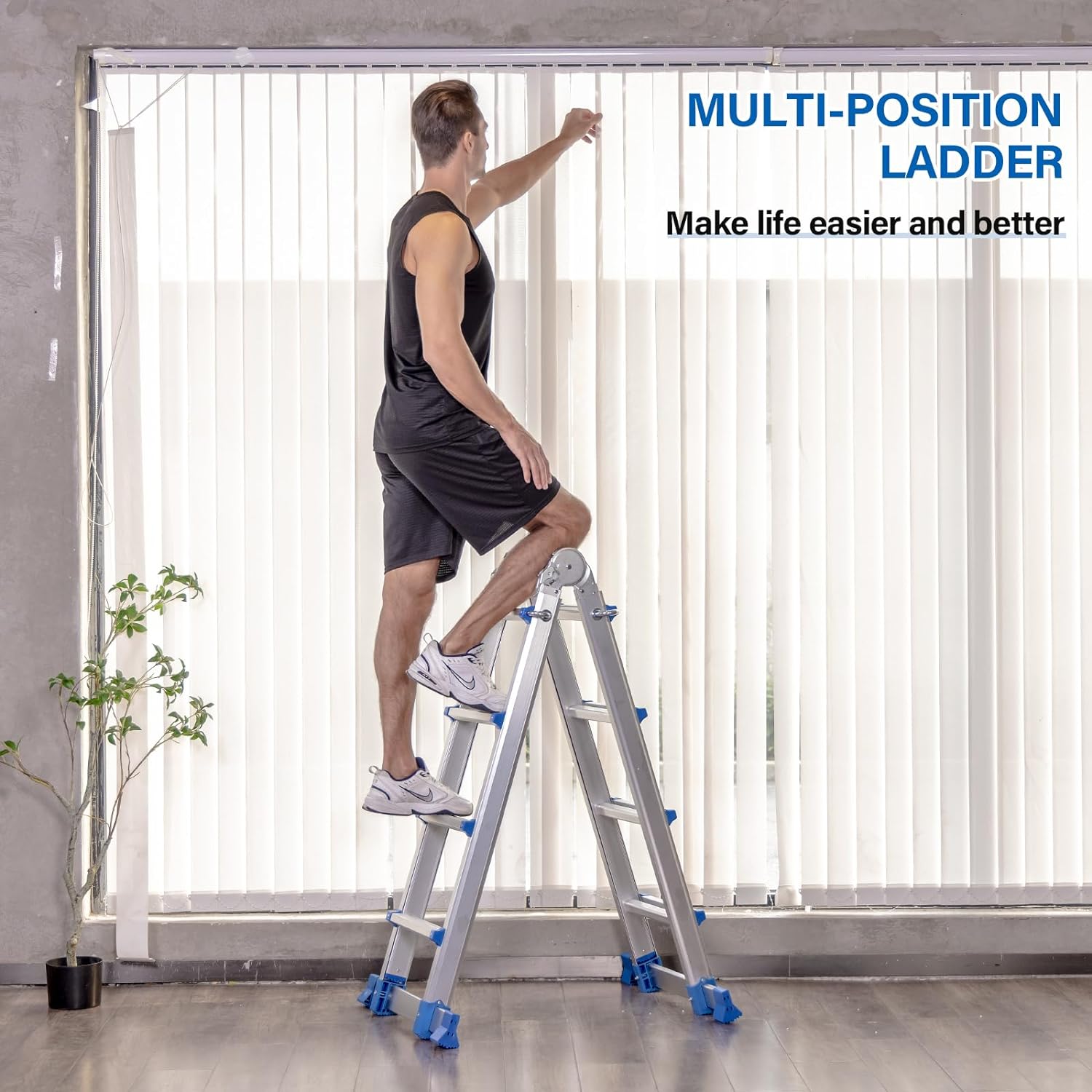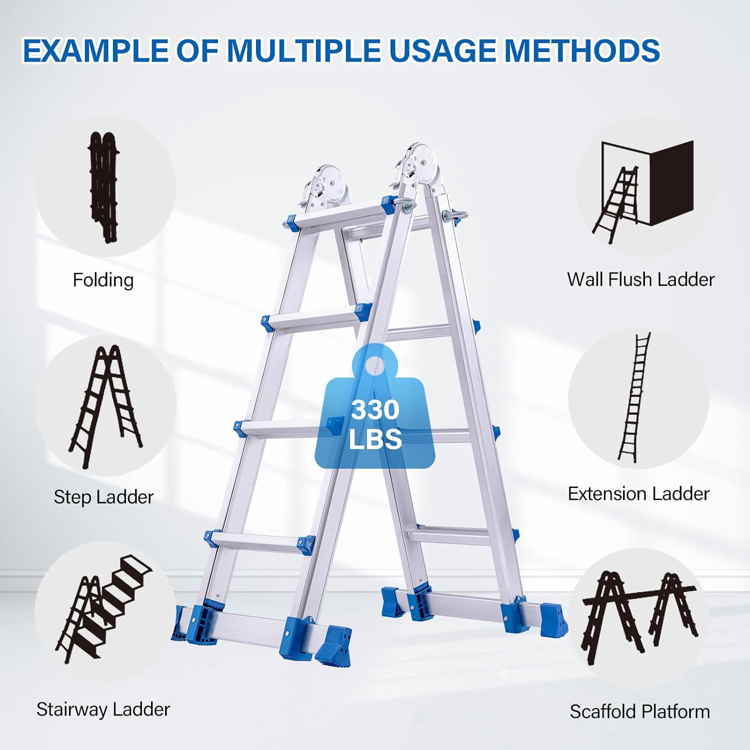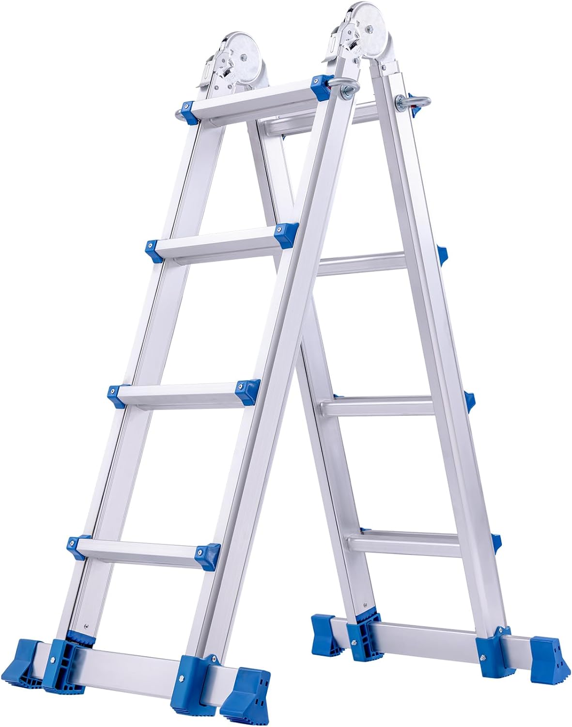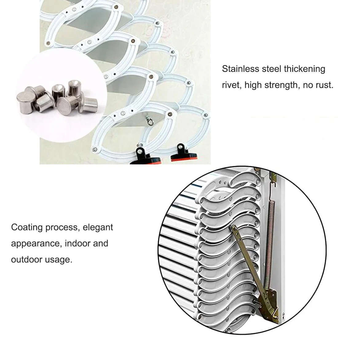 EQCOTWEA Wall Mounted Loft Wall Ladder Stairs 9.84ft Portable Extension Staircase Al-Mg Alloy White