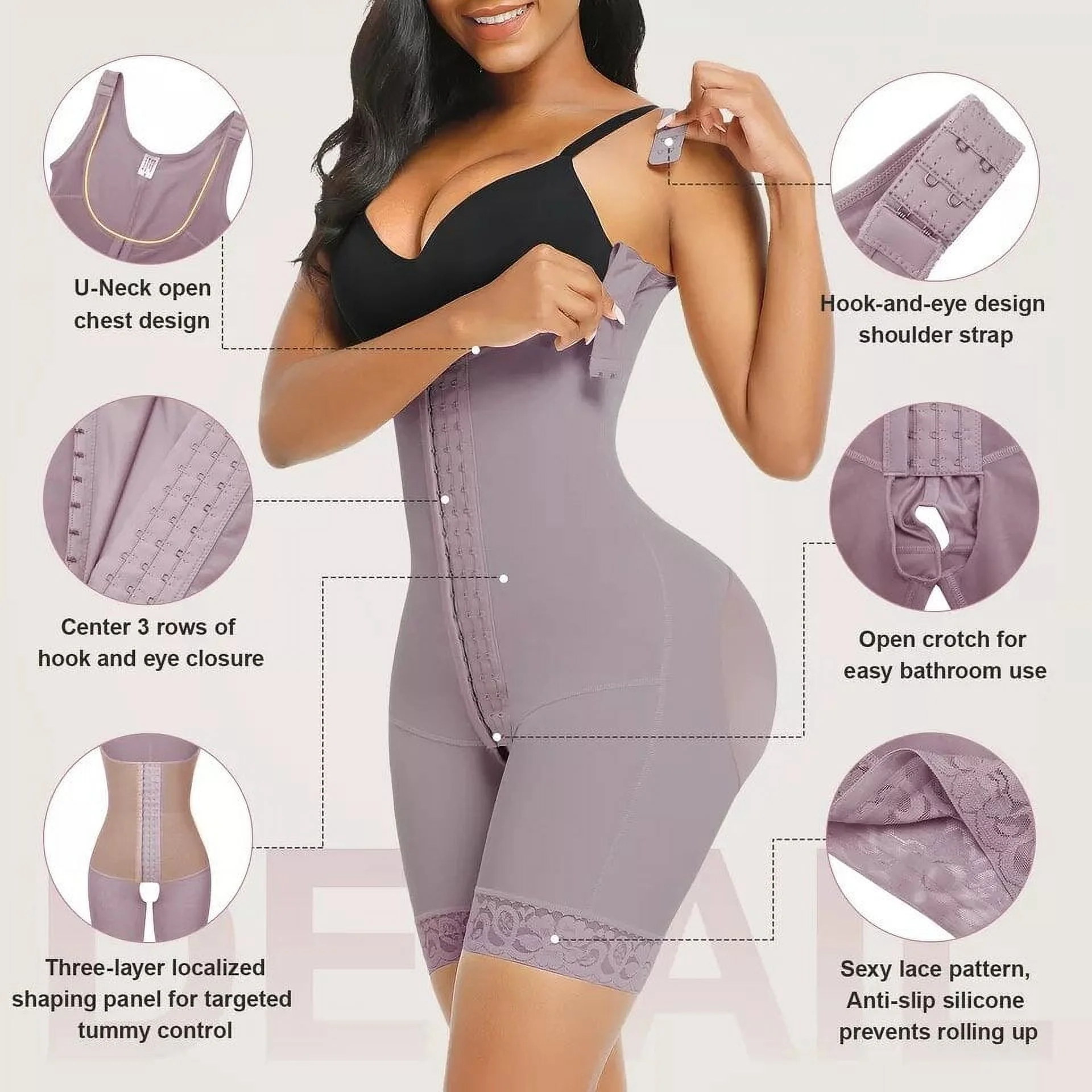 MyD 0074 Fajas Colombianas Reductoras Post Surgery Full Body Shaper for Women Black 2XL