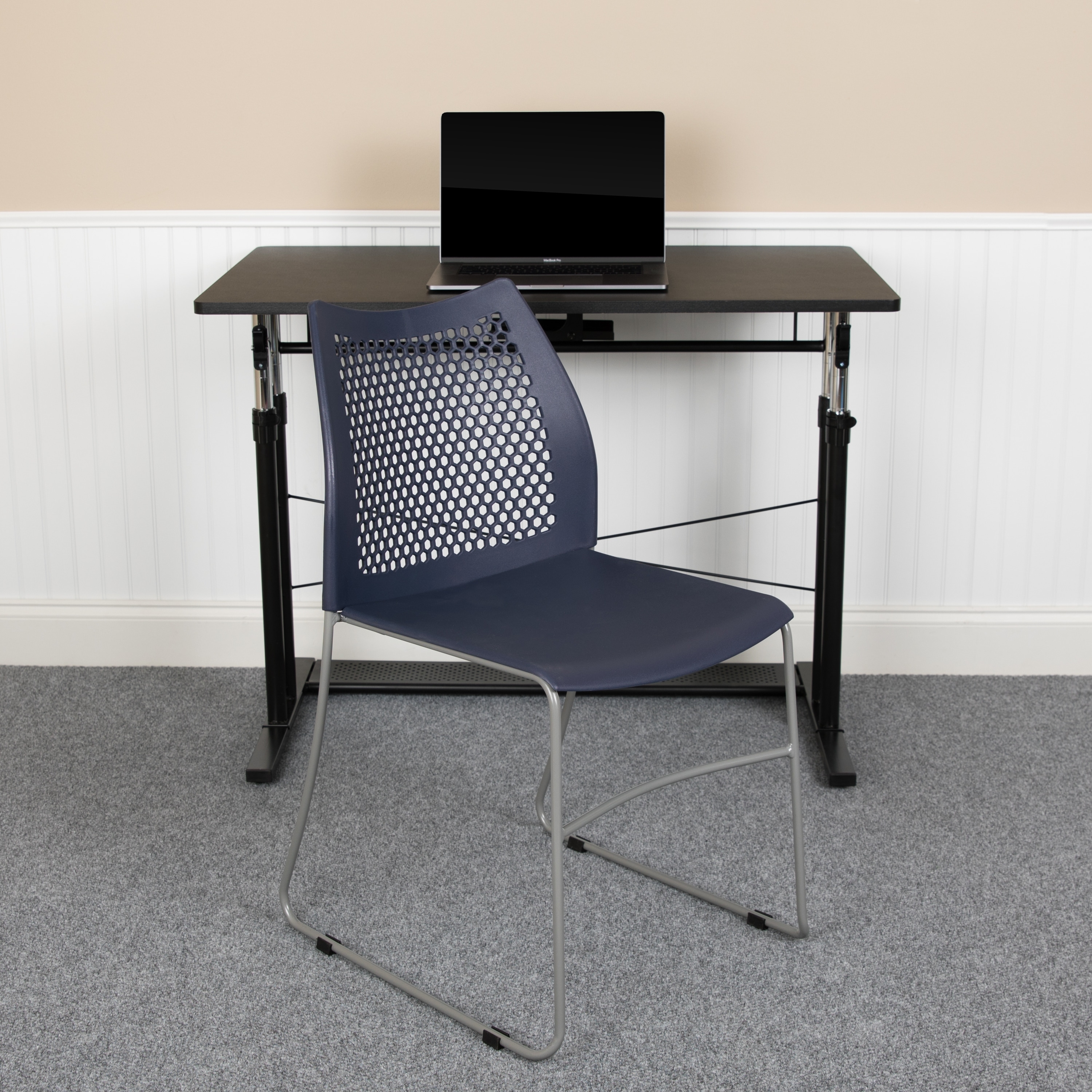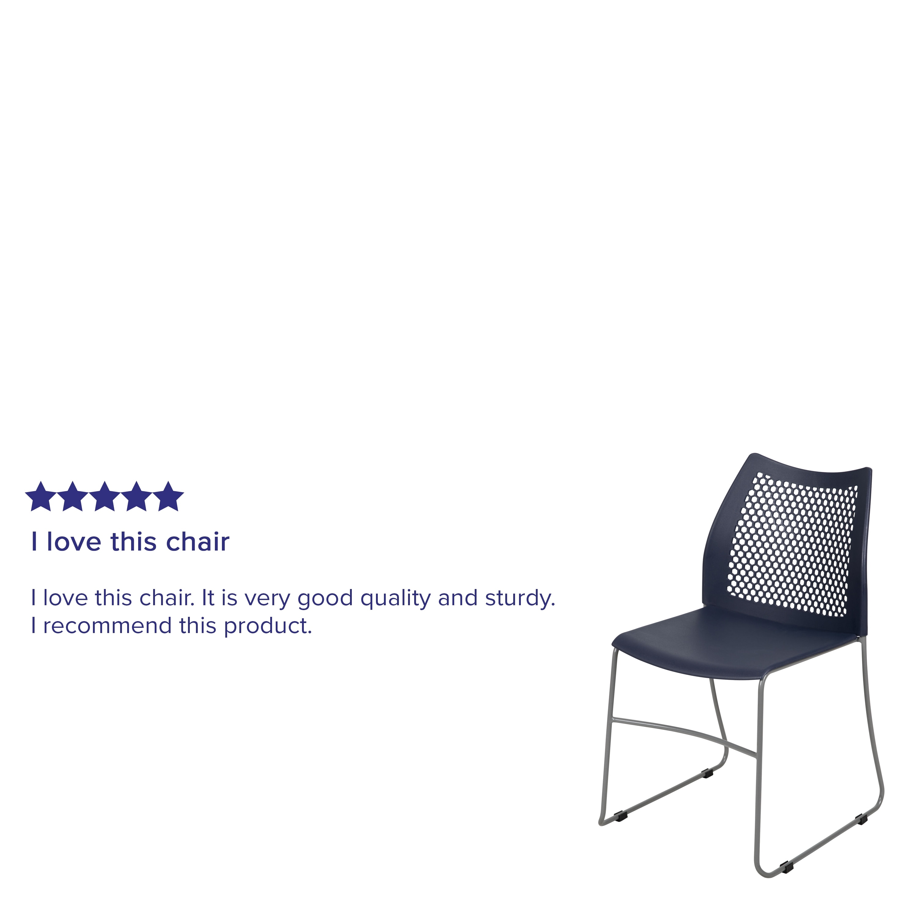 Lancaster Home 5 Pack 661 lb. Capacity Stack Chair with Air-Vent Back and Sled Base Navy