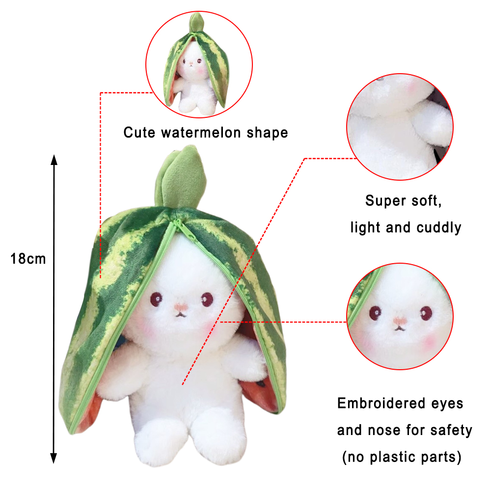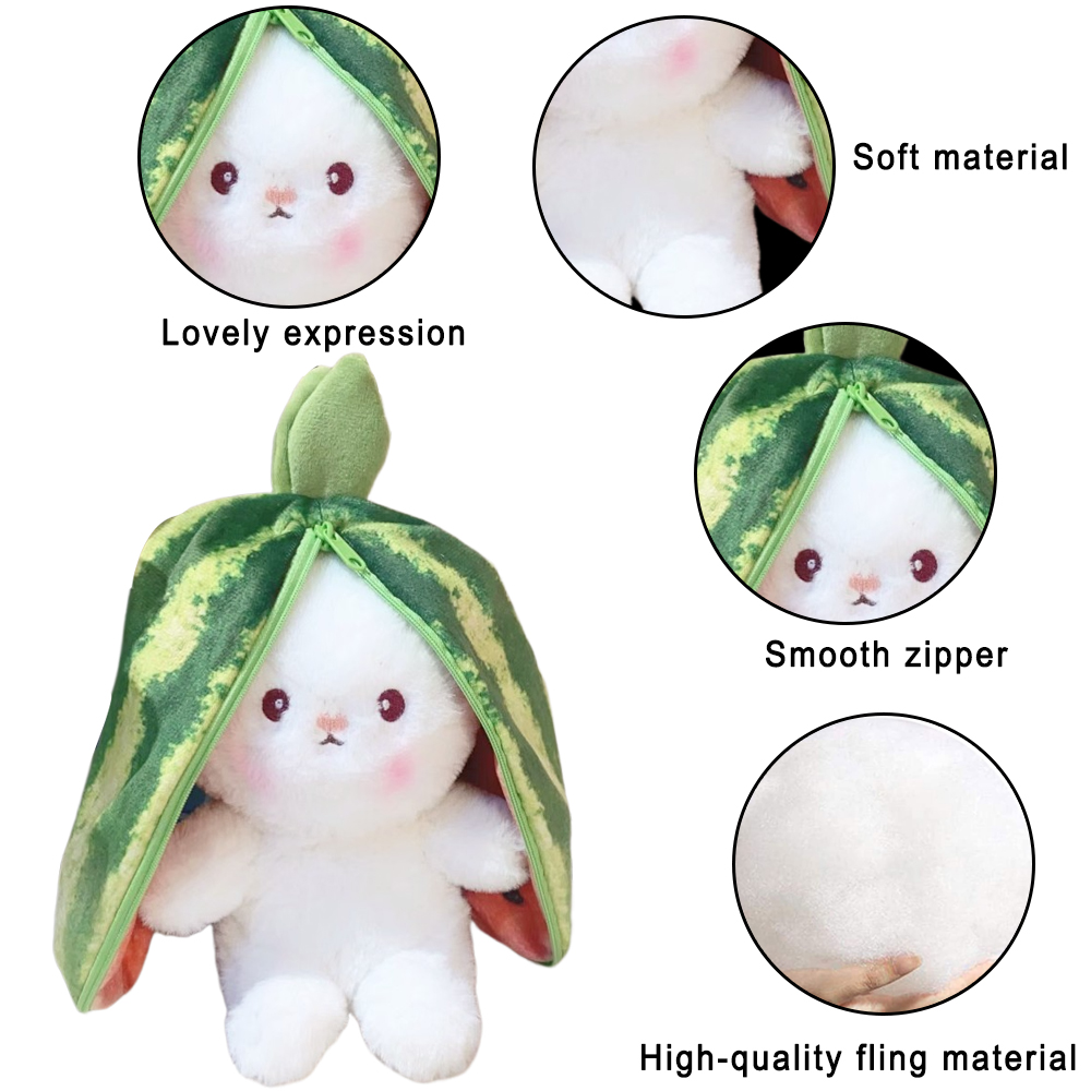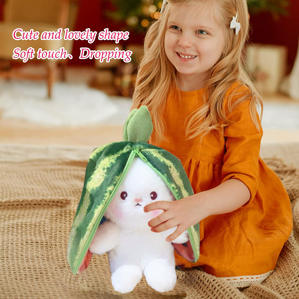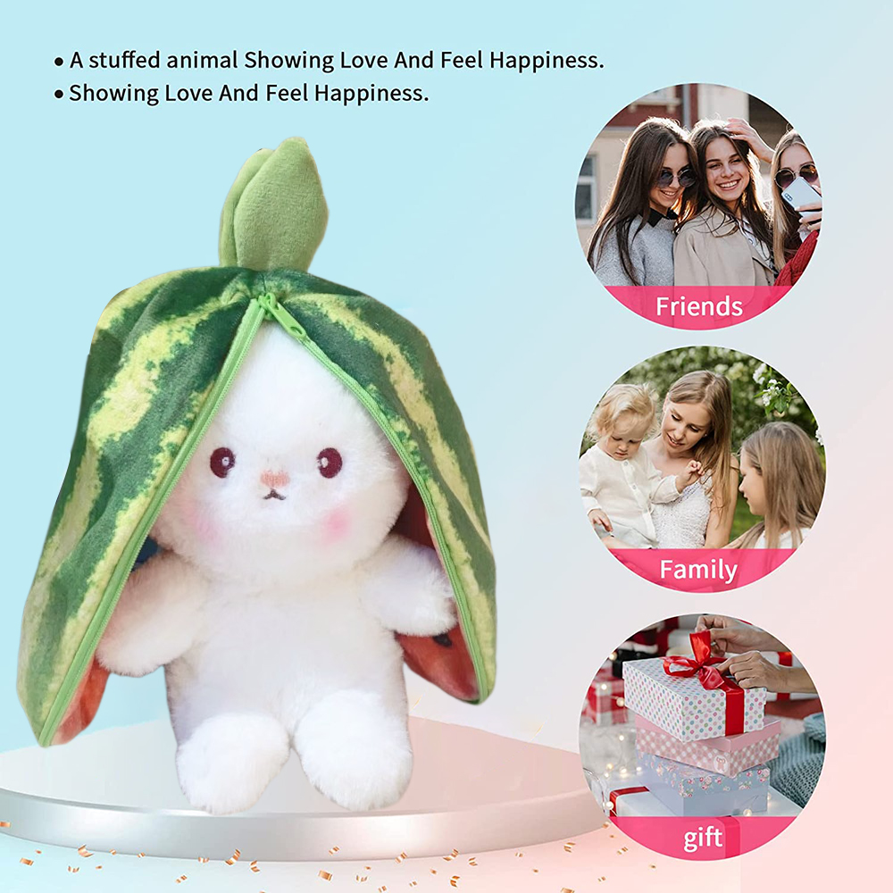 Sarzi Bunny Stuffed Animal ,Easter Bunny Toy Watermelon Plush with Zipper Easter Reversible Watermelon Bunny Bunny Toy Plush