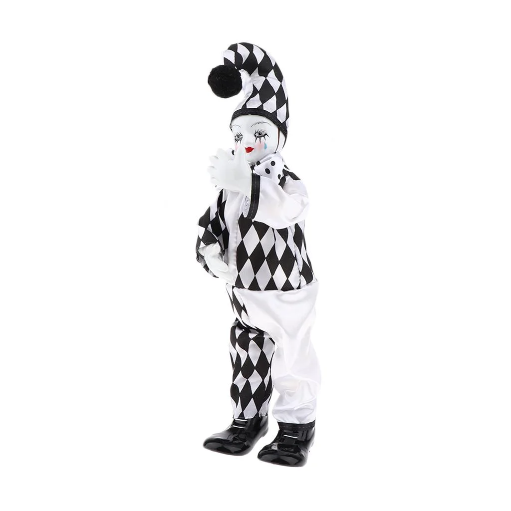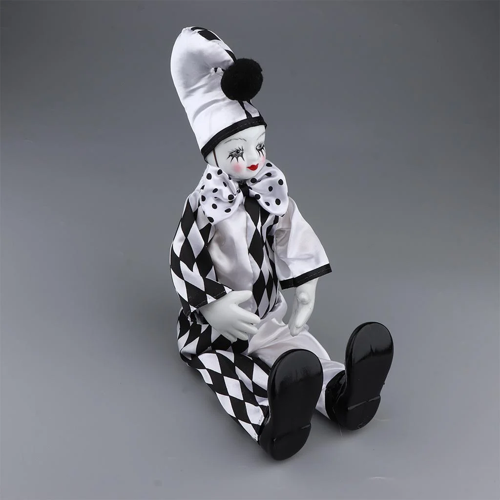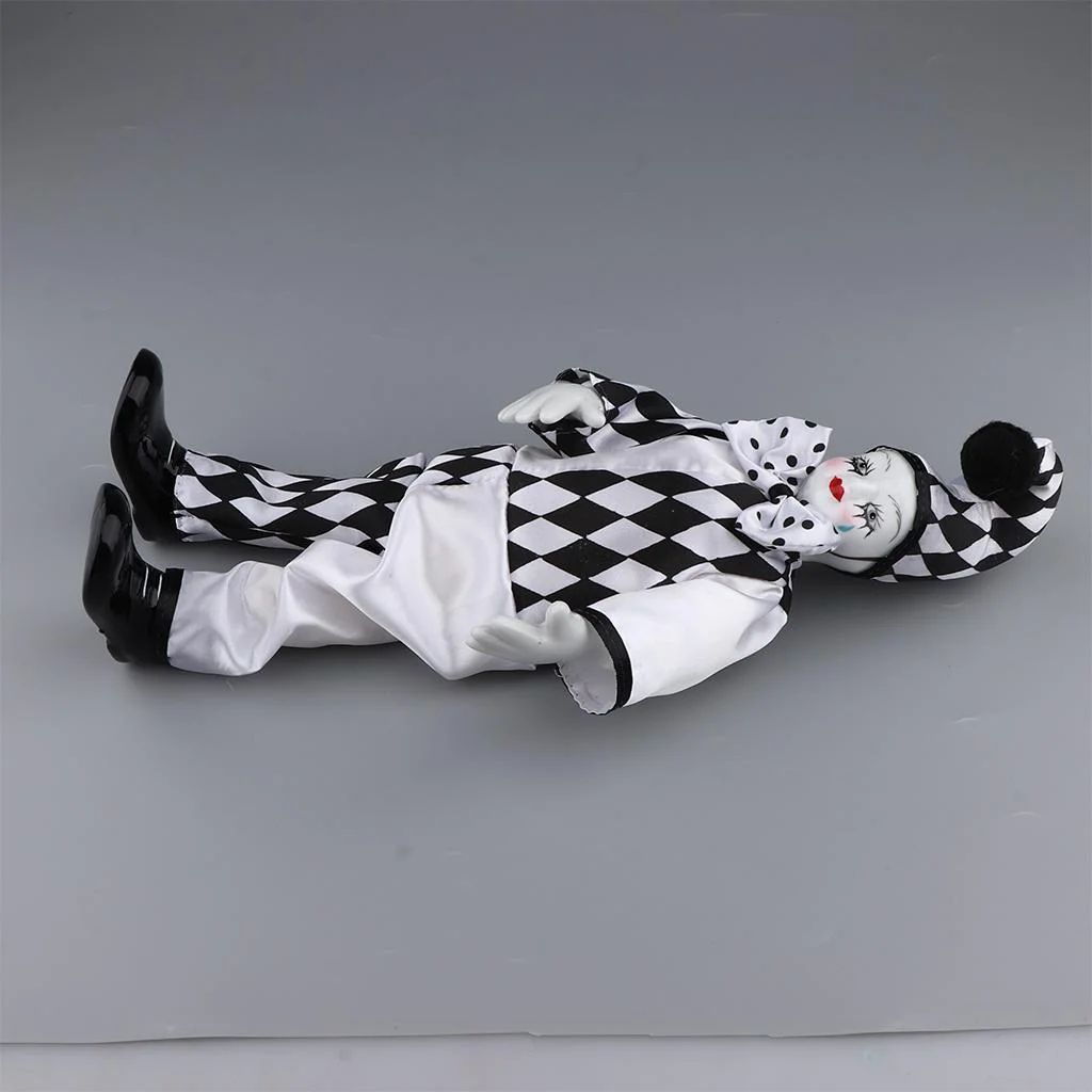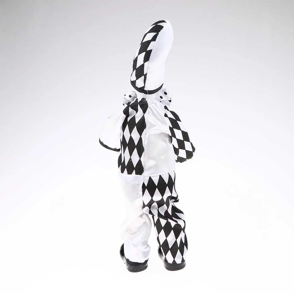 Doll with Clown Costume Ornament Dollhouse Decoration - black and White, 36cm