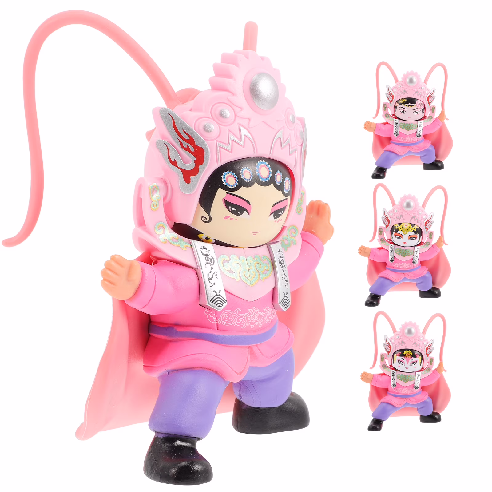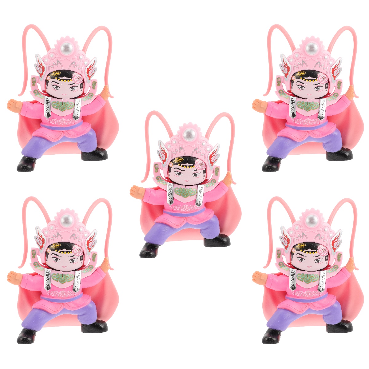 Pink Set of 5 Ornament Beijing Opera Doll Statue Color Box Child