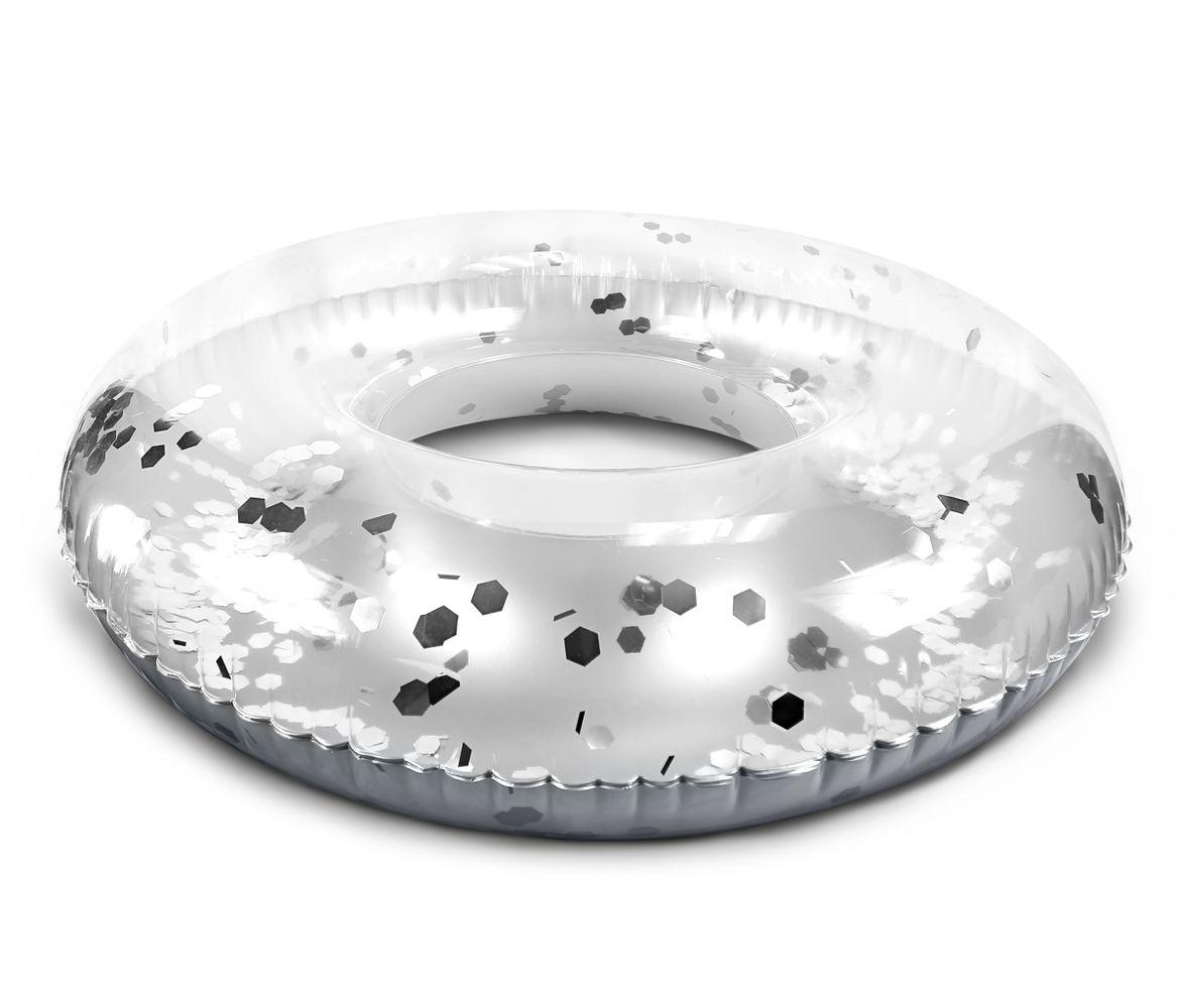 Mozlly Bundle of Inflatable Silver & Gold Pool Float Tubes & Beach Balls Set of 6 - Premium Confetti Swim Rings (36") & Pool Balls (16"), Fun Pool Toys for Beach, Lake, Party, Vacation, Decor - 6 Pack