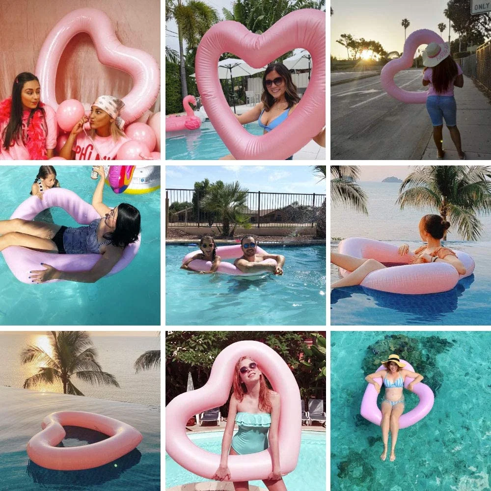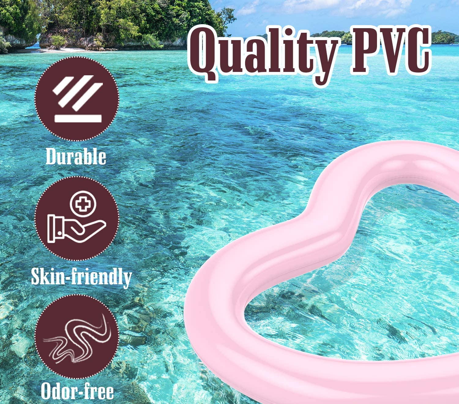 "Inflatable Swim Rings, 47.3"" x 39.4"" Heart Shaped Swimming Pool Float Loungers Tube, Water Fun Beach Party Toys for Kids, Adults - Pink"