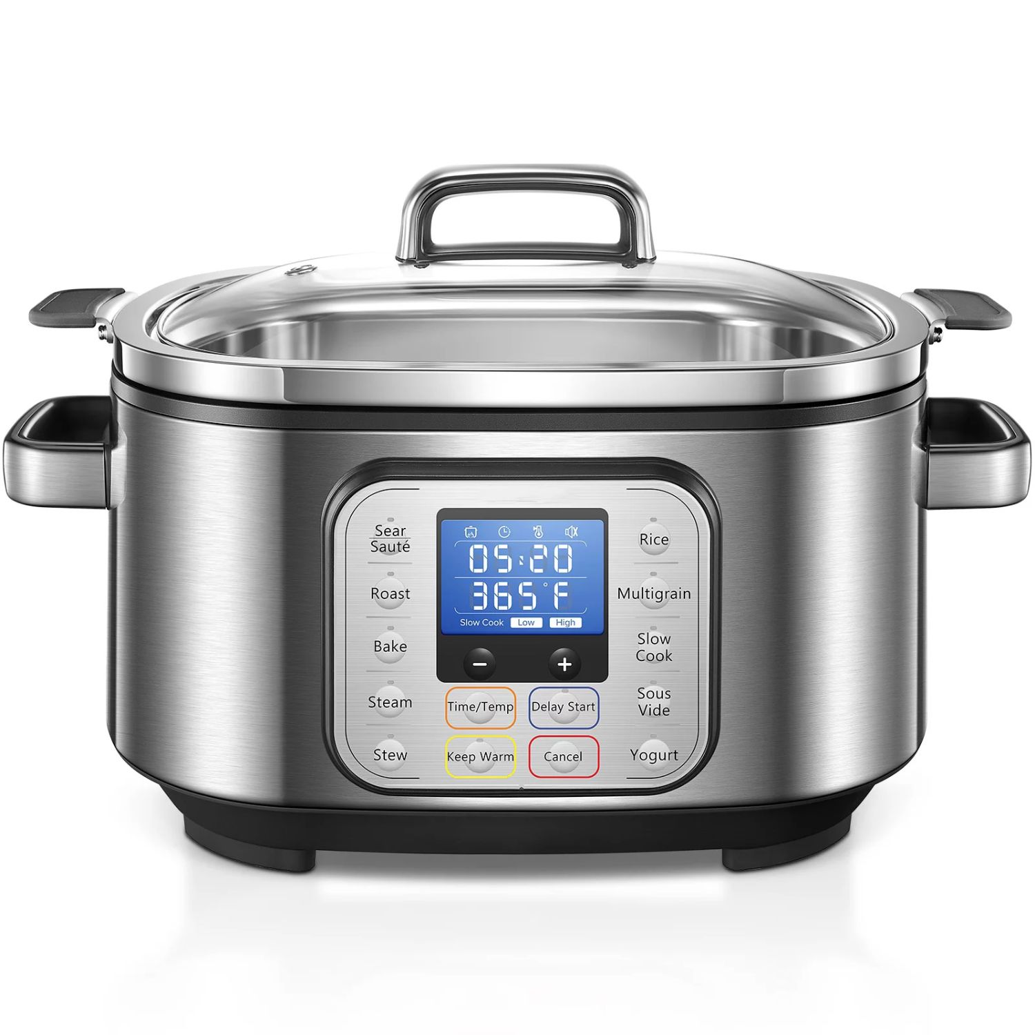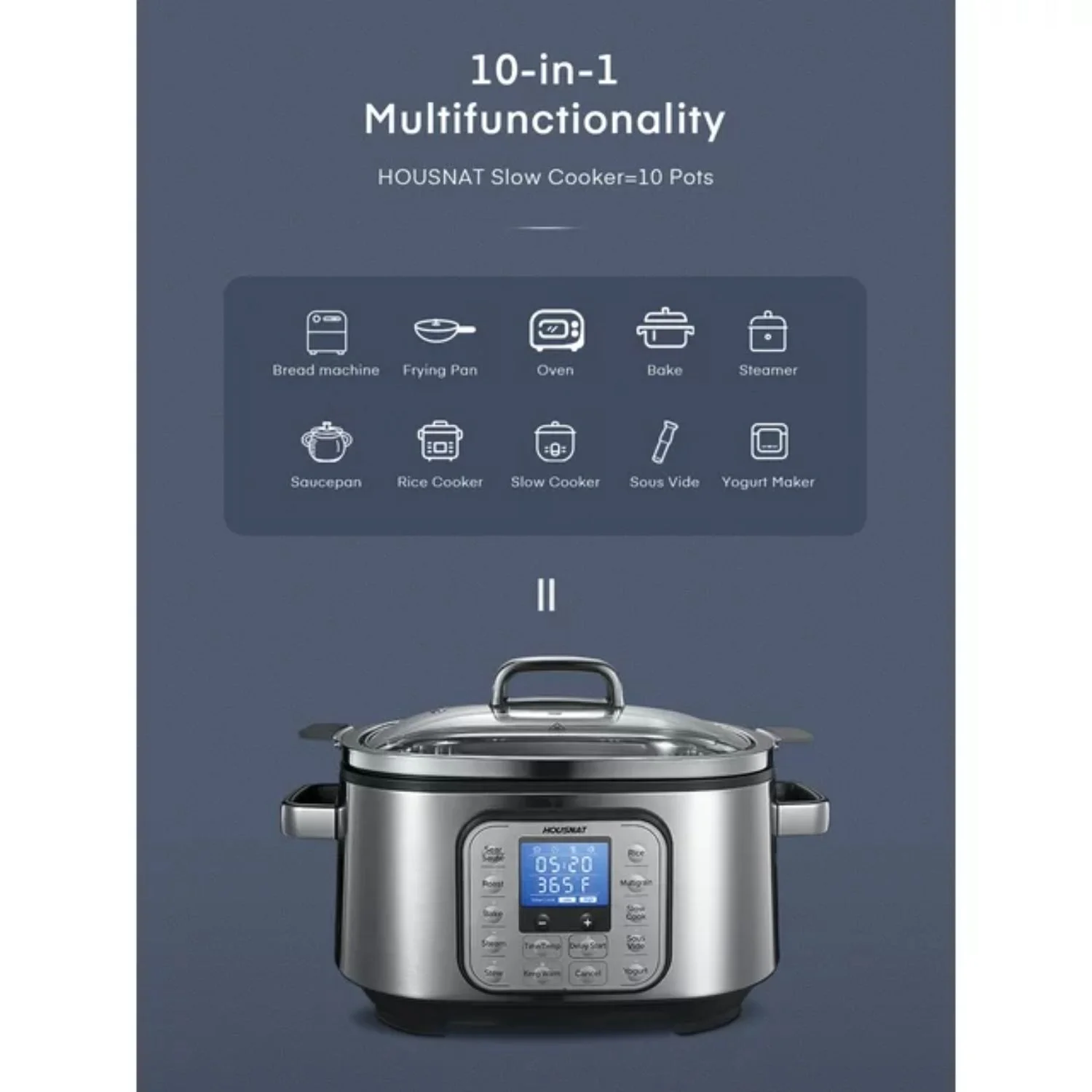 Refurbished AICOOK MC522 Slow Cooker Housnat 10 in 1 Programmable Cooker, 6Qt Silver