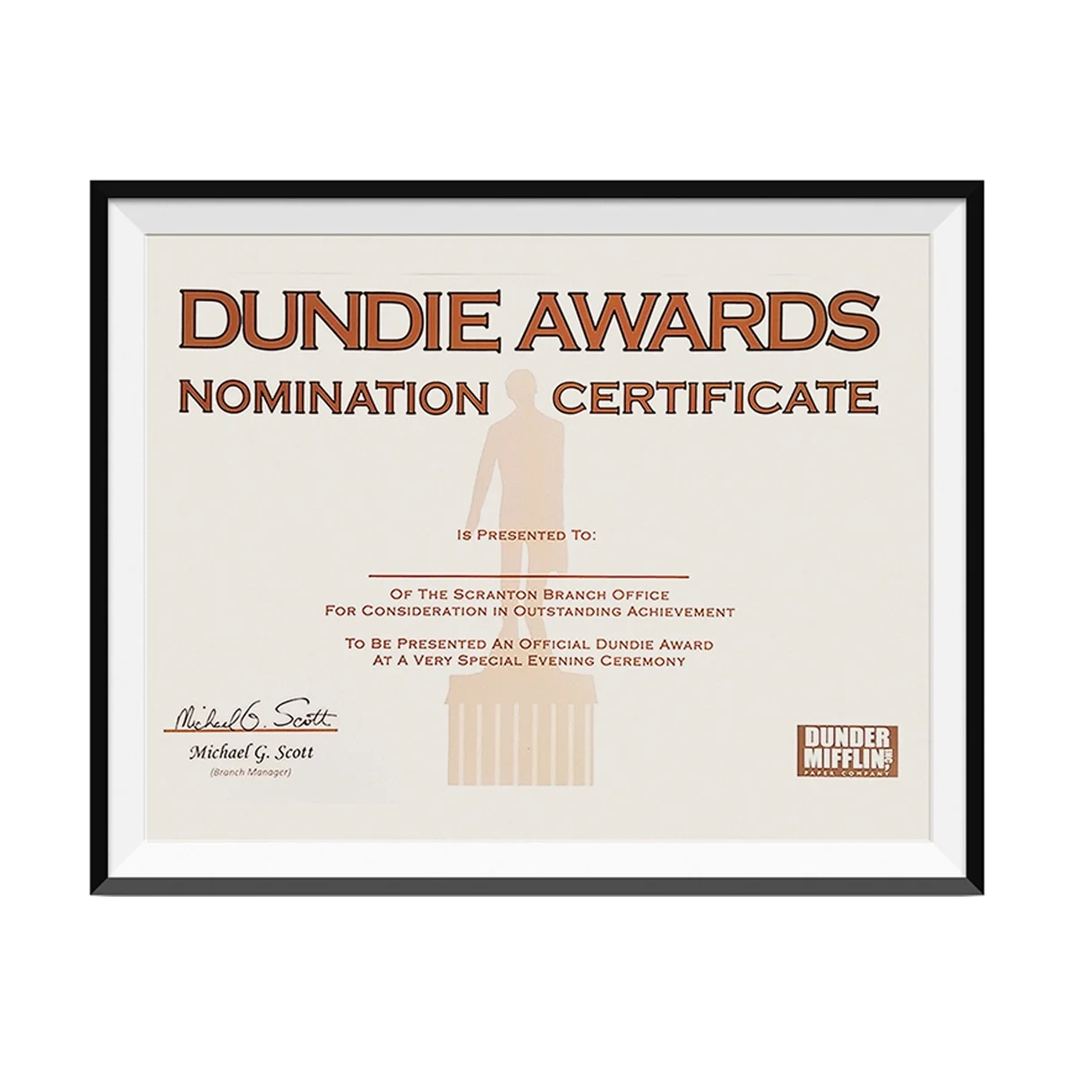 Dundie Awards Nomination Certificate Michael Scott The Office TV Show Poster