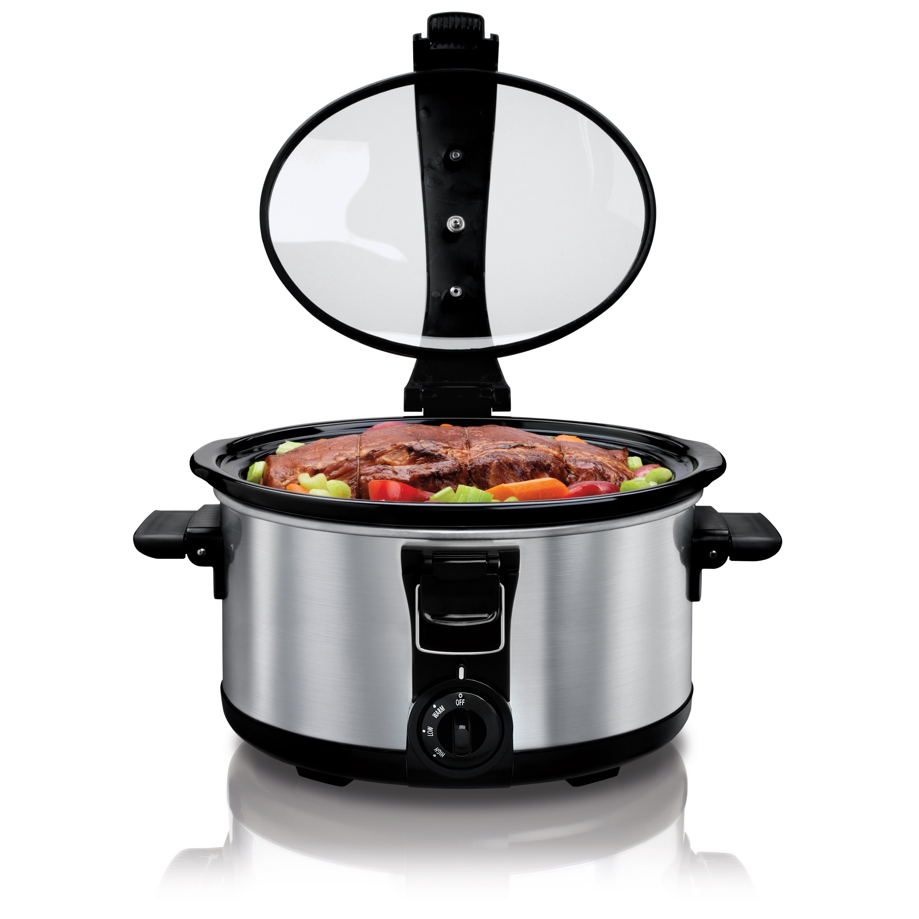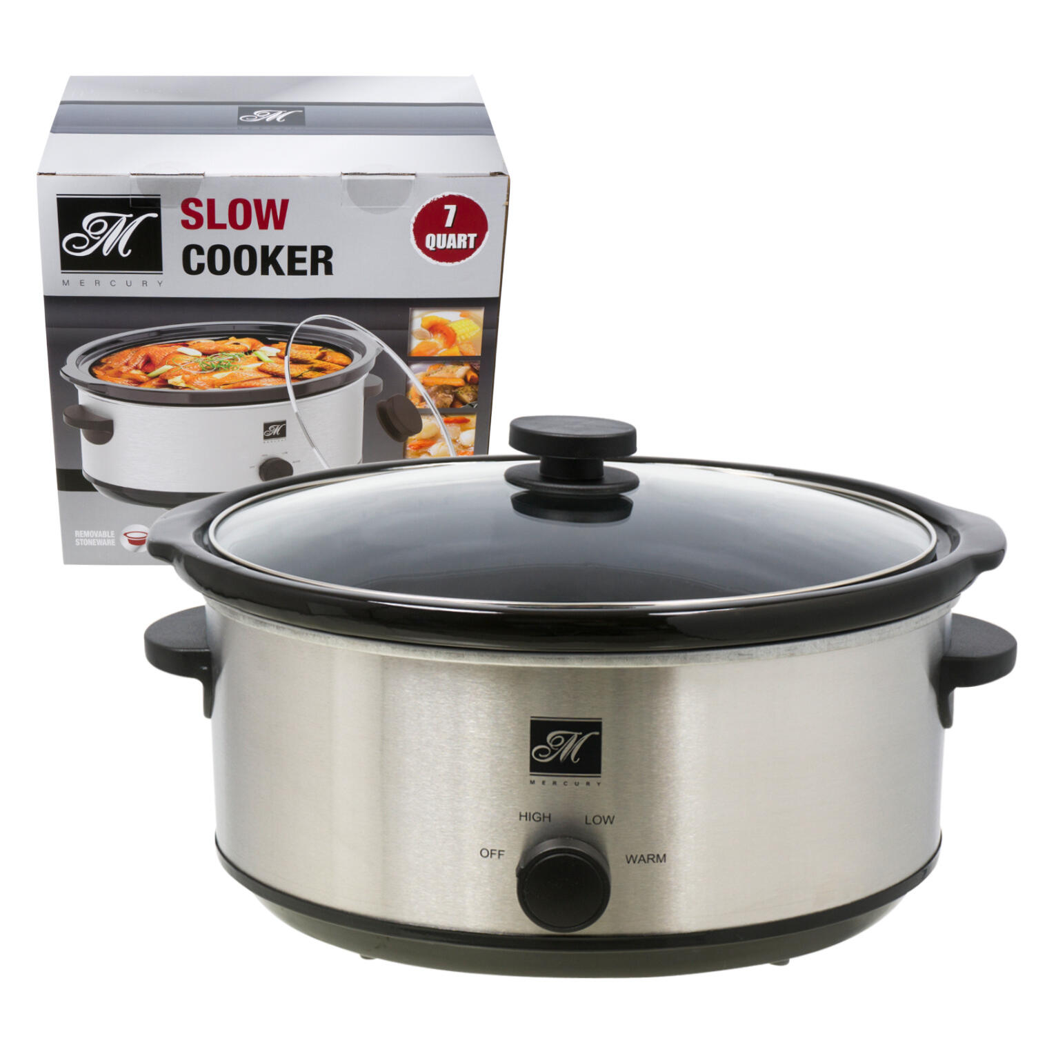 Oval Slow Cooker- Adjustable Temp, Entrees, Sauces, Stews & Dips, Dishwasher Safe Glass, Silver