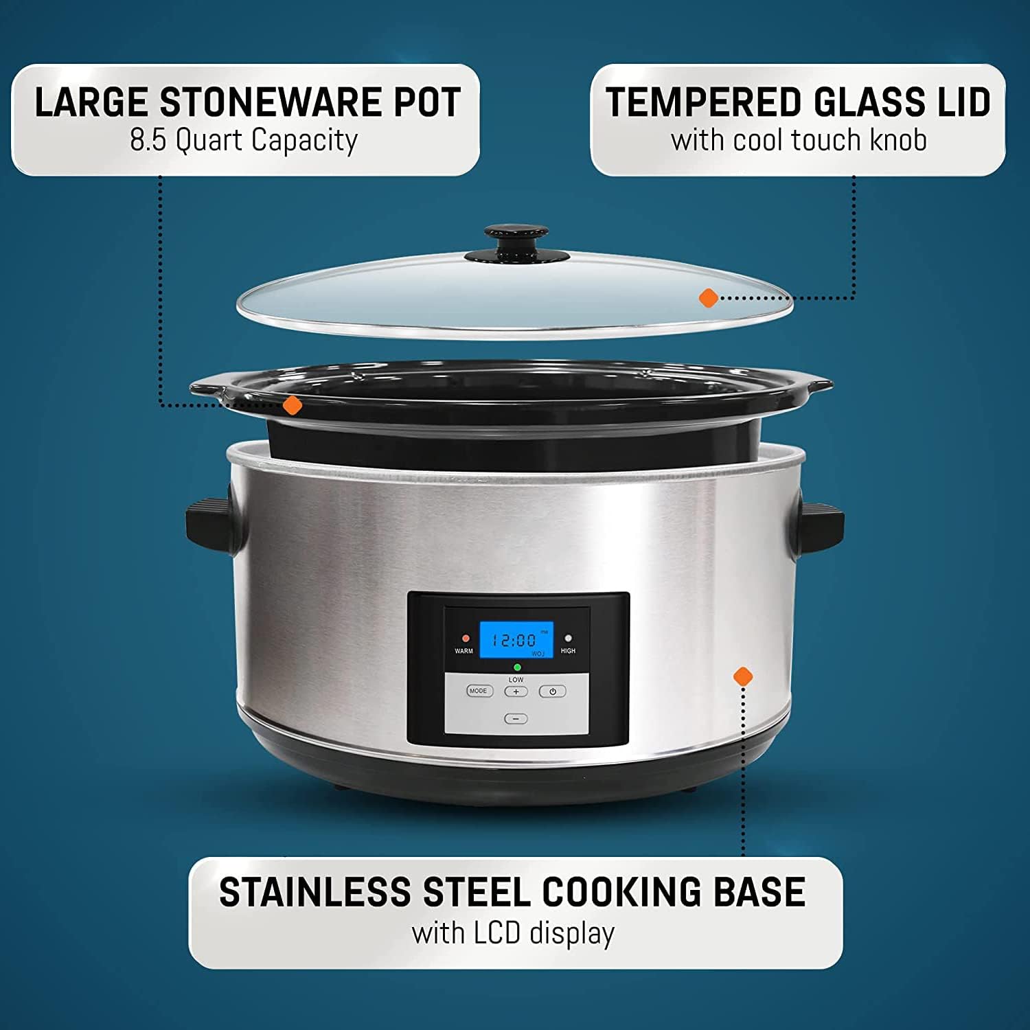 Digital Programmable Electric Slow Cooker - Oval Adjustable Temp, Sauces, Stews & Dips, (8.5 Quart)