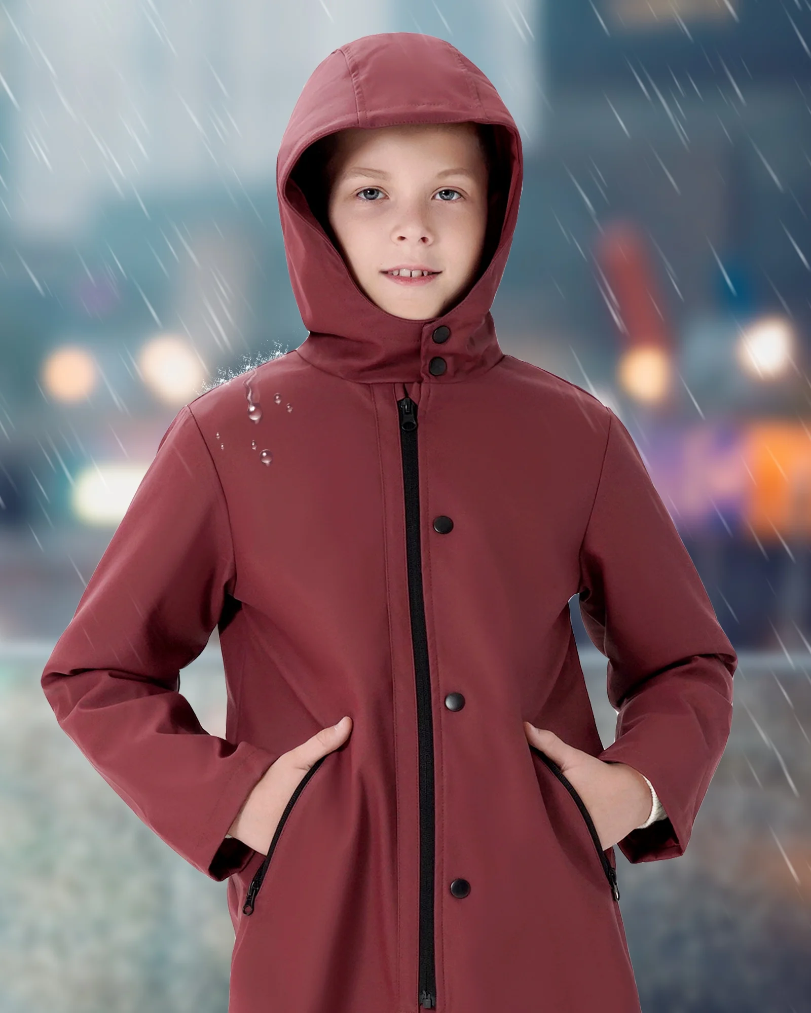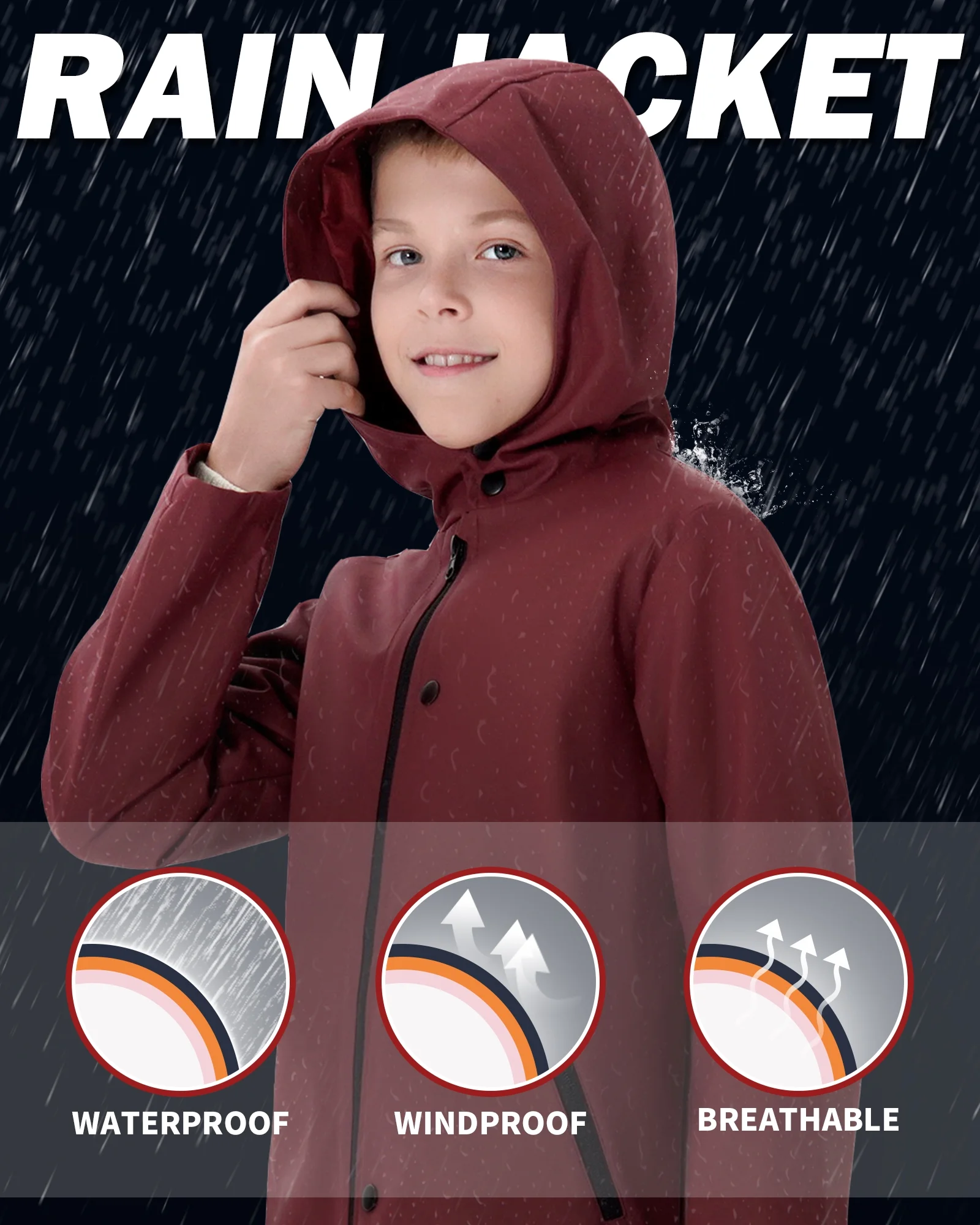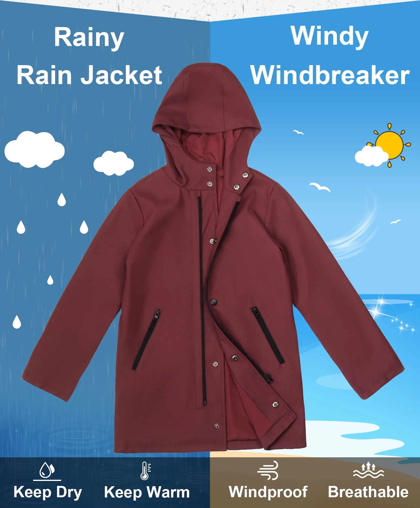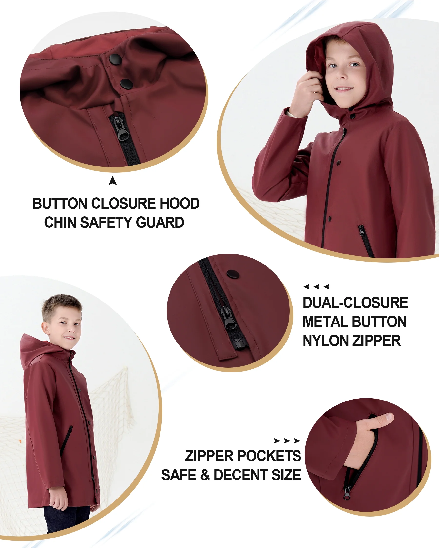 SOLOCOTE Boys Rain Jacket Lightweight Waterproof Raincoat Hooded Cotton Lined Long Windbreaker