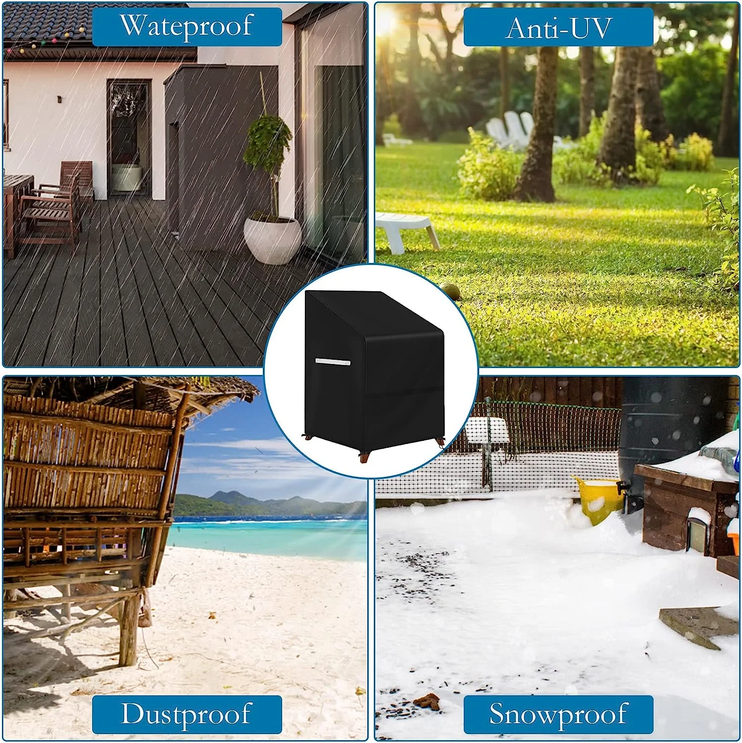 STARTWO Outdoor Stacking Chair Covers Waterproof Patio Furniture Cover Stacked Chairs & Lounge Chair Cover Fits for 4-6 Stackable Chairs