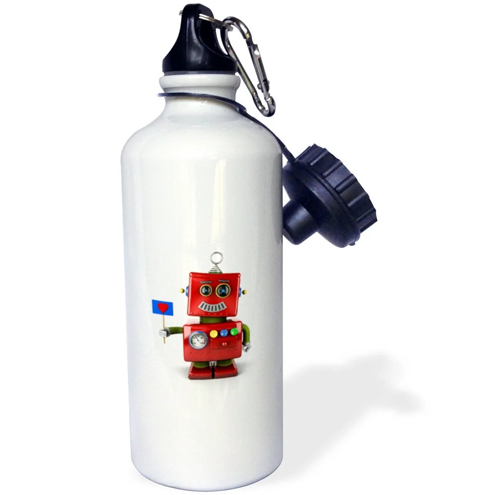 Geeky Old School Pixelated Pixels 8-Bit I Heart I Love Robots 21 oz Sports Water Bottle wb-118933-1