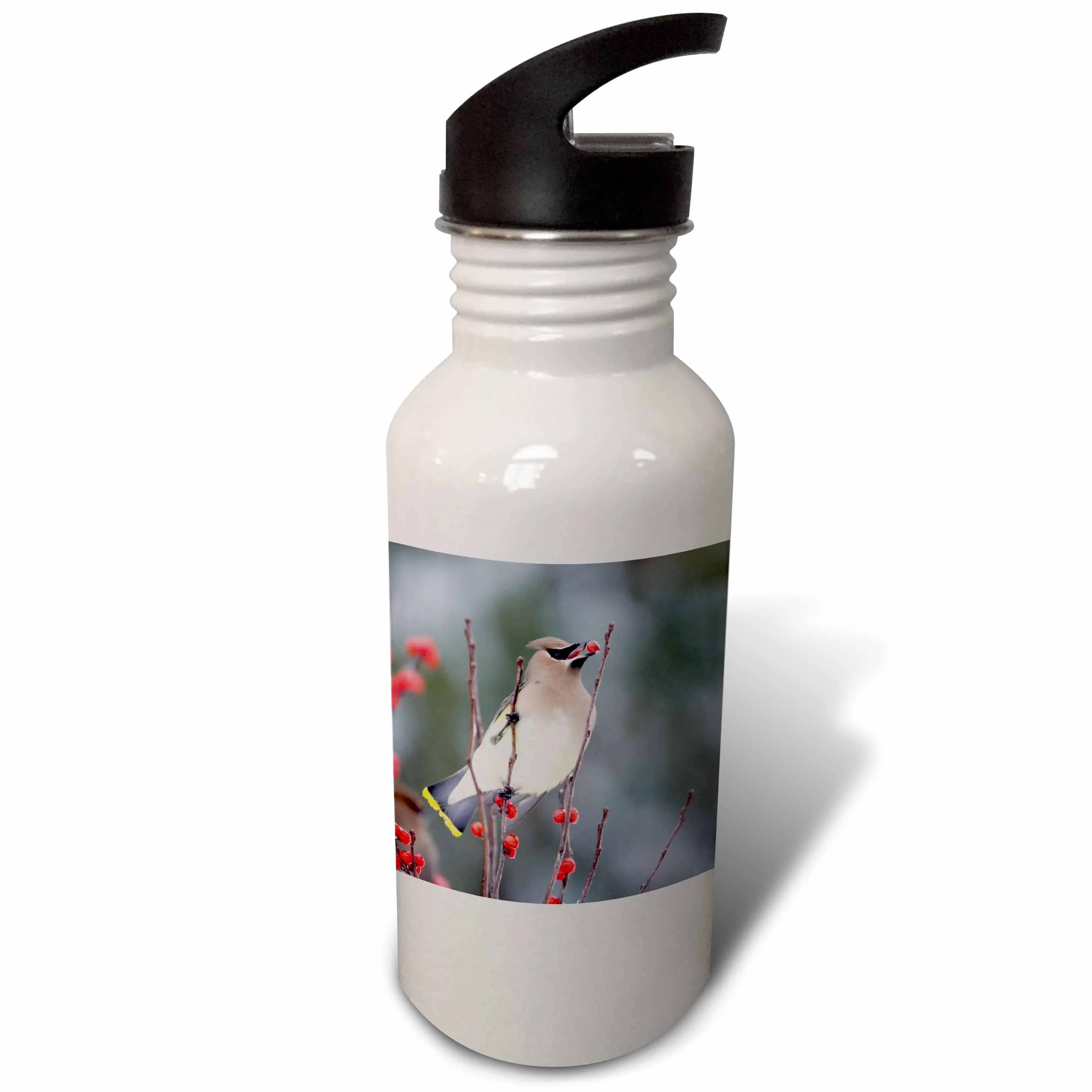 Cedar Waxwing eating Common Winterberry, Marion Co. IL 21 oz Sports Water Bottle wb-208683-1