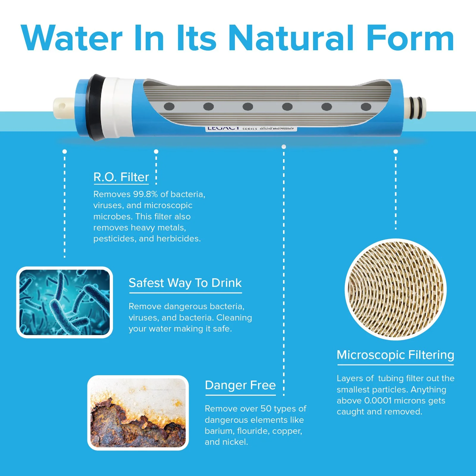 5 Stage Core Reverse Osmosis Water Filter System with White Housing | 75 GPD RO Filtration