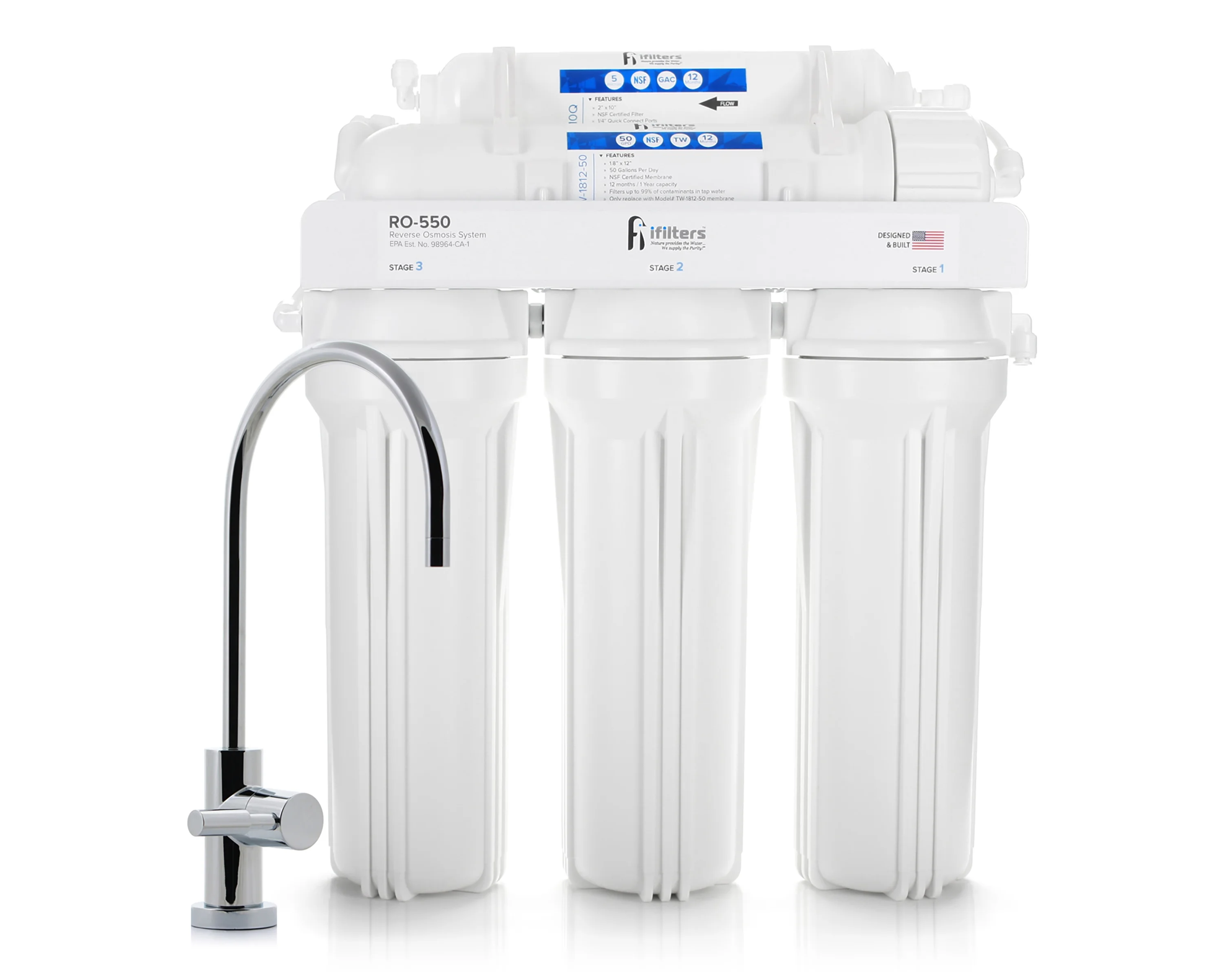 Premium Reverse Osmosis Drinking Water Filter System Ultra Safe 5 Stage 50 GPD & Faucet - Built in USA
