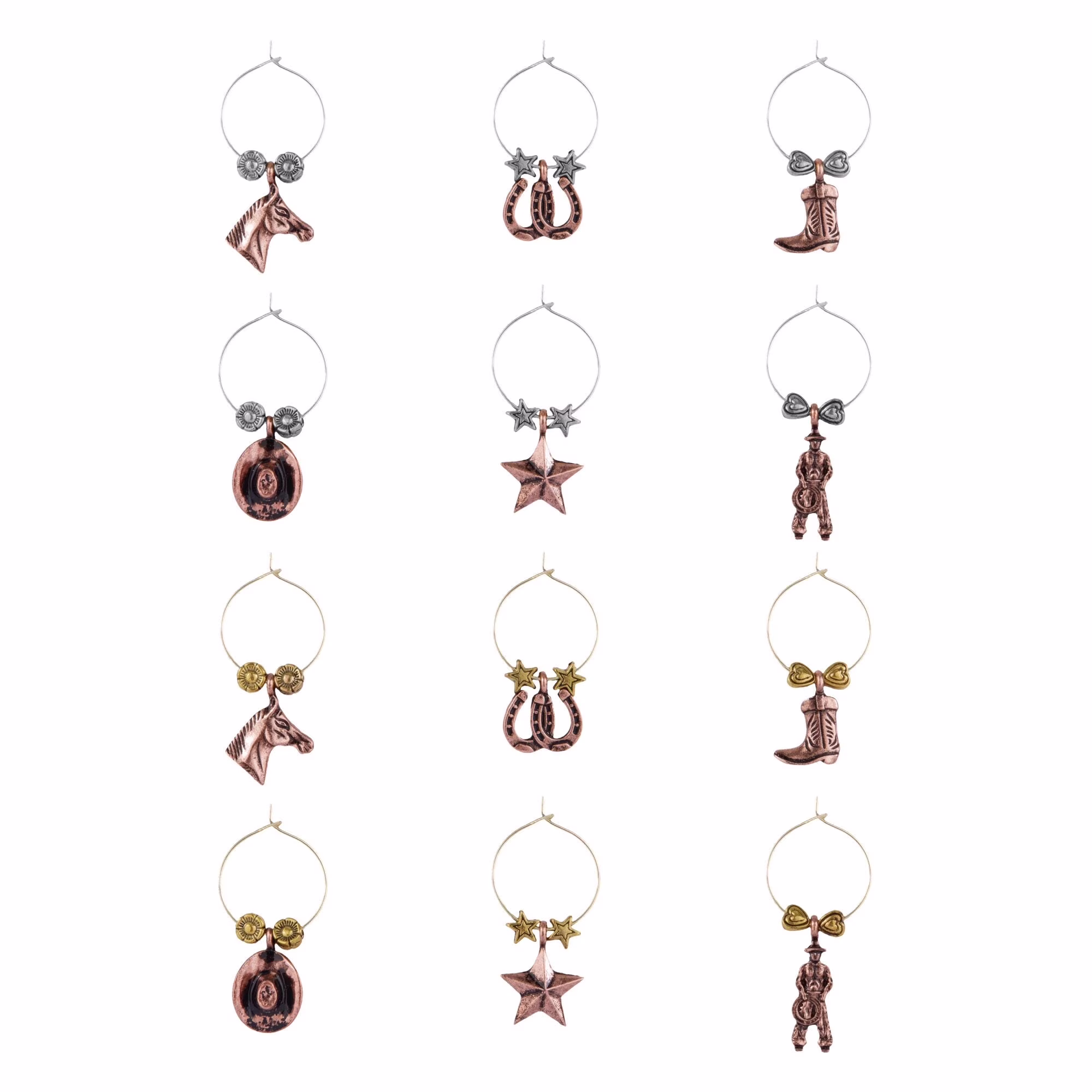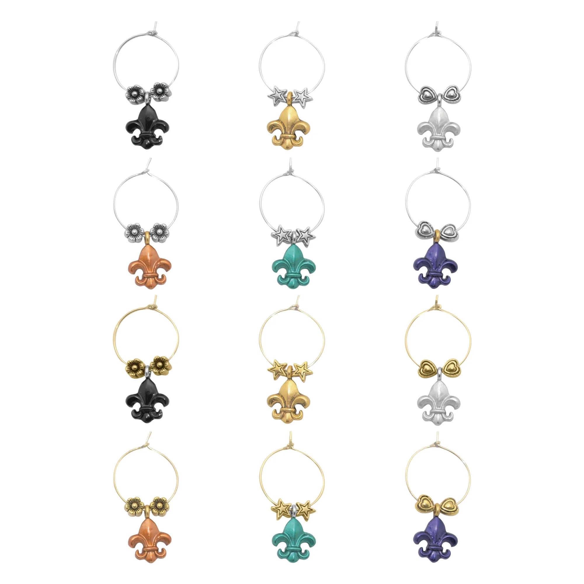 Wine Things 12-Piece Fleur-de-lis Wine Charms/Wine Glass Tags/Drink Markers for Stem Glasses