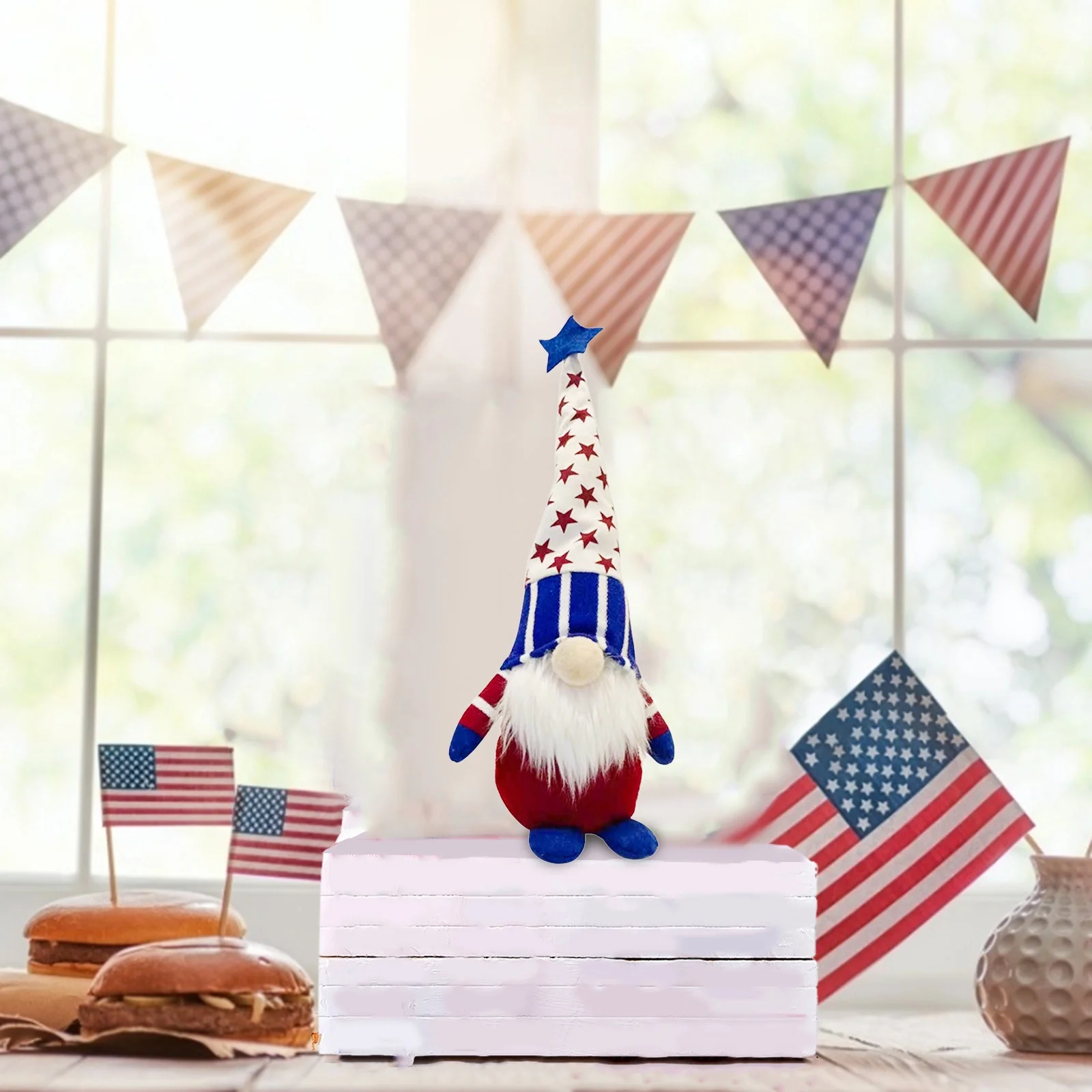 Fridja Patriotic 5th of July Gnome, American Independence Day Gnomes, Birth Announcement Memorial Day Elf Dwarf, Scandinavian Ornaments Handmade Plush Doll Stars & Stripes Gnome Home Decorations