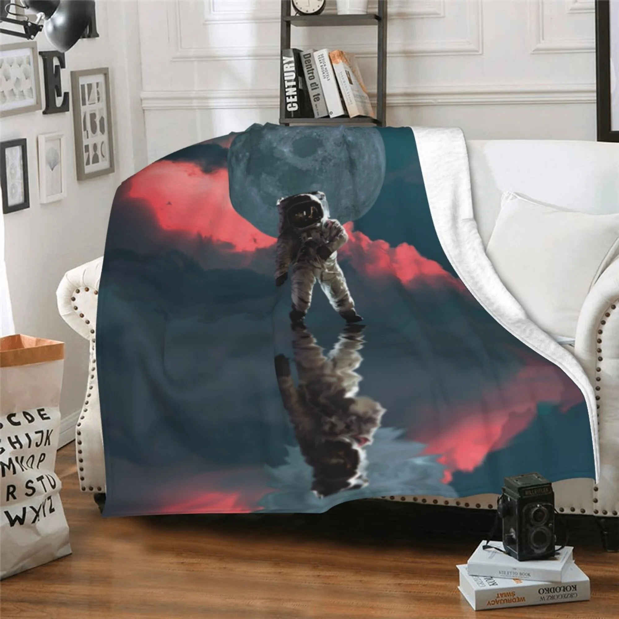 Peanuts Snoopy Flying Ace Astronaut in Space Throw Blanket 50 x 70 Grey