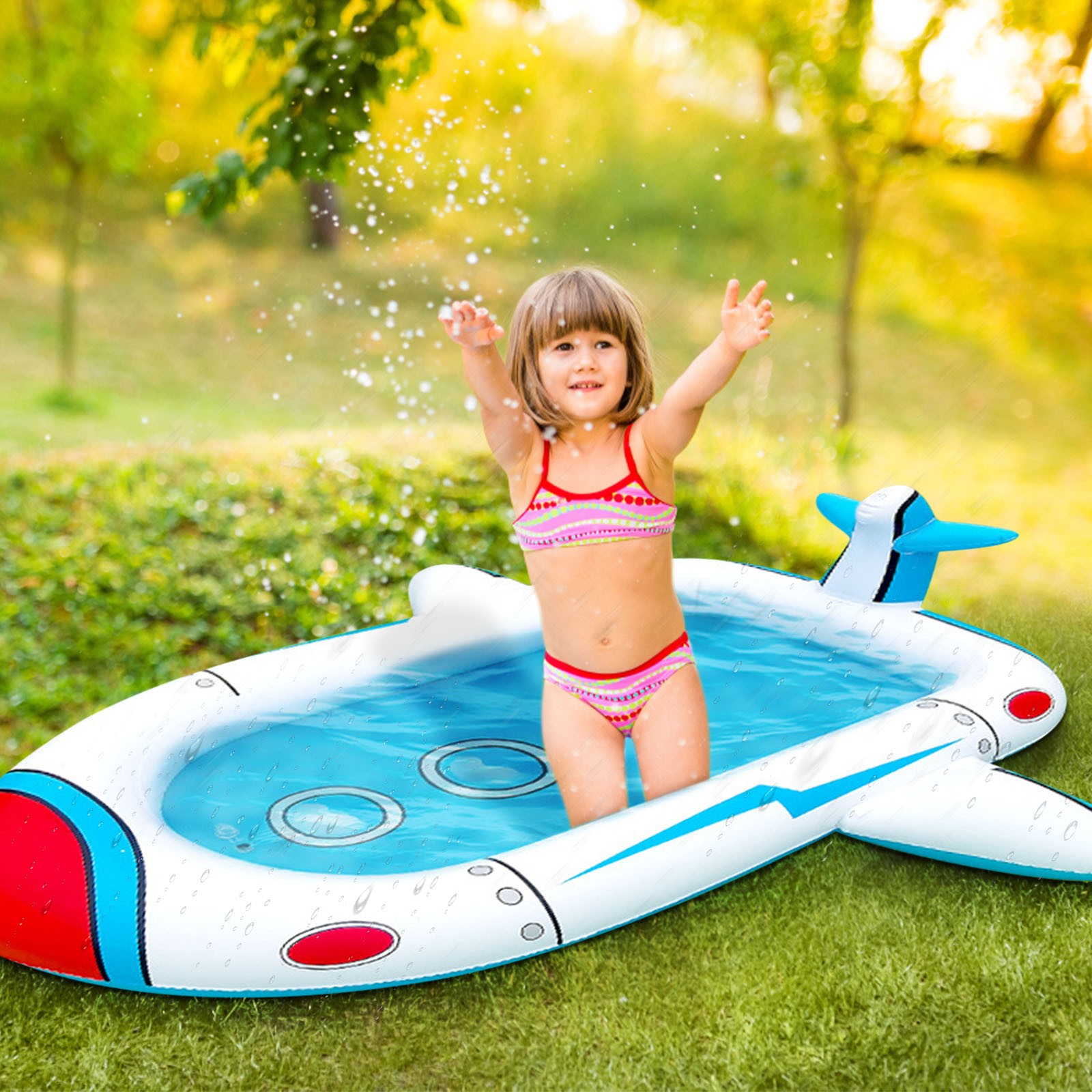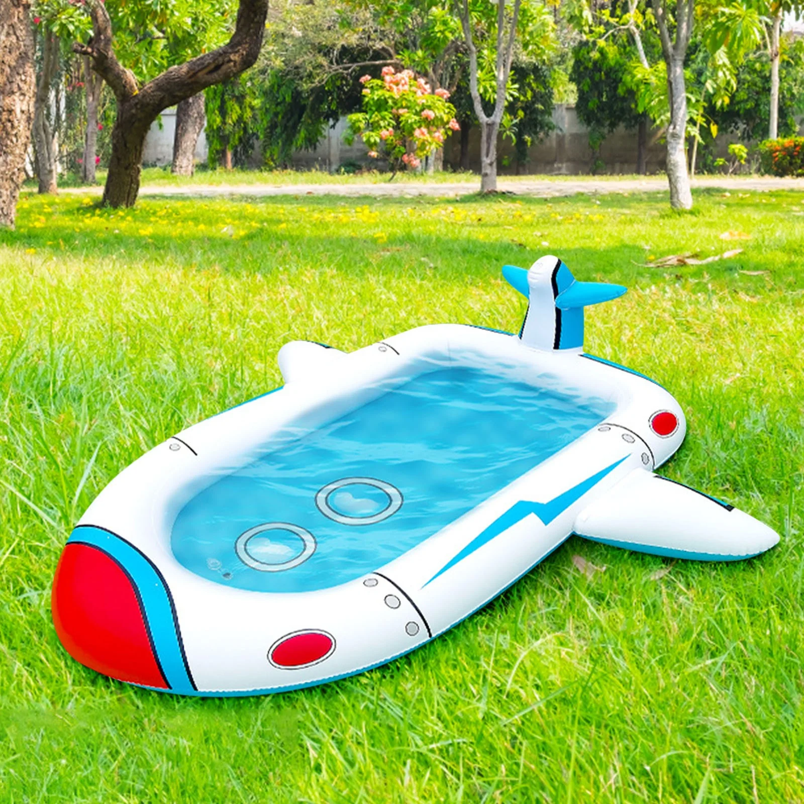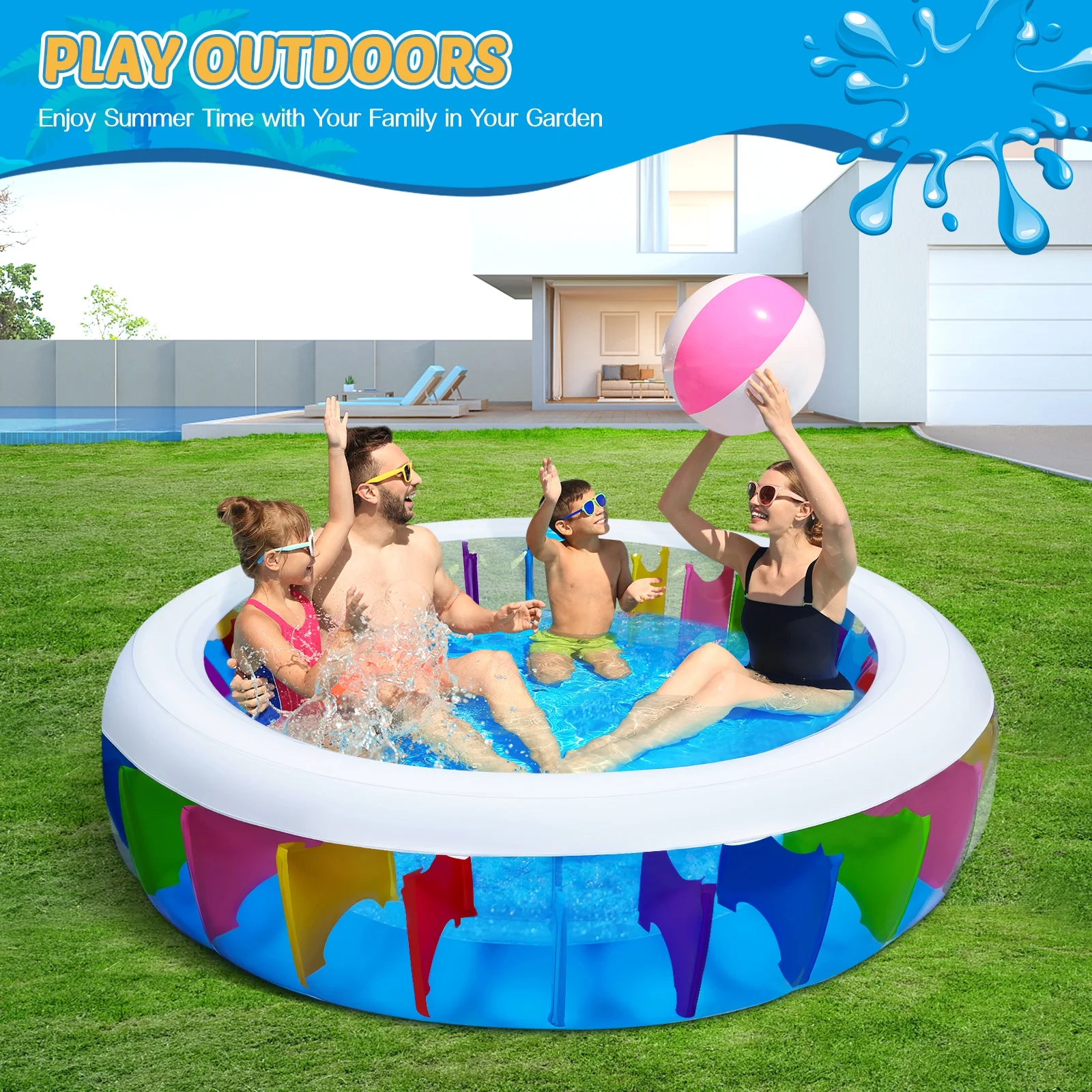 Hemoton UNOMOR PVC Transparent Inflatable Pool with Sprinkler Circular Playing Water Pool Baby Bathing Pool Summer Kids Toy 180 x 180 x 40 cm