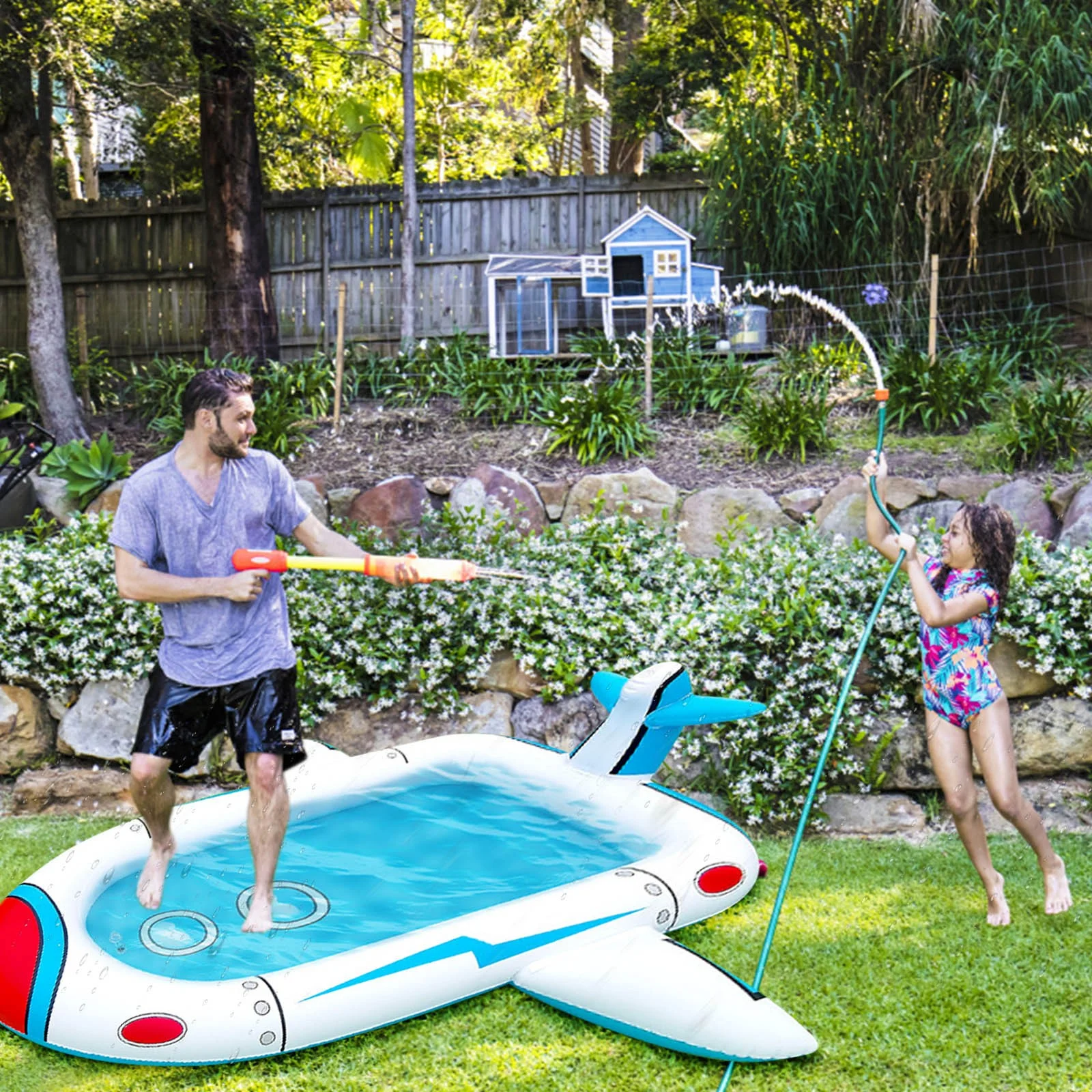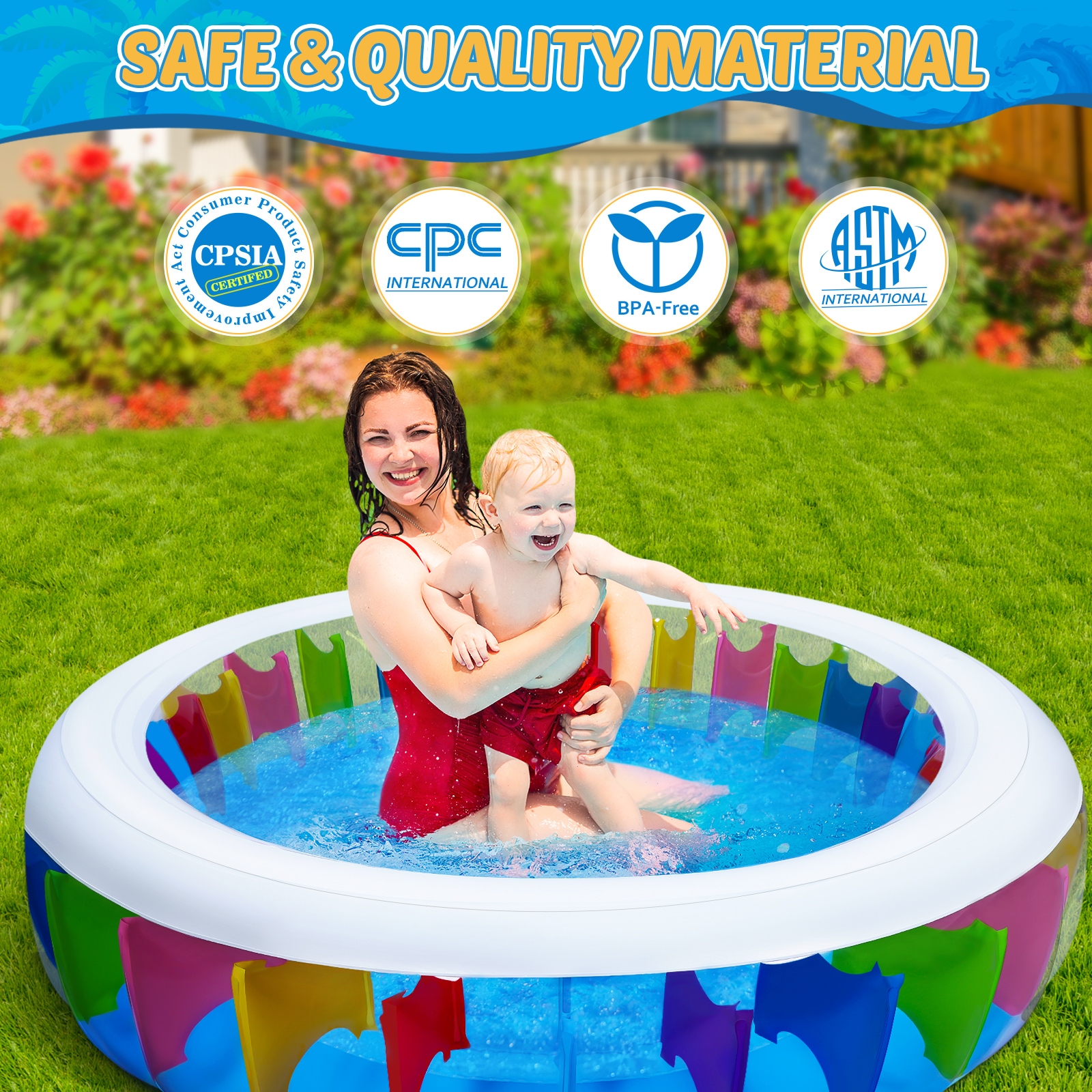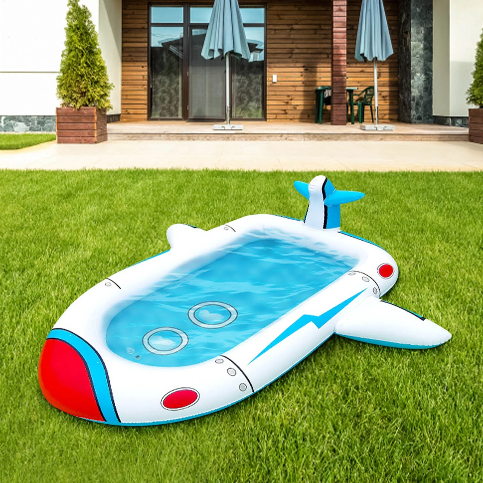 Hemoton UNOMOR PVC Transparent Inflatable Pool with Sprinkler Circular Playing Water Pool Baby Bathing Pool Summer Kids Toy 180 x 180 x 40 cm