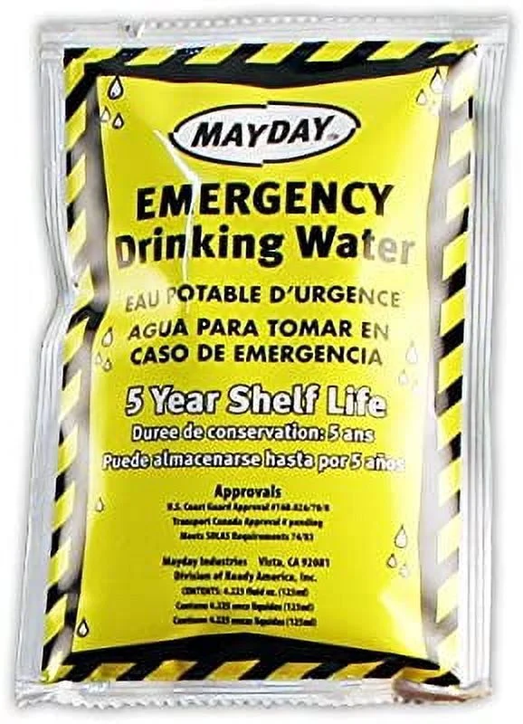 Ready America Mayday Industries Emergency Drinking Water Pouches, 4.23 Oz, Case Of 100 Pouches