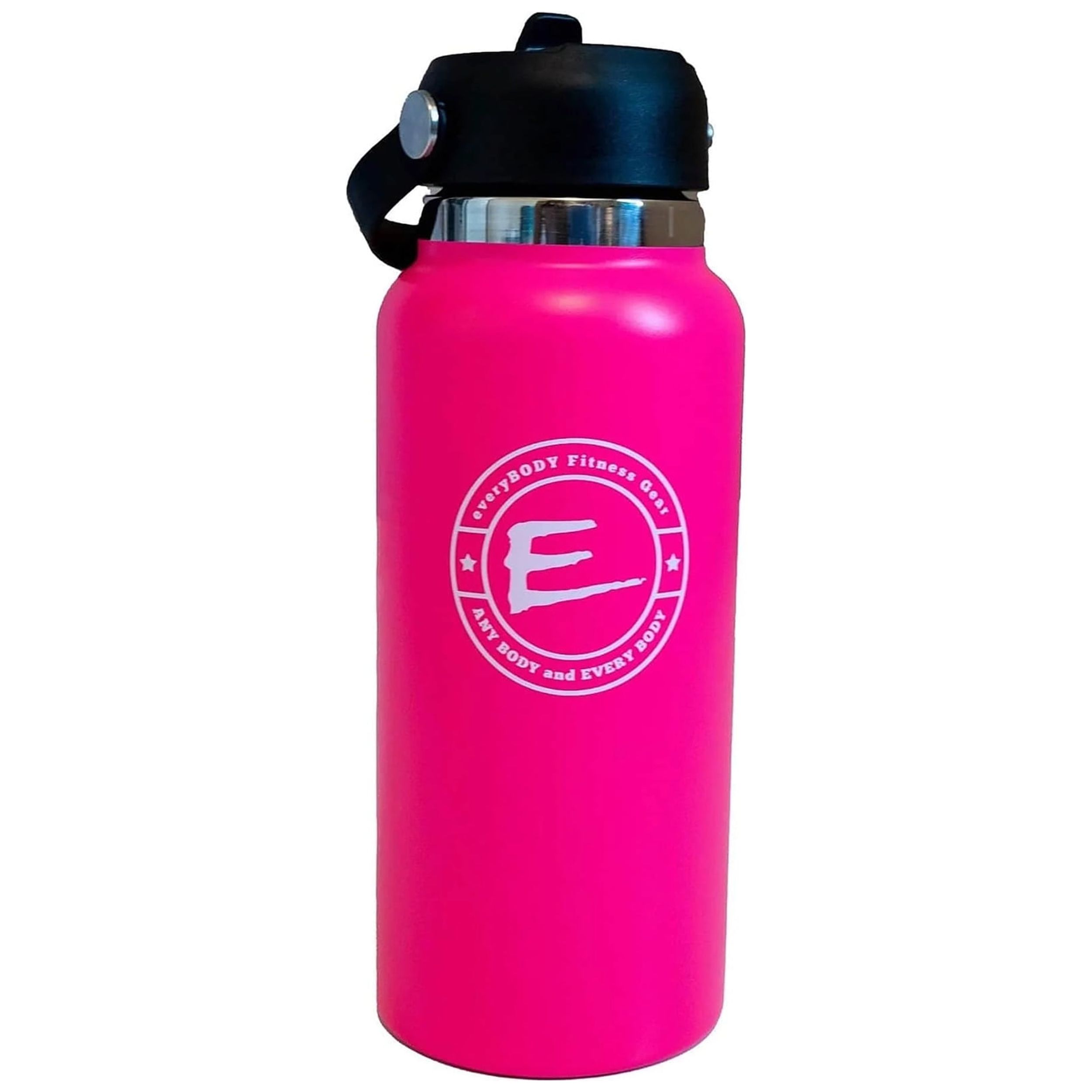 Everybody Fitness Gear 32 Ounce Wide Mouth Adjustable Spout Stainless Steel Hot Pink Water Bottle