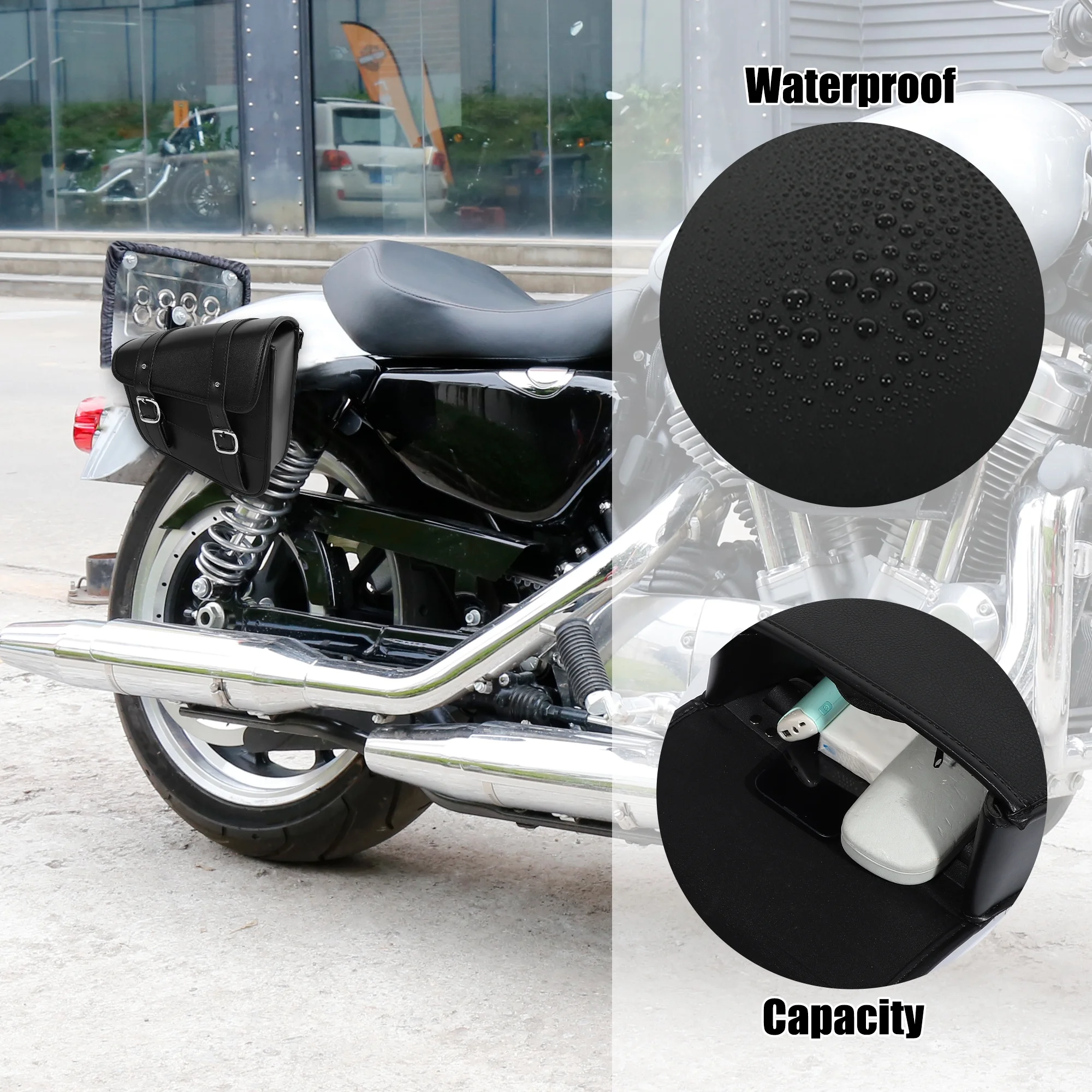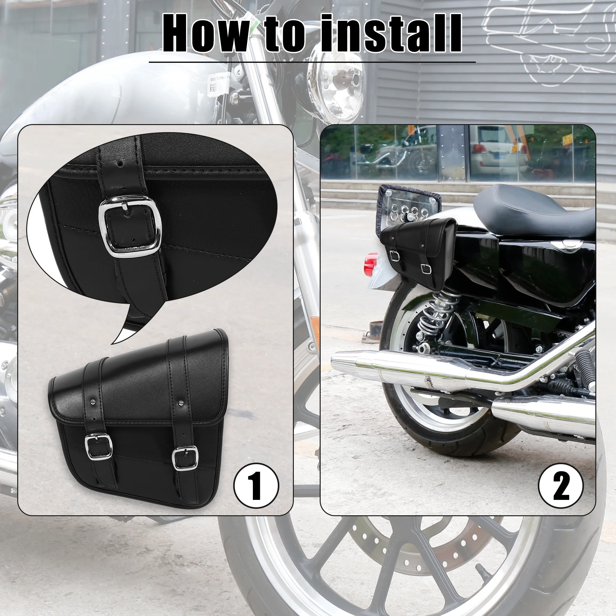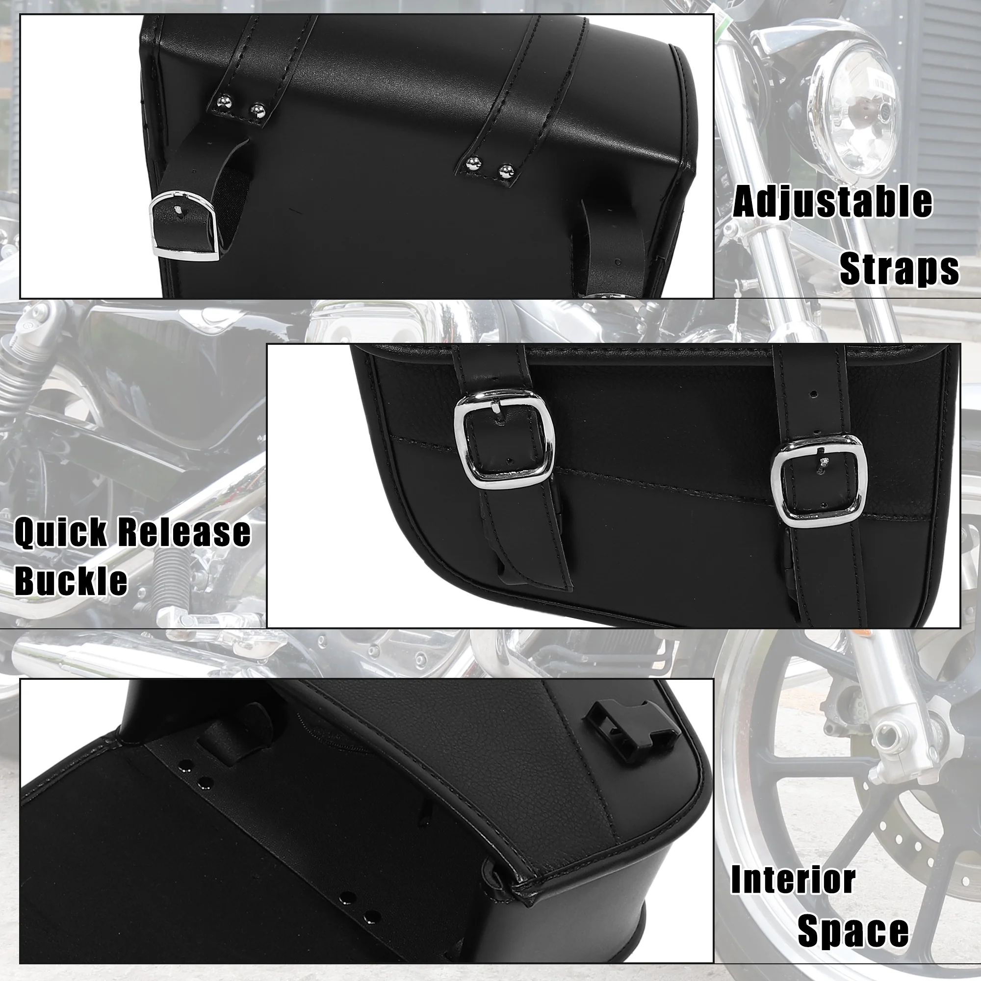 Unique Bargains Motorbike Saddlebag Side Tool Bag Buckles Black 9.65"x3.54"x9.06"