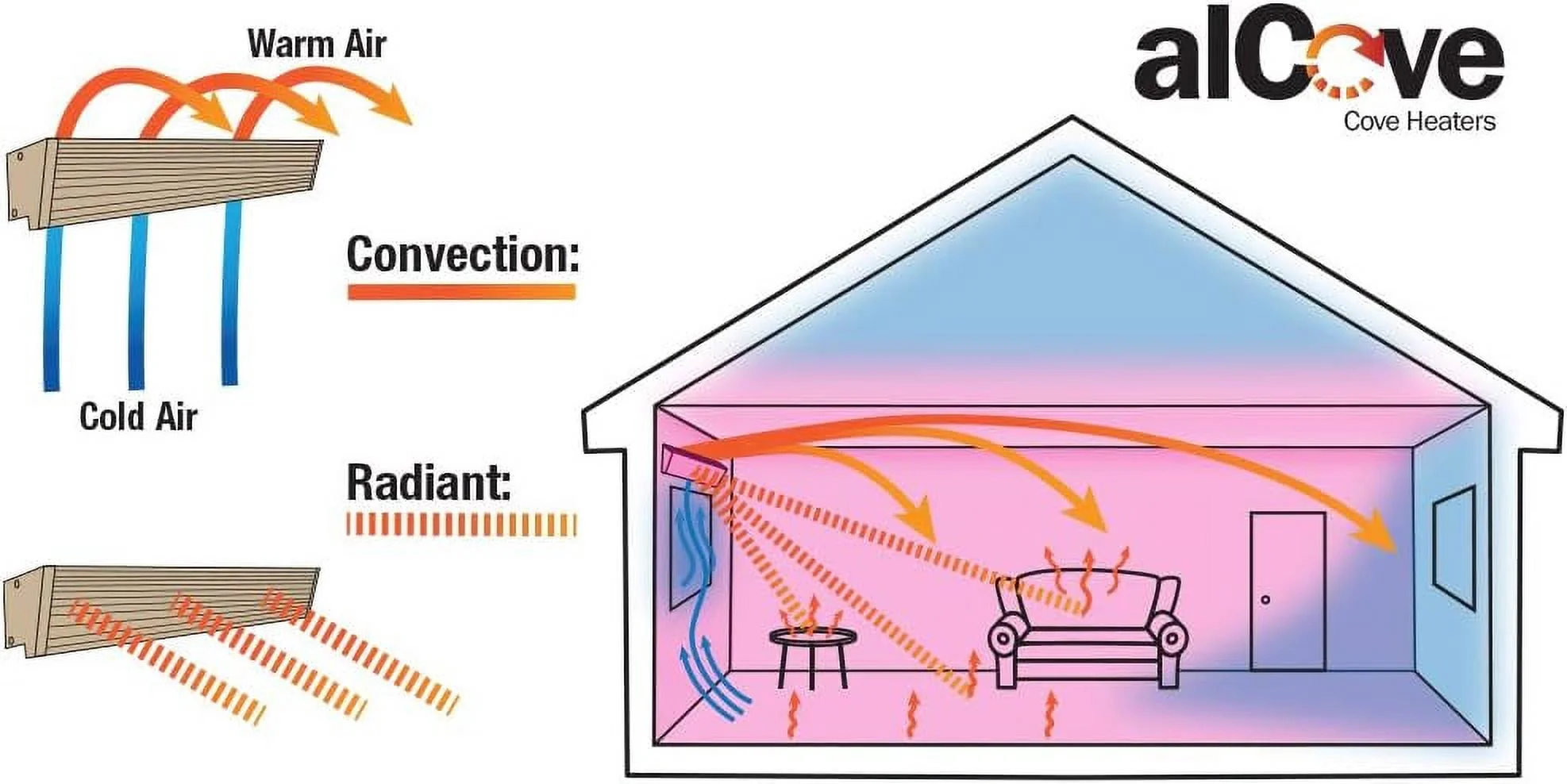 Alcove Series Radiant Convection Cove Heater, 71" / 840W / 240V, Almond