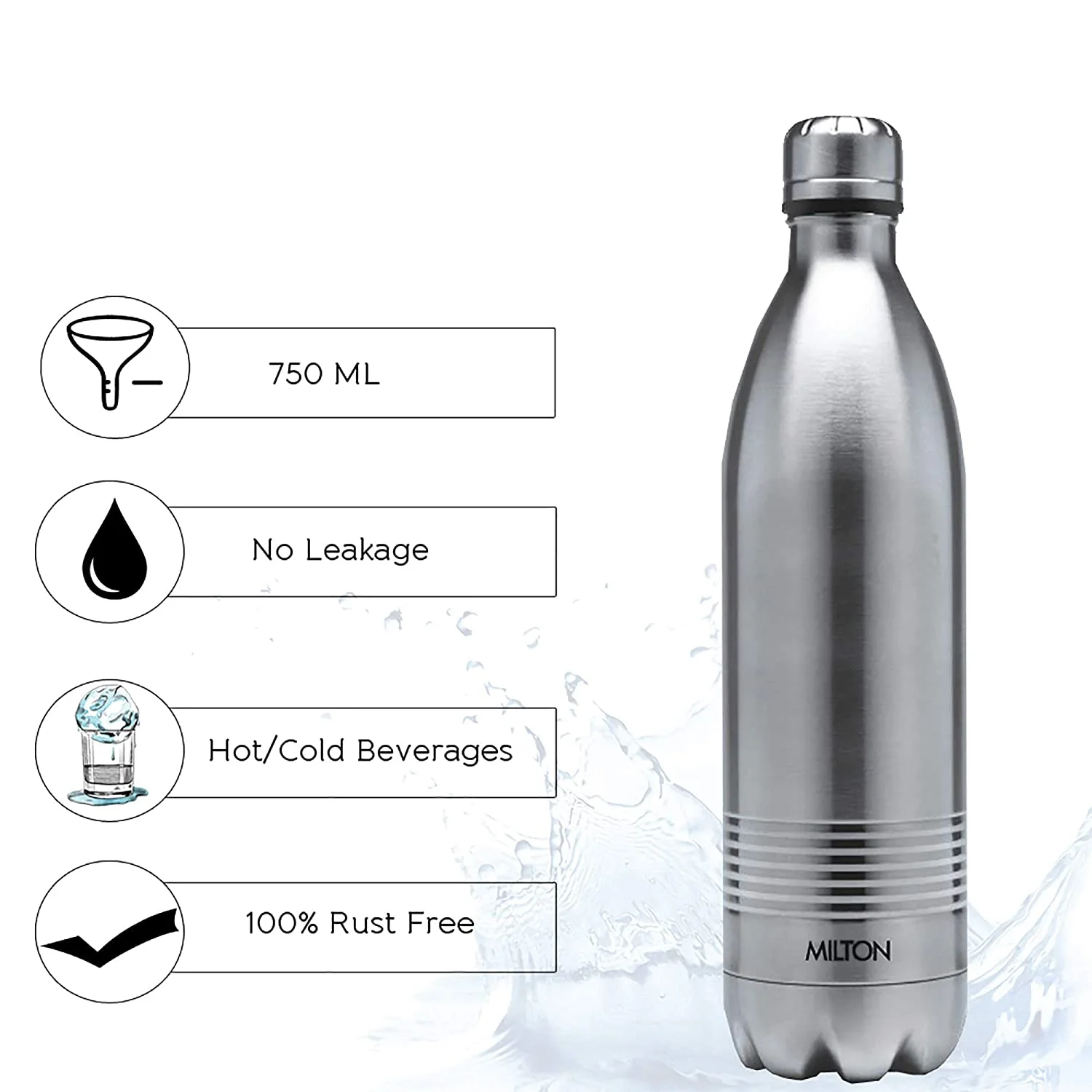 Milton Insulated Steel Bottles Thermosteel Duo 750 Dlx/ 700 ml, Steel Plain
