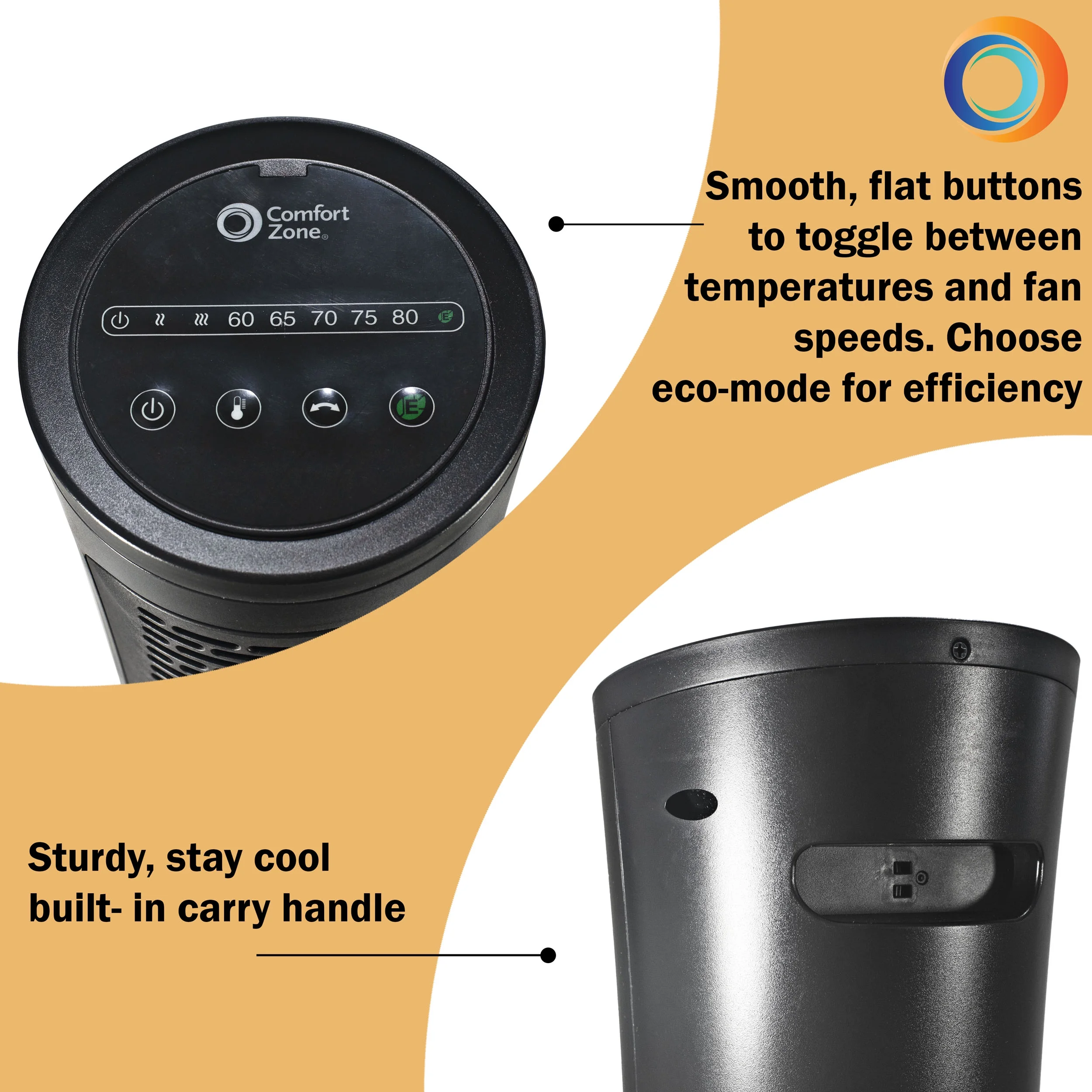 Comfort Zone Energy-Save 120 VAC Electronic Ceramic Oscillating Heater, Black