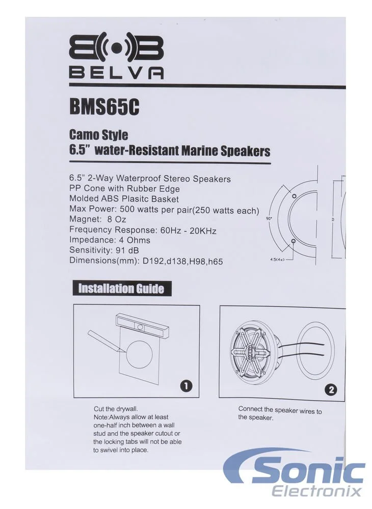 Belva BMS65C Camouflage 500W 6.5" Water-Resistant Speakers for Marine/ATV/UTV/Powersports