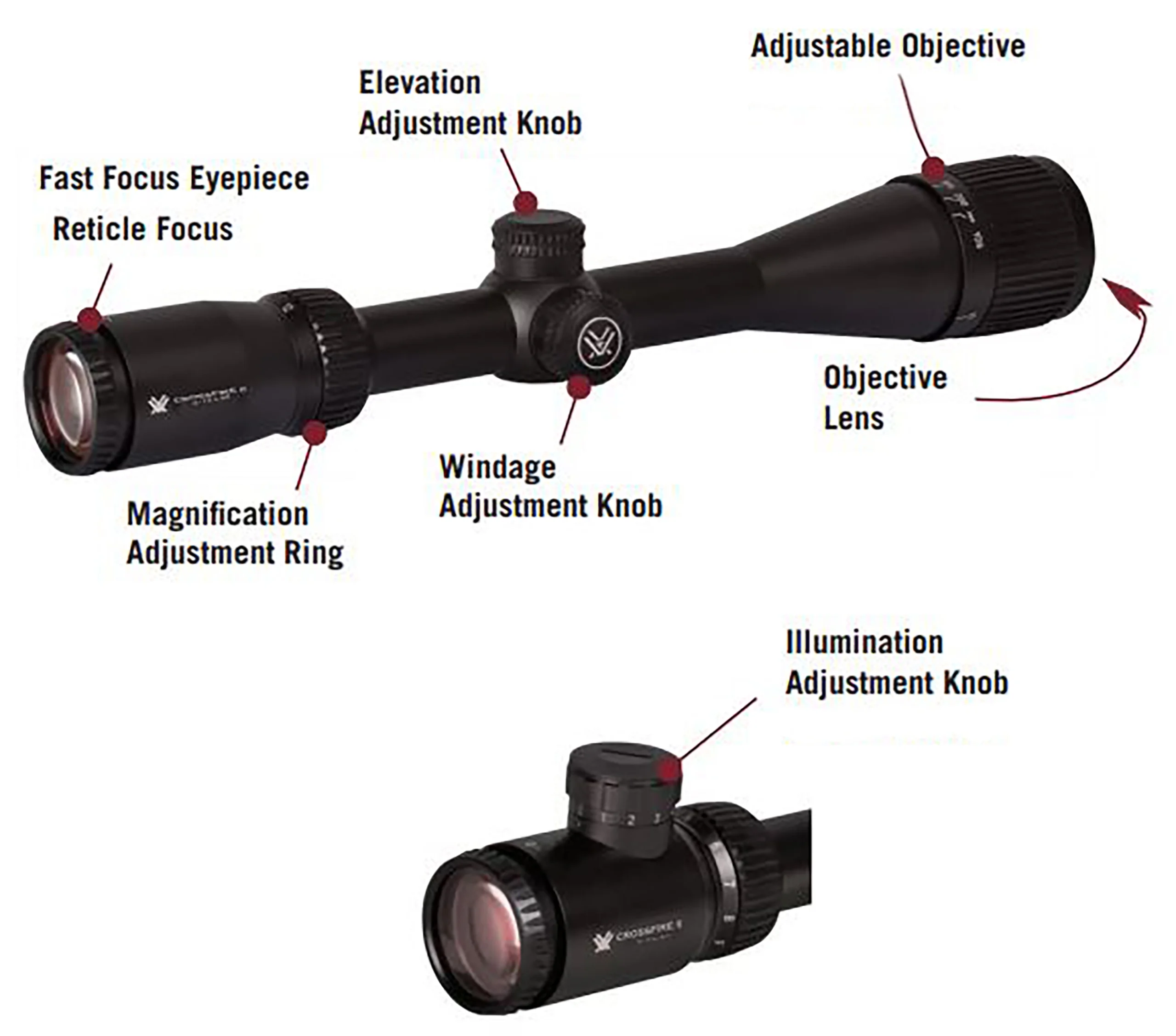 Vortex Crossfire II Hog Hunter 3-12x56mm Rifle Scope, 30mm Tube, Second Focal Pl