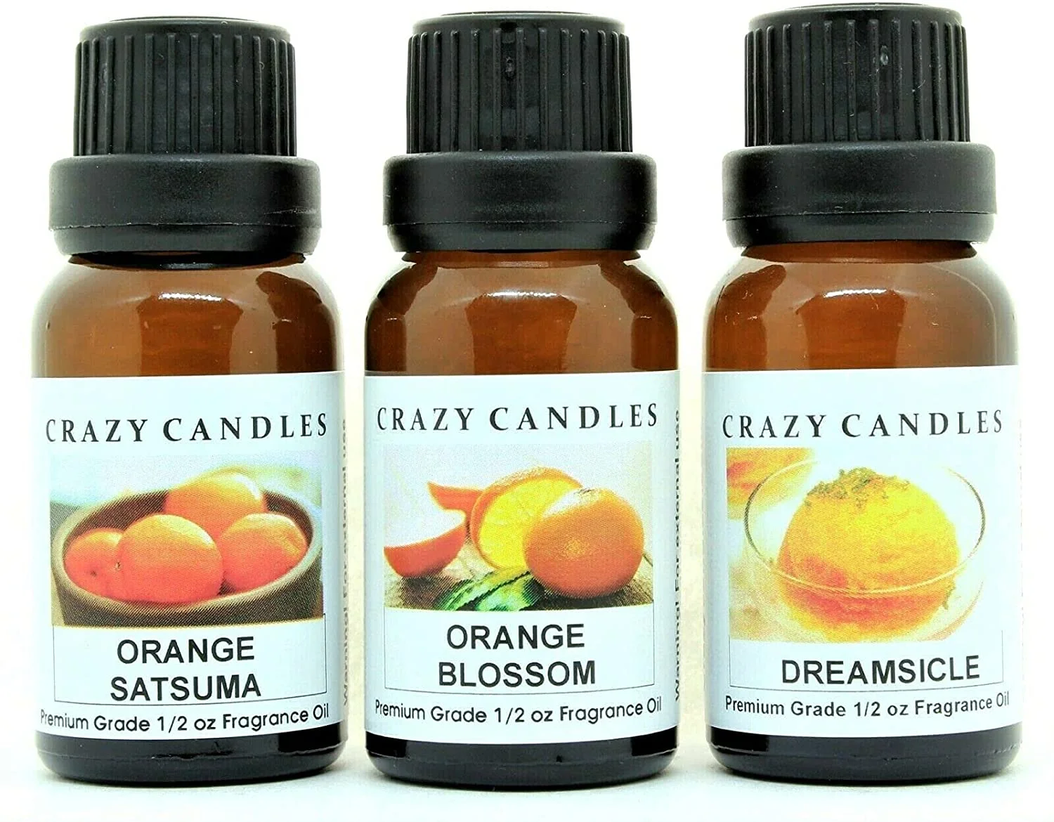 3 Bottles Set, 1 Orange Satsuma, 1 Orange Blossom, 1 Dreamsicle 1/2 fl oz Each (15ml) Premium Grade Scented Fragrance Oils by Crazy Candles