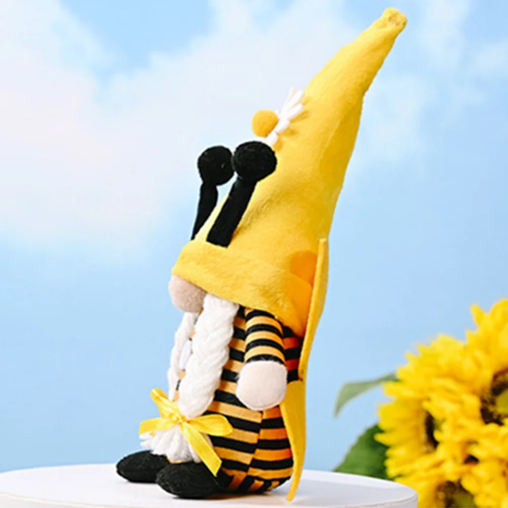 Bumble Bee Gnomes Plush Honey Bee Day Handmade Spring Gnome Yellow & Black Scandinavian Tomte Nisse Swedish Elf Faceless Doll for Kitchen