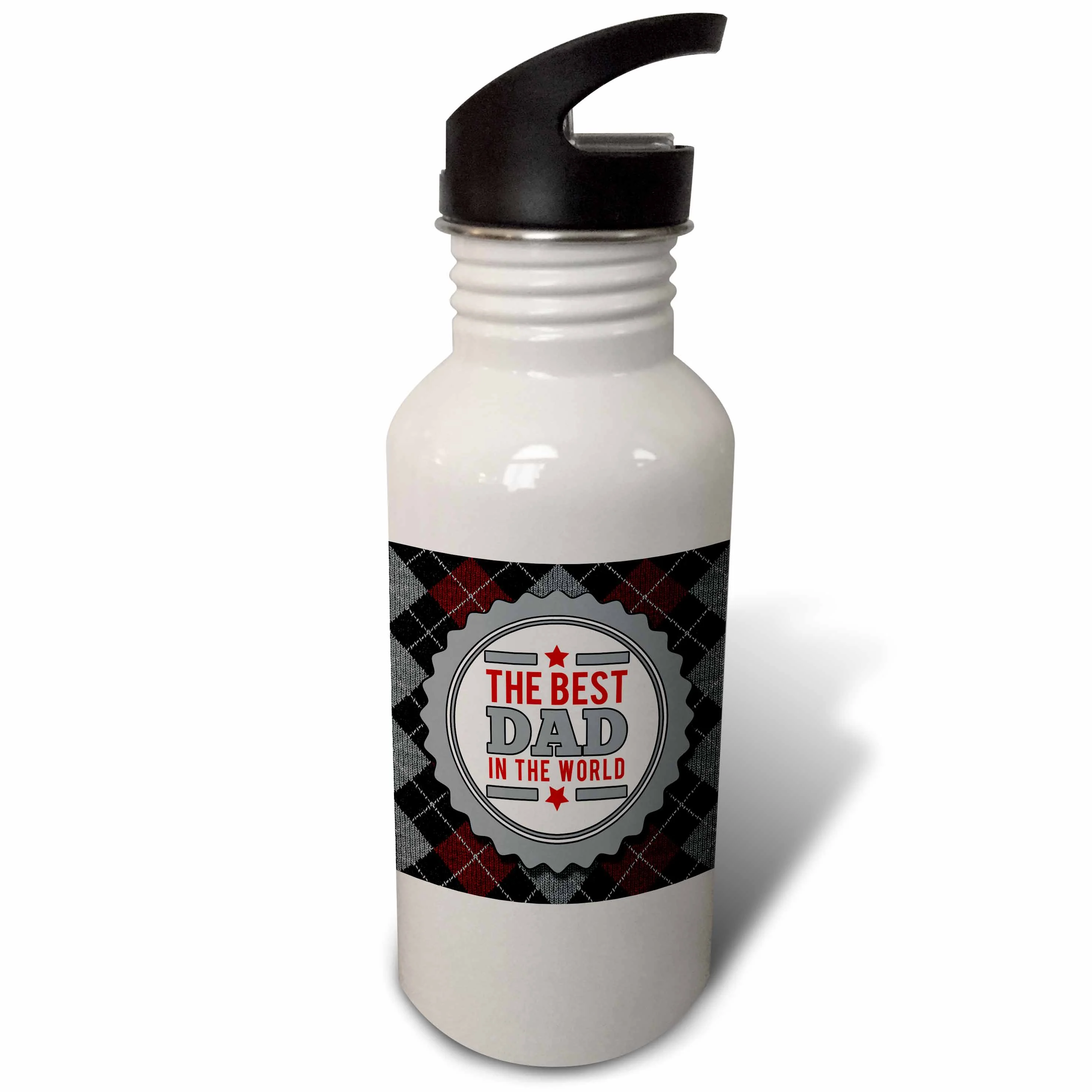The Best Dad in the World in Maroon and Black Argyle Print 21 oz Sports Water Bottle wb-212568-1