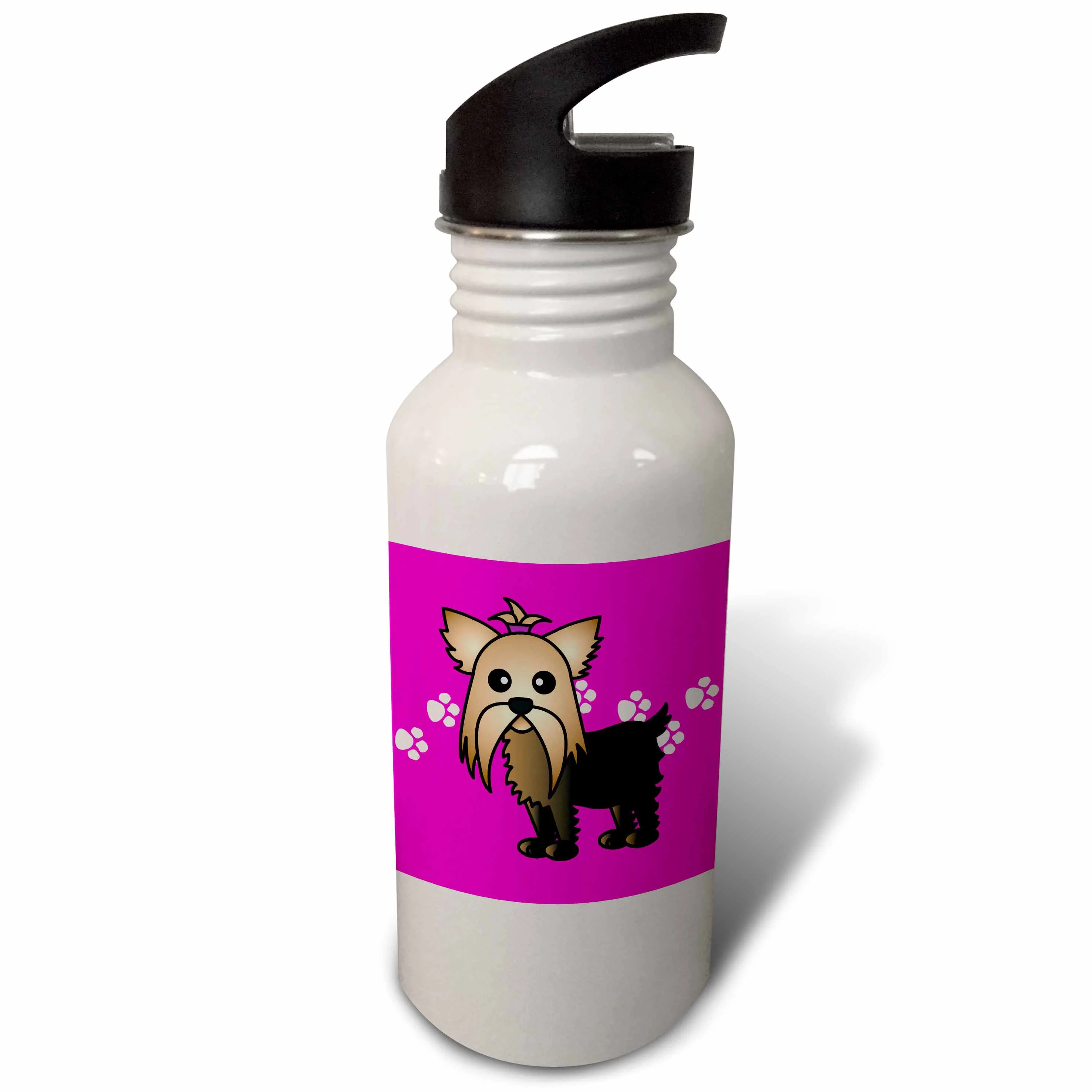 Cute Yorkshire Terrier Yorkie Pink with Paw Prints 21 oz Sports Water Bottle wb-10817-1